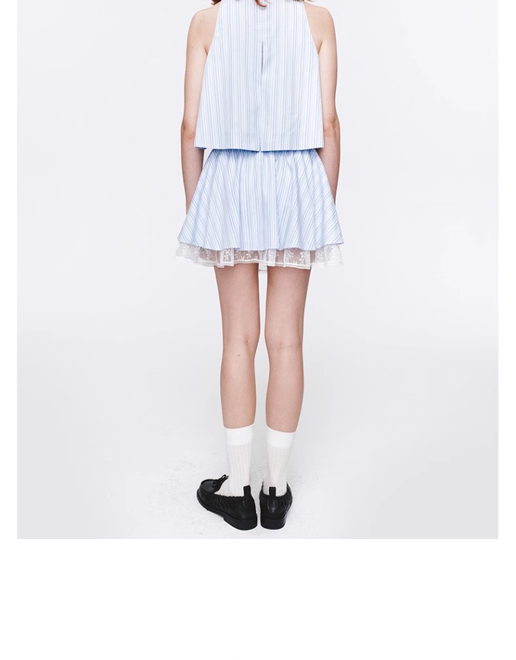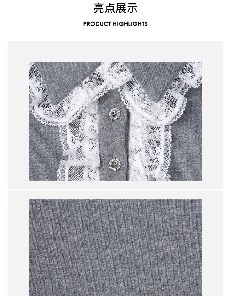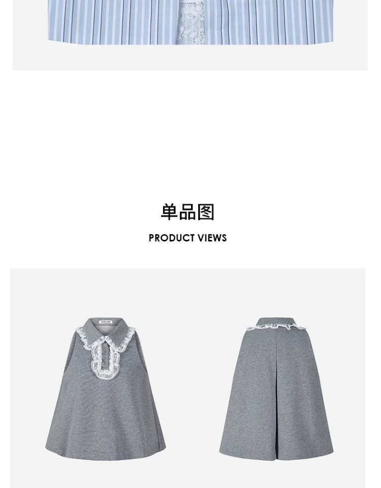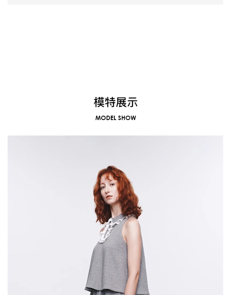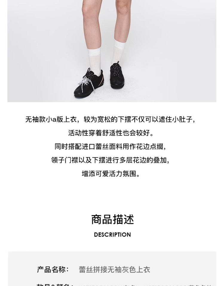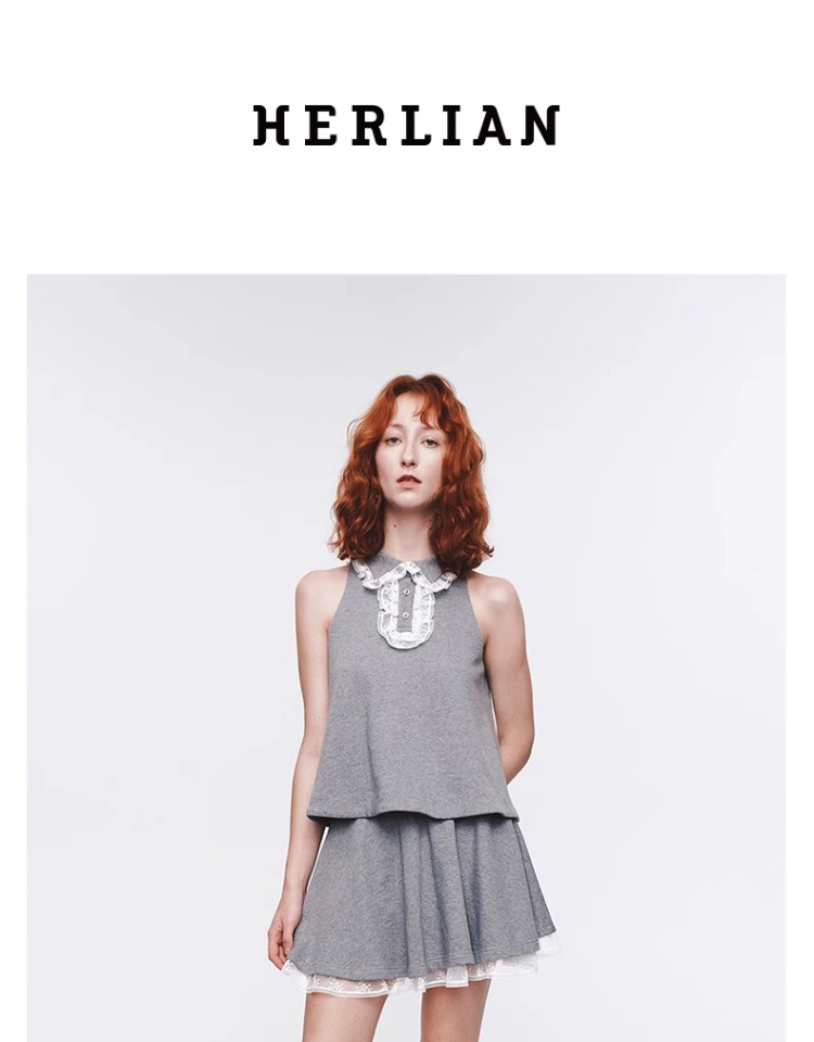 HERLIAN 2025年春季新品蕾丝拼接无袖灰色上衣