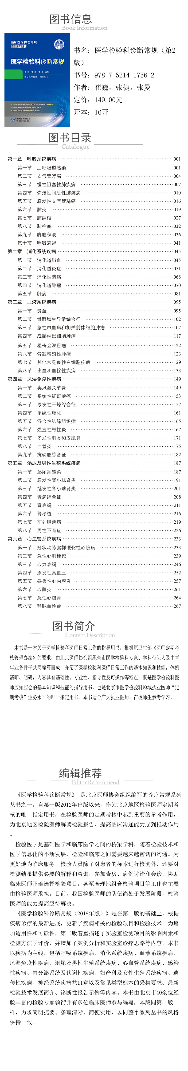 本书是一本关于临床医学检验专科医师日常工作的指导用书,根据原卫生部《医师定期考核管理办法》的要求,由北京医师协会组织全市医学检验科专家、学科带头人及中青年业务骨干共同编写而成,介绍了医学检验专科医师日常工作的基本知识和技能。体例清晰、明确,内容具有基础性、专业性、指导性及可操作等特点,既是医学检验专科医师应知应会的基本知识和技能的指导用书,也是北京市医学检验专科领域执业医师“定期考核”业务水平的专享指定用书。本书适合广大执业医师、在校师生参考学习。