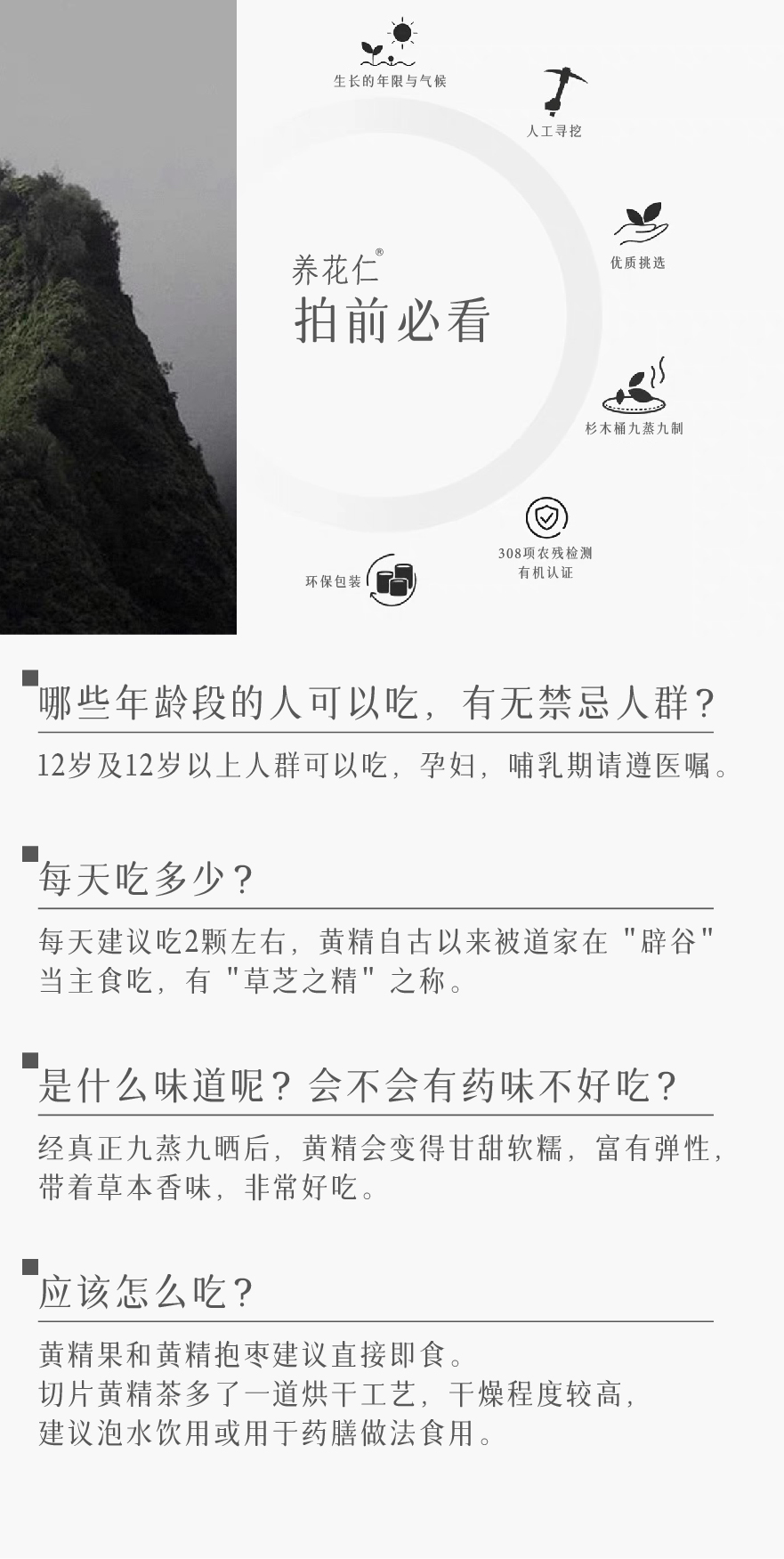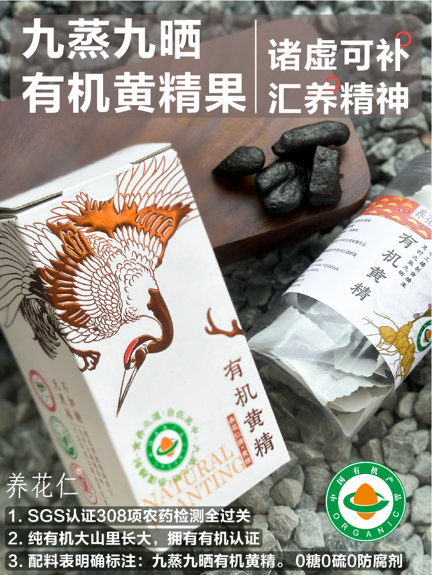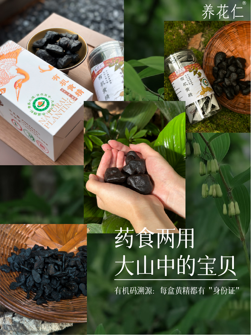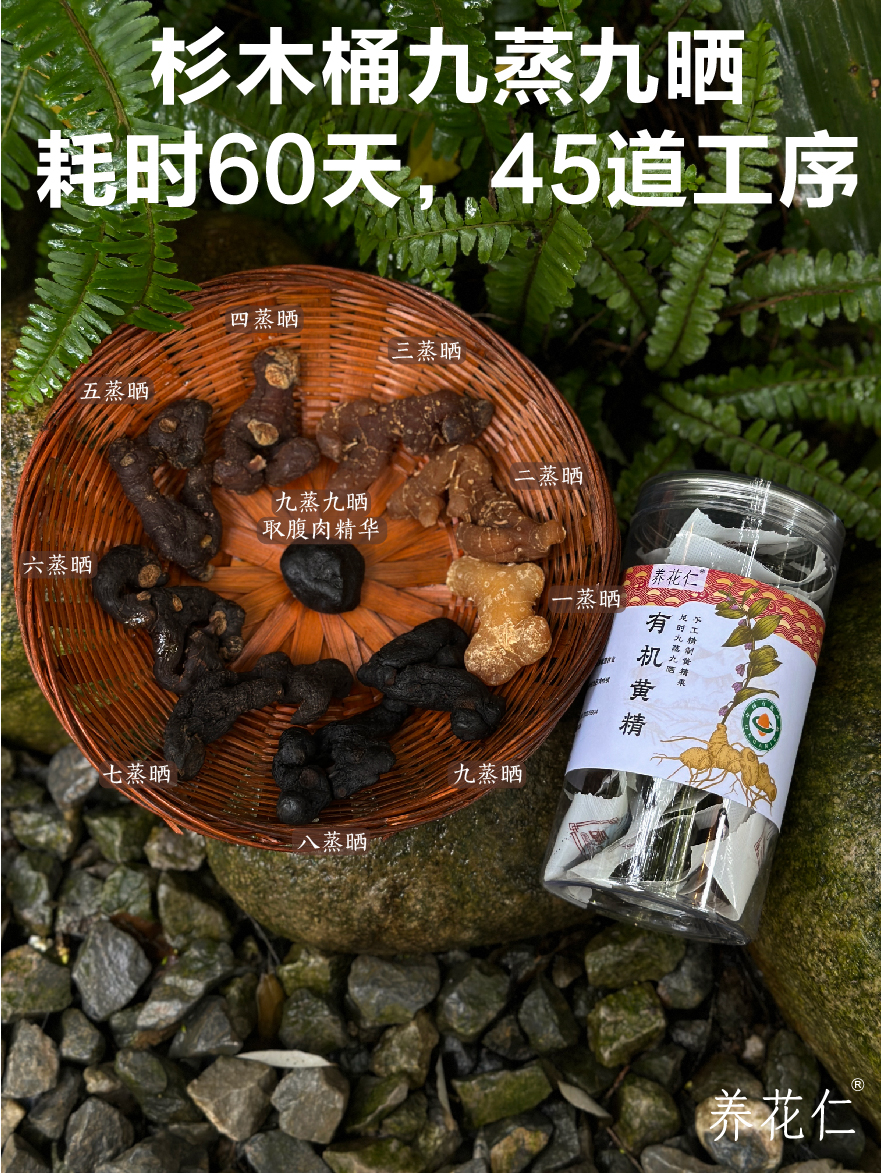 【大山中的宝贝!】养花仁 有机野生黄精200g/盒 传统衫木蒸箱 九蒸九晒45道工序,乌黑油润,肉质细腻,口感软糯甜香;有机黄精茶温和不上火,口感甘甜醇香,无茶碱,
