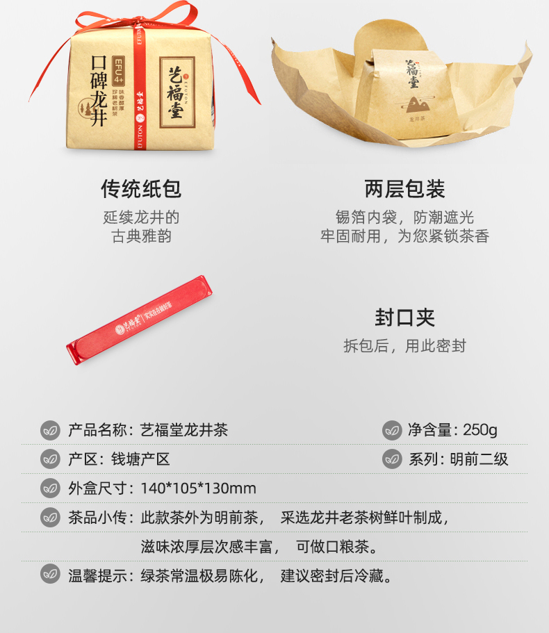 【买2送胎菊】艺福堂 明前二级龙井茶 口碑龙井茶EFU4+ 2025新茶 250g/包