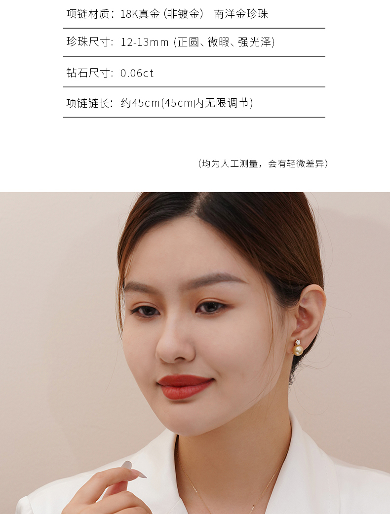 【挚友限定】悦甄 戴妃 18K金南洋金珍珠钻石项链12-13mm