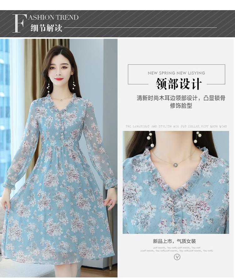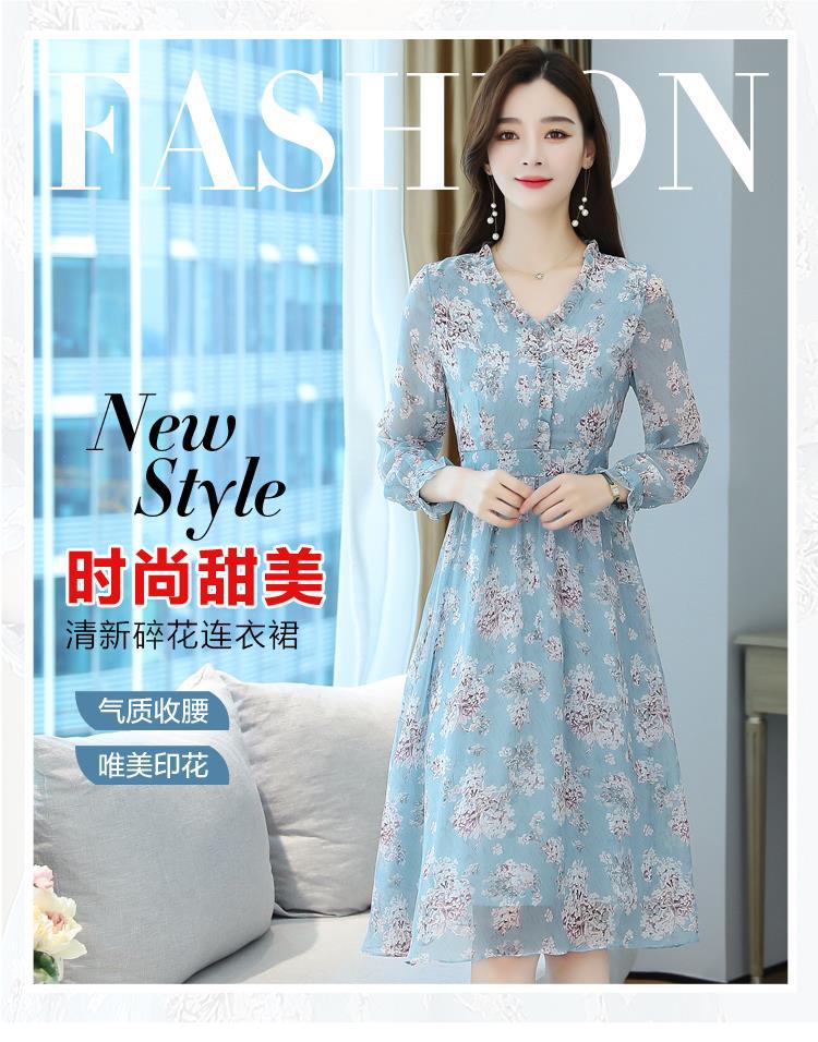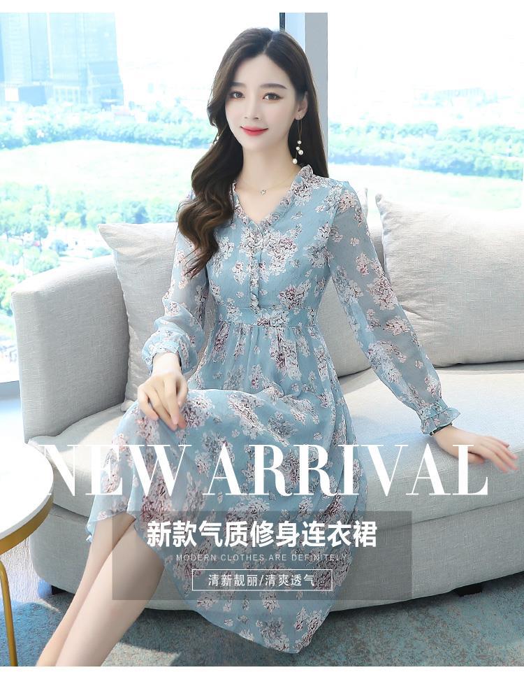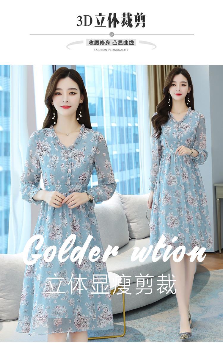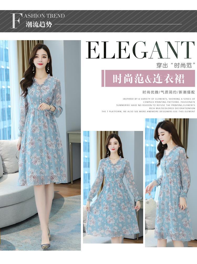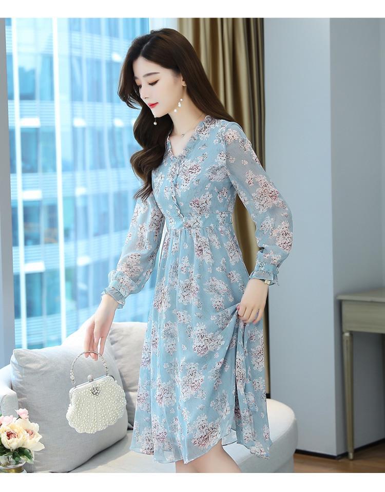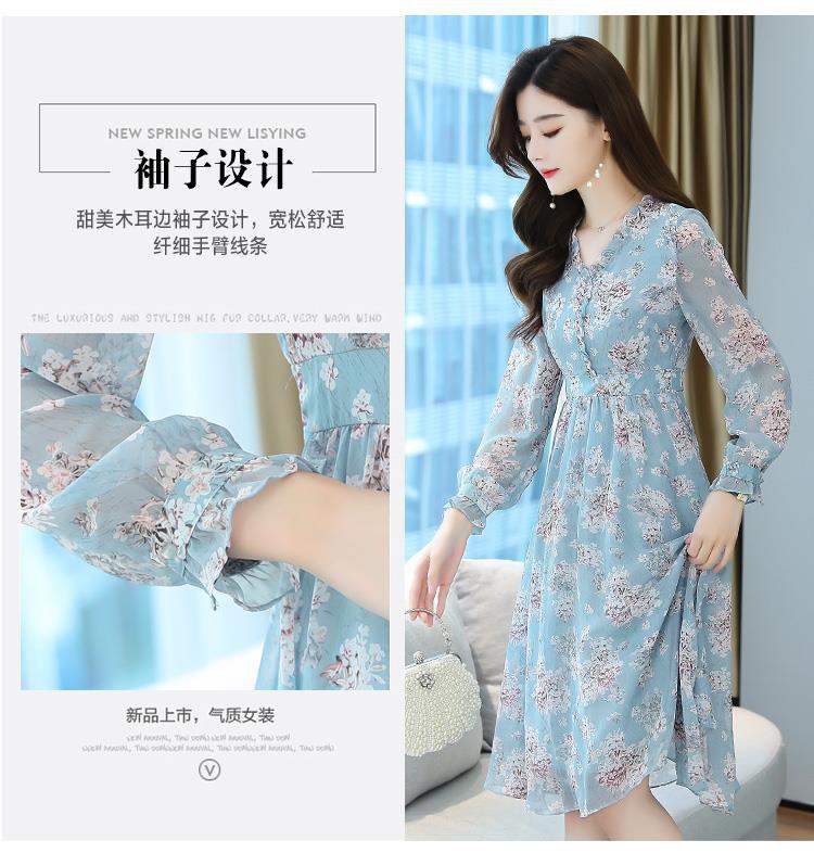黛唯梵碎花雪纺连衣裙子女装秋季2022年新款长袖遮肉小个子气质优雅时尚