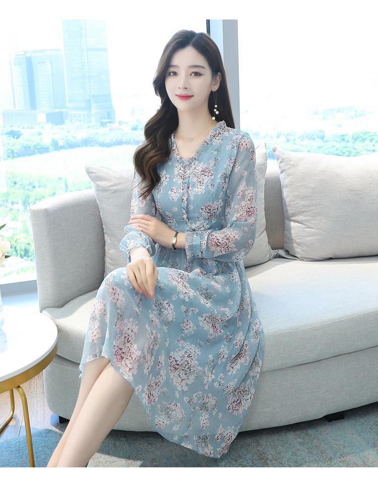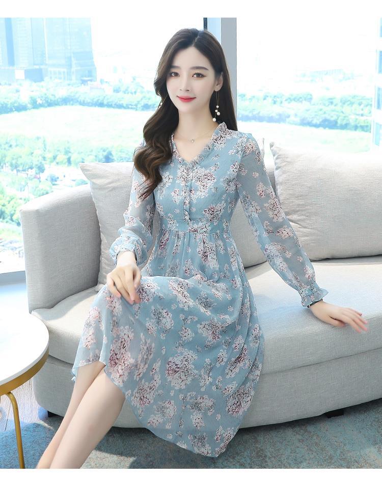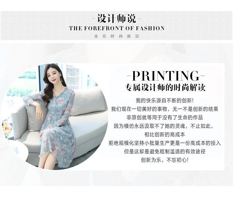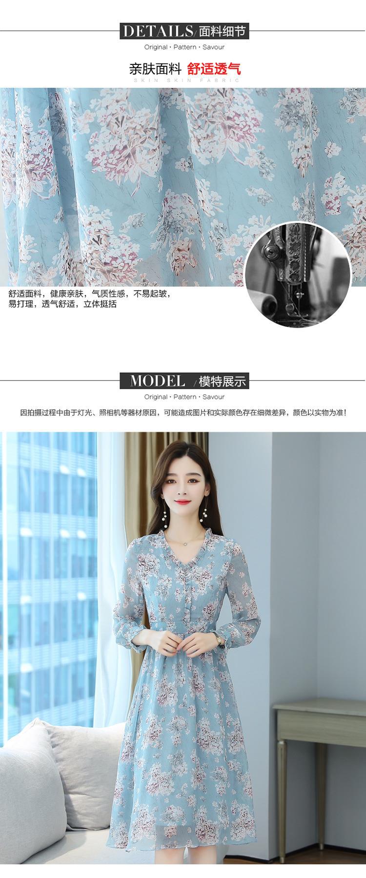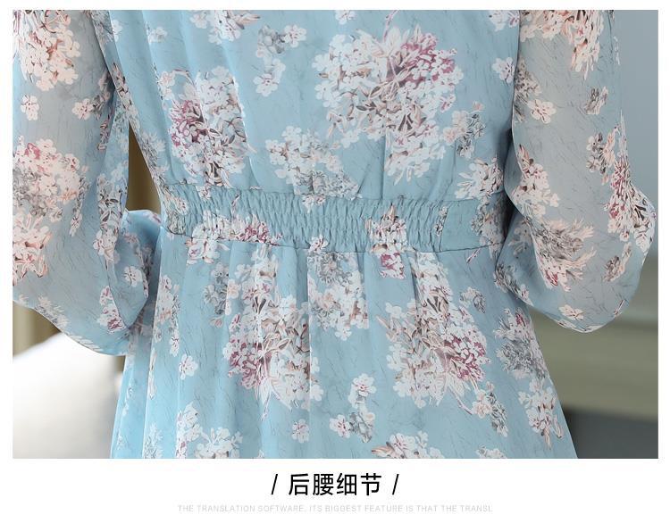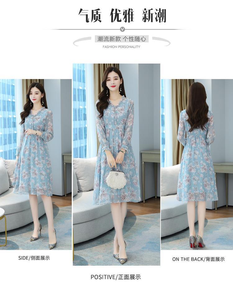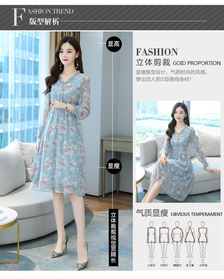 黛唯梵碎花雪纺连衣裙子女装秋季2022年新款长袖遮肉小个子气质优雅时尚
