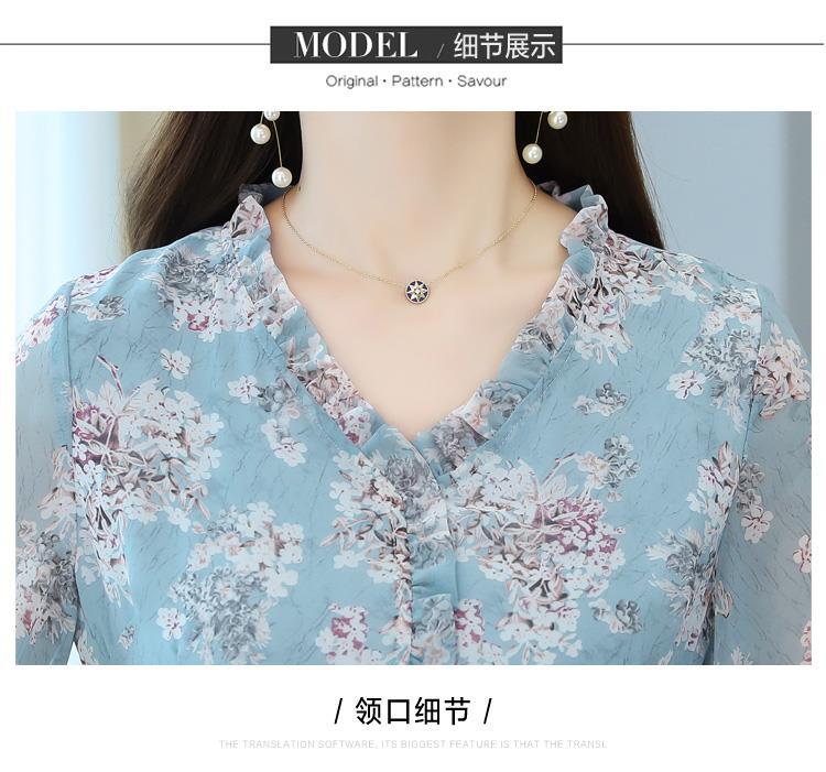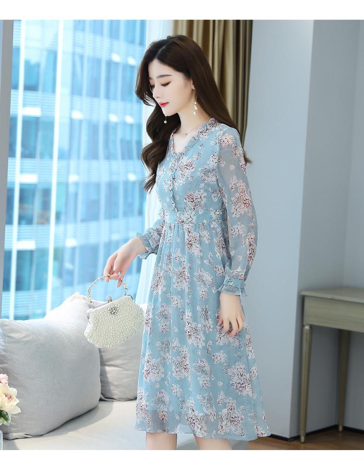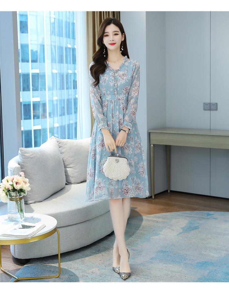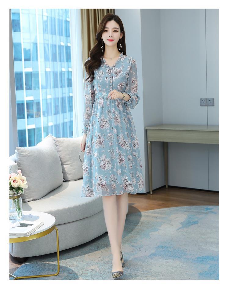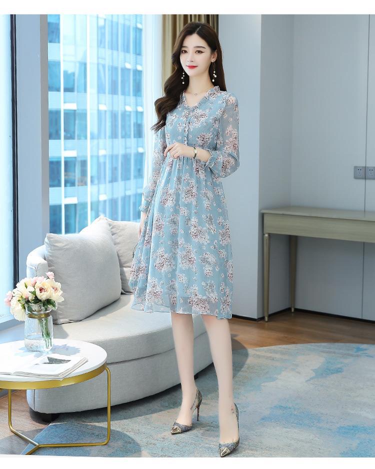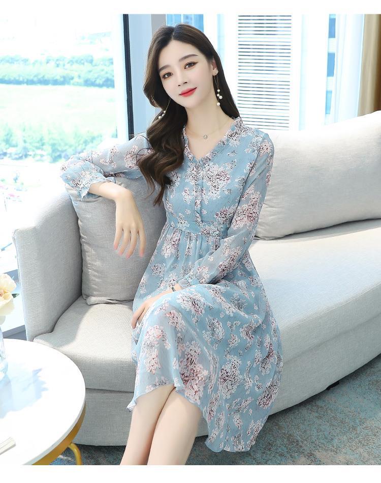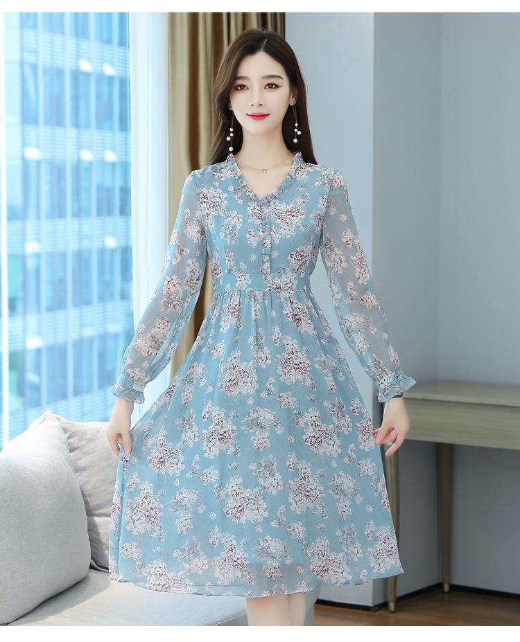 黛唯梵碎花雪纺连衣裙子女装秋季2022年新款长袖遮肉小个子气质优雅时尚