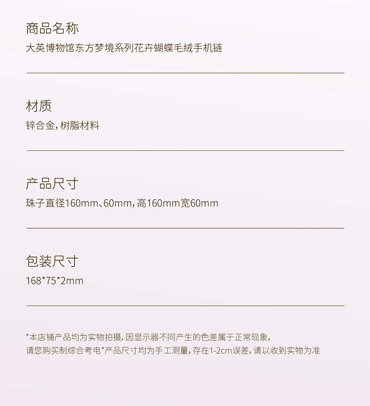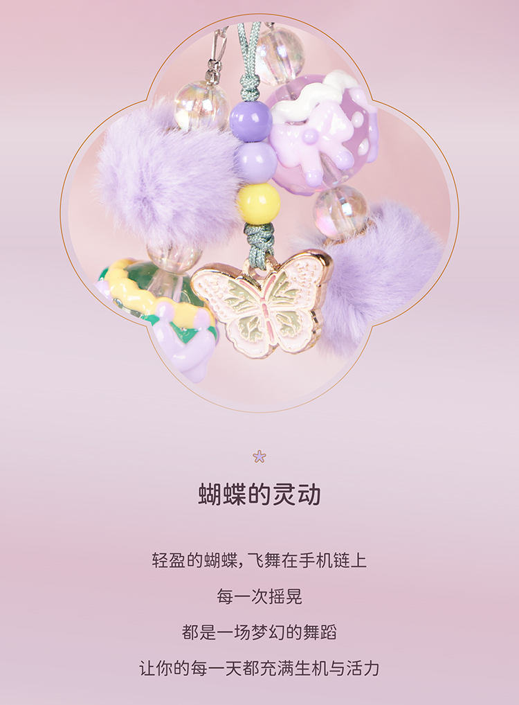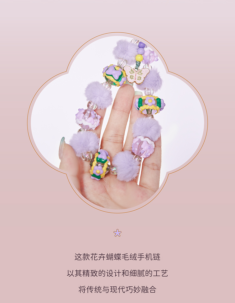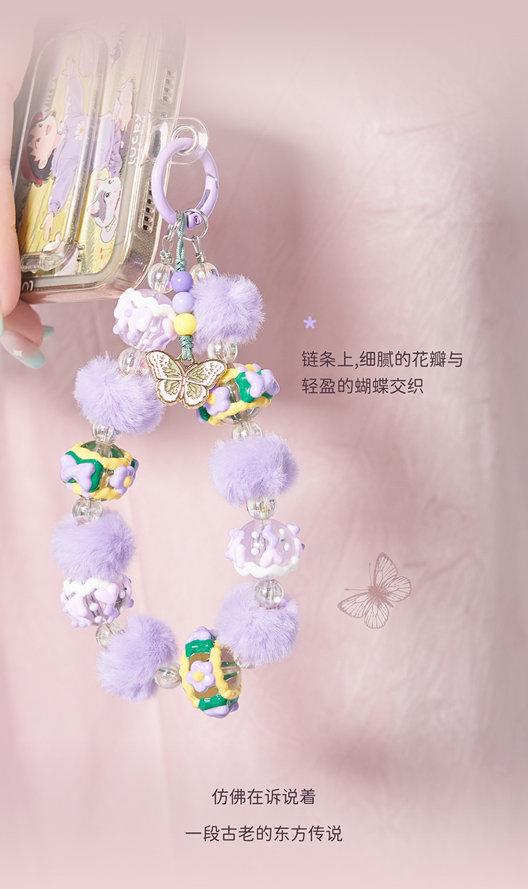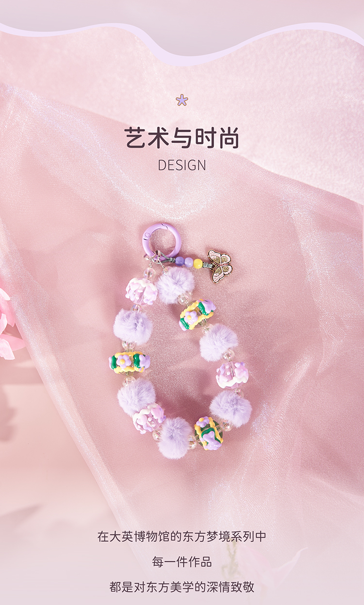 大英博物馆 东方梦境系列 花卉蝴蝶毛绒手机链