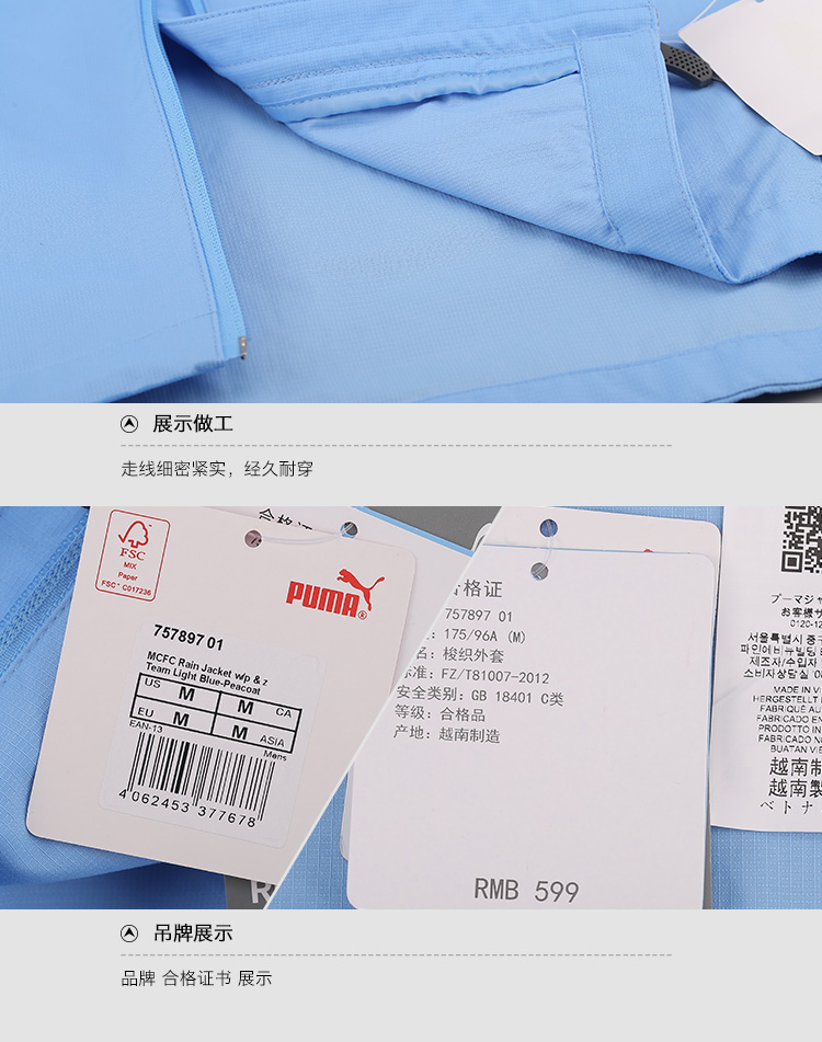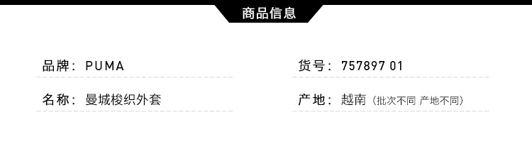 PUMA彪马 曼城20/21赛季风雨衣梭织外套75789701