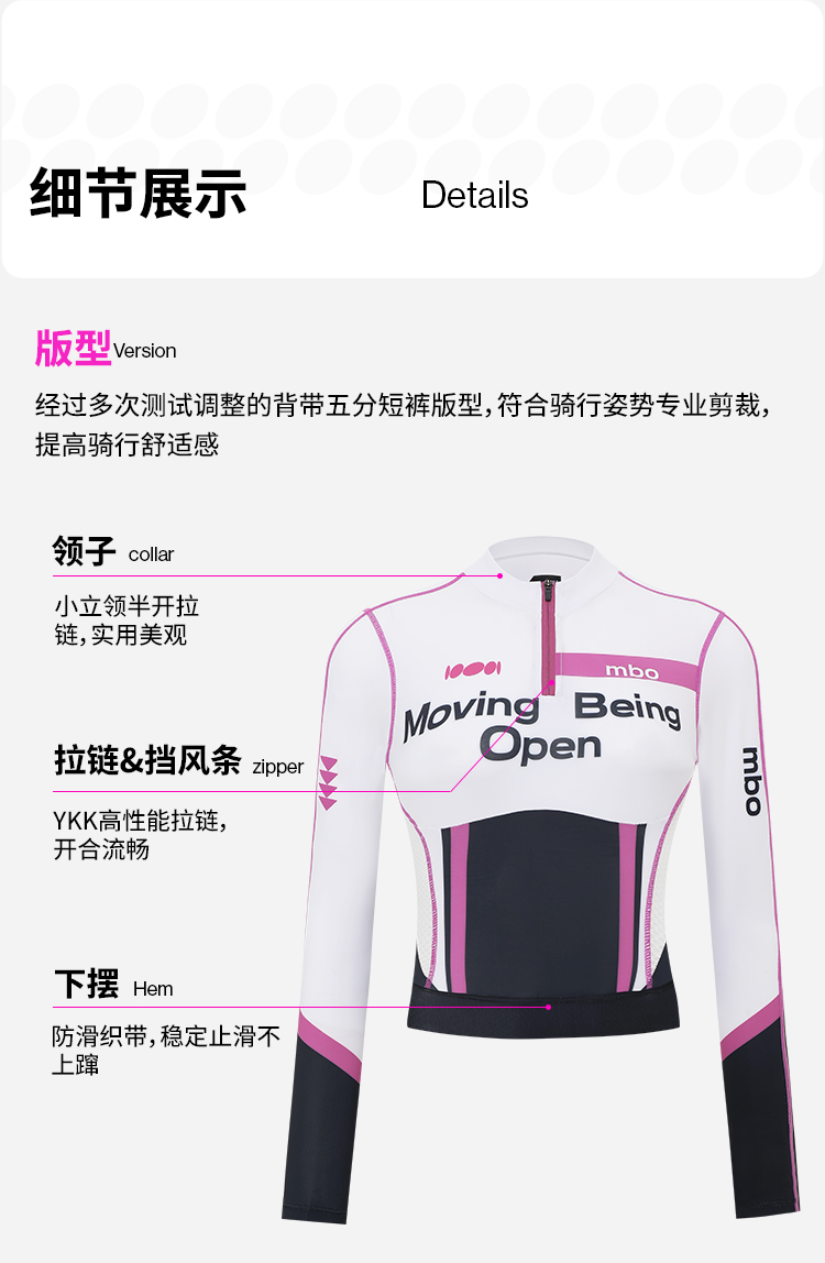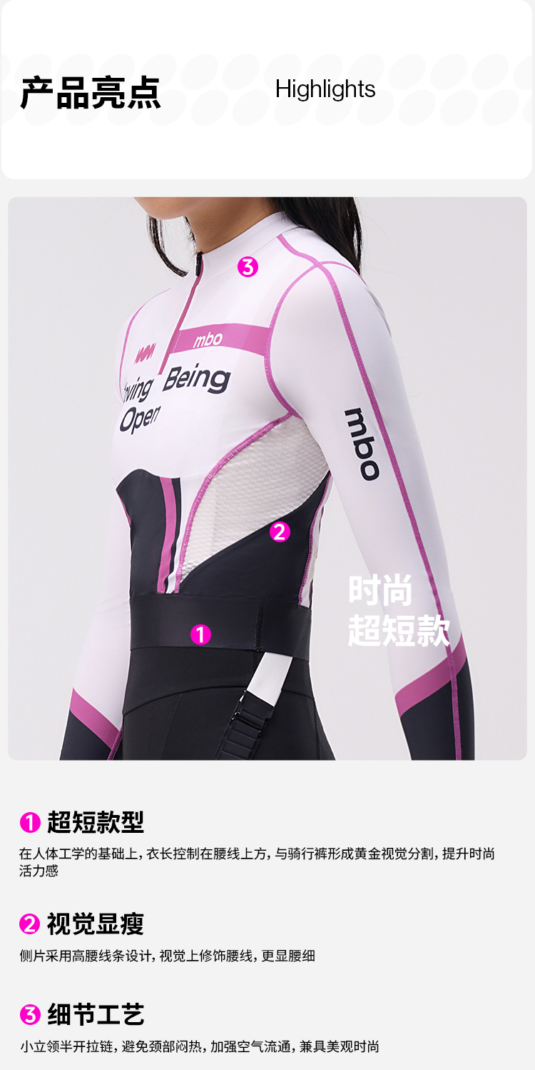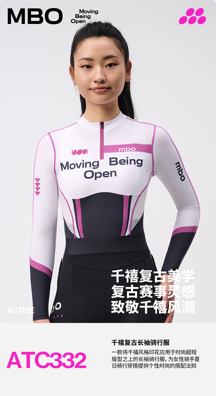 MBO女子千禧复古长袖骑行服ATC332超短显瘦上衣
