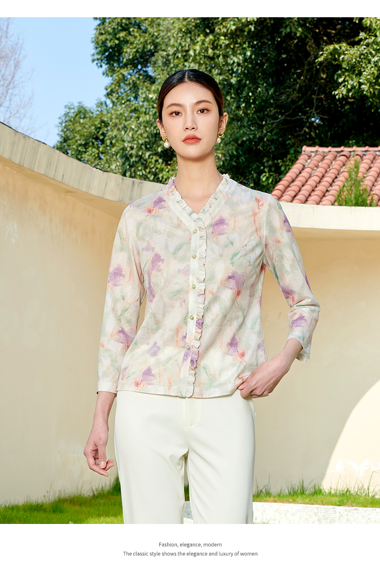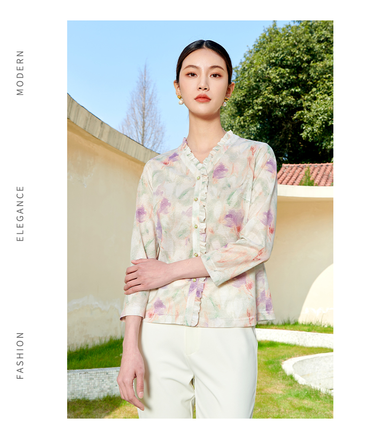 佐尔美秋季新款 通勤花色长袖衬衣针织工艺衫女M41CC10