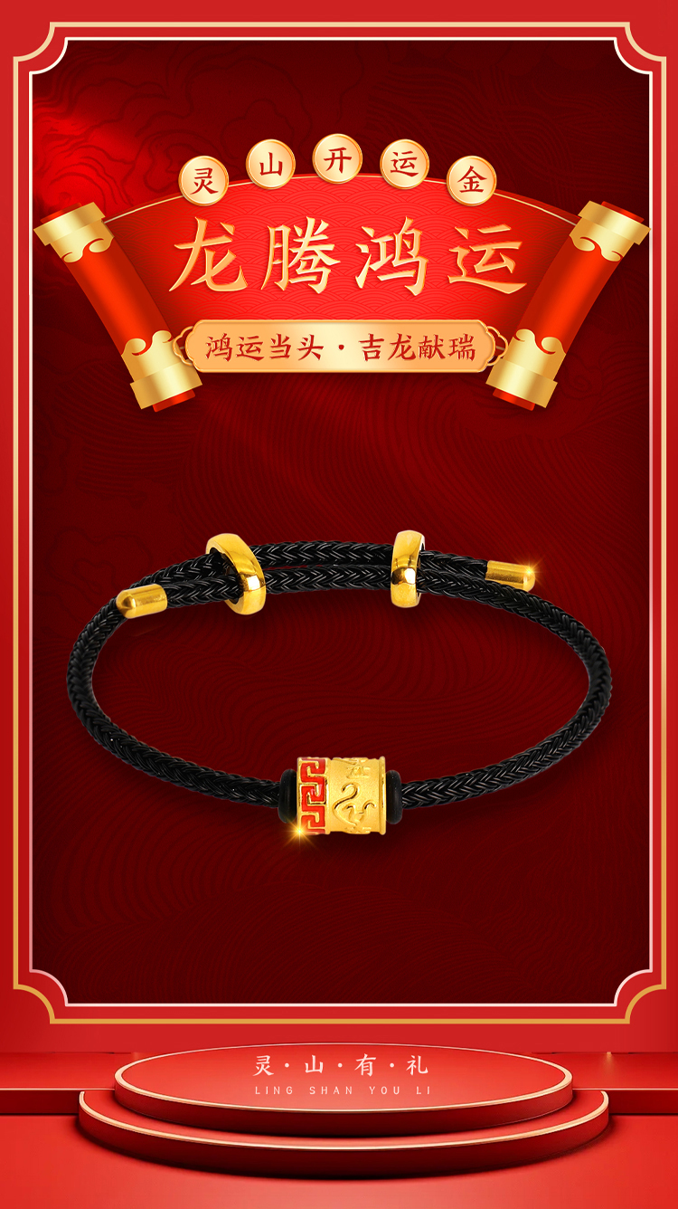 灵山开运金·鸿运·龙腾鸿运黄金手绳