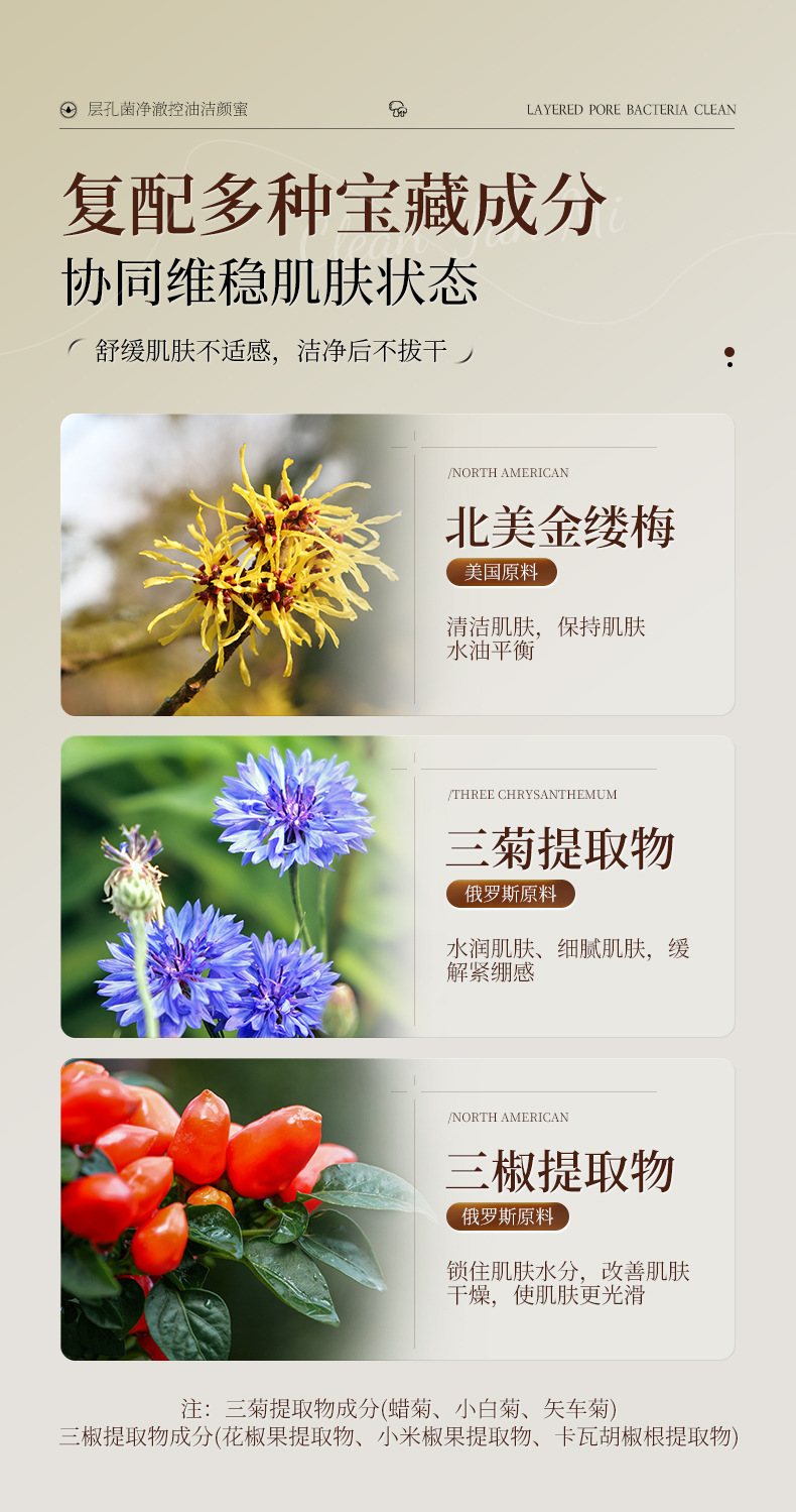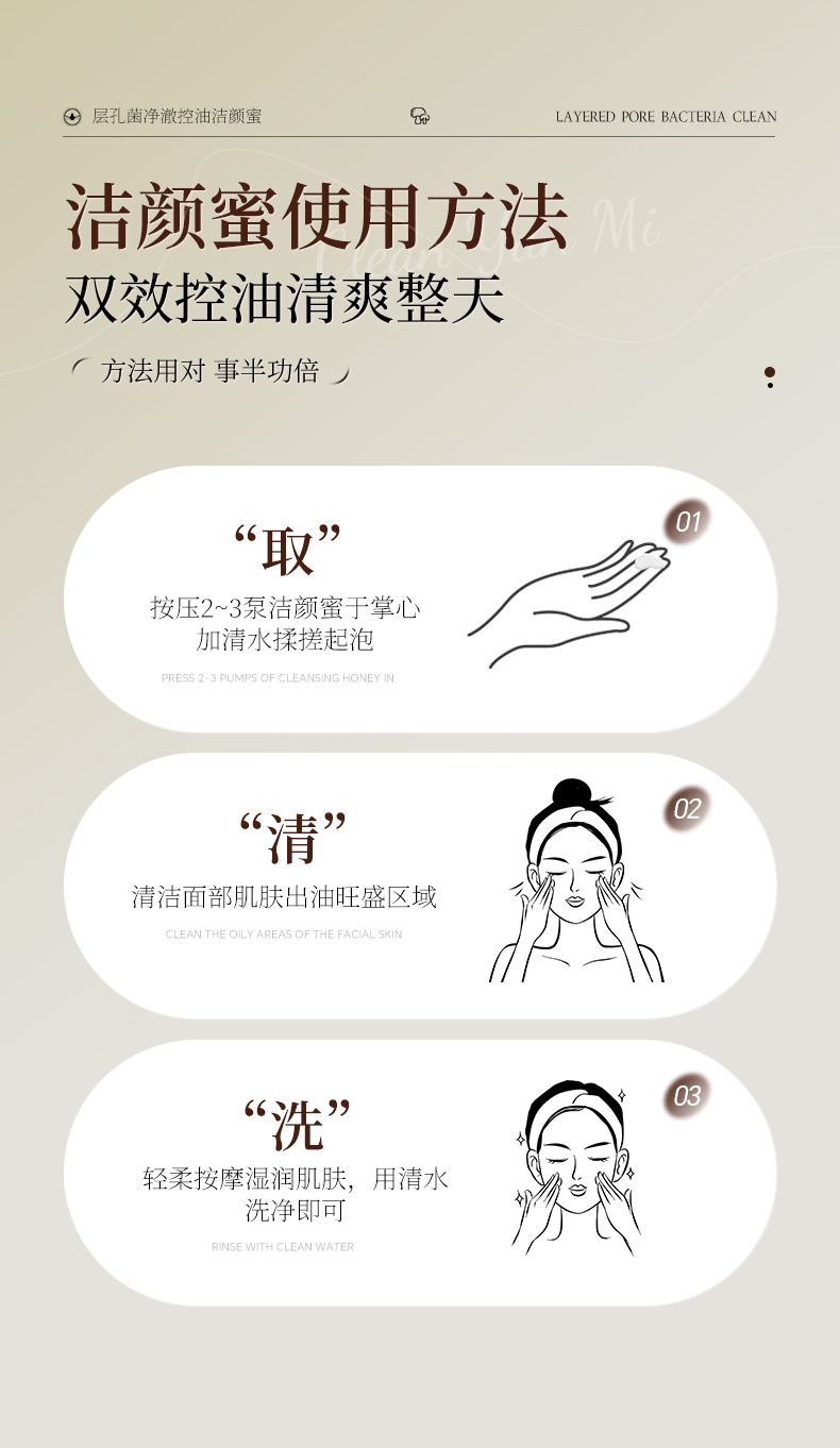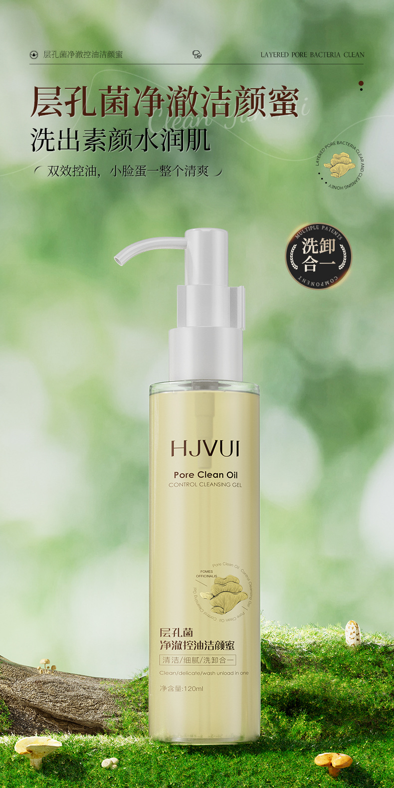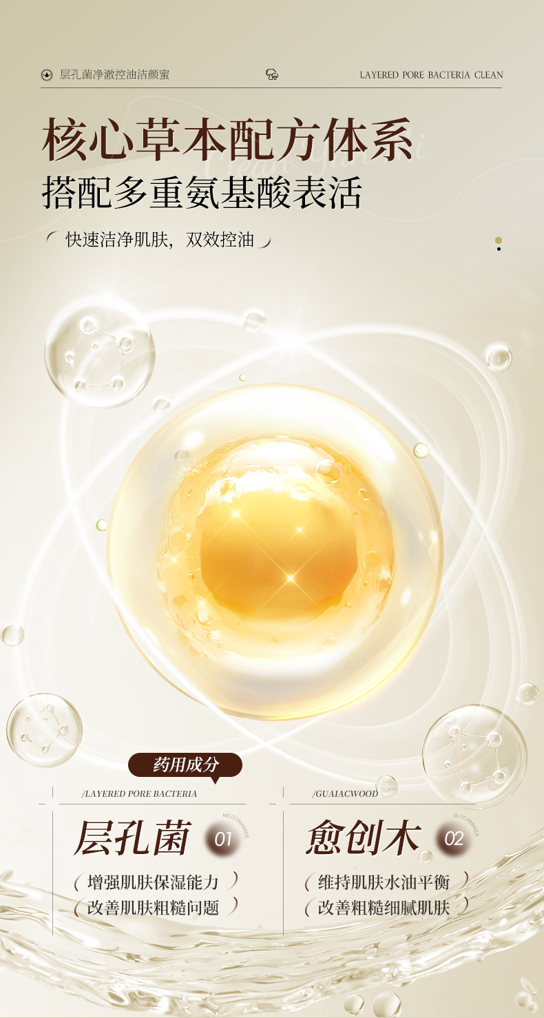 【温和控油!洁净不拔干】层孔菌洁颜蜜洗卸二合一氨基酸控油洗面奶清洁保湿舒缓洁面乳。ry