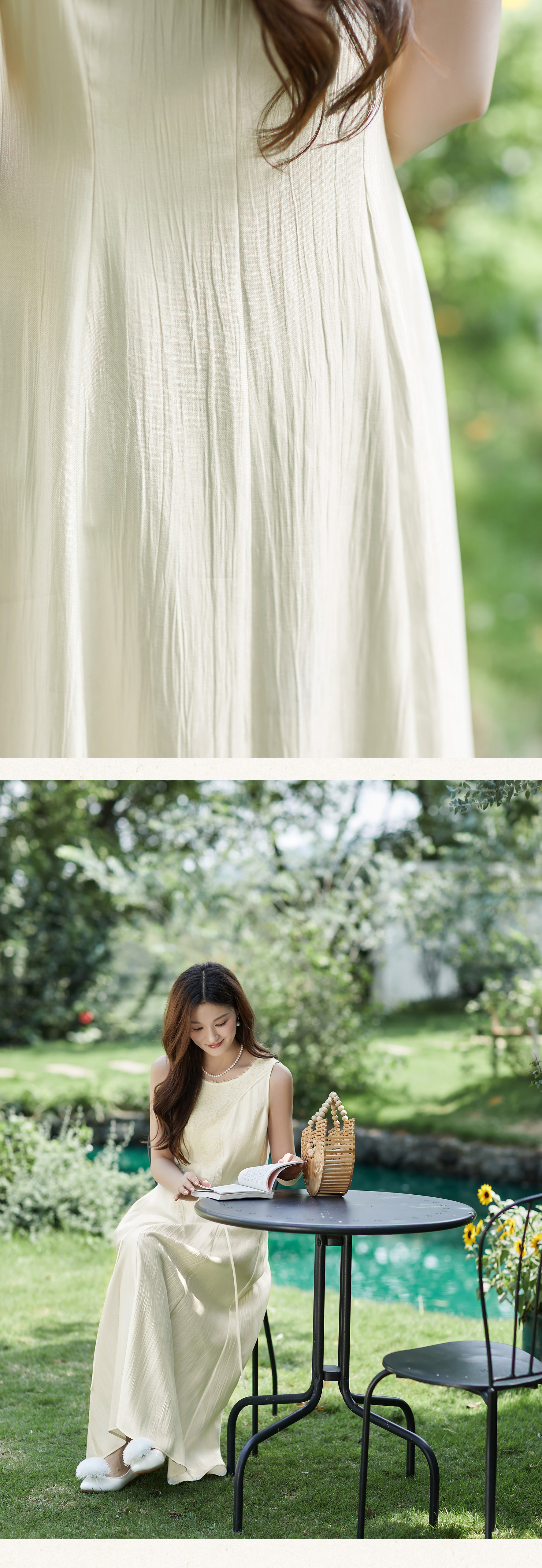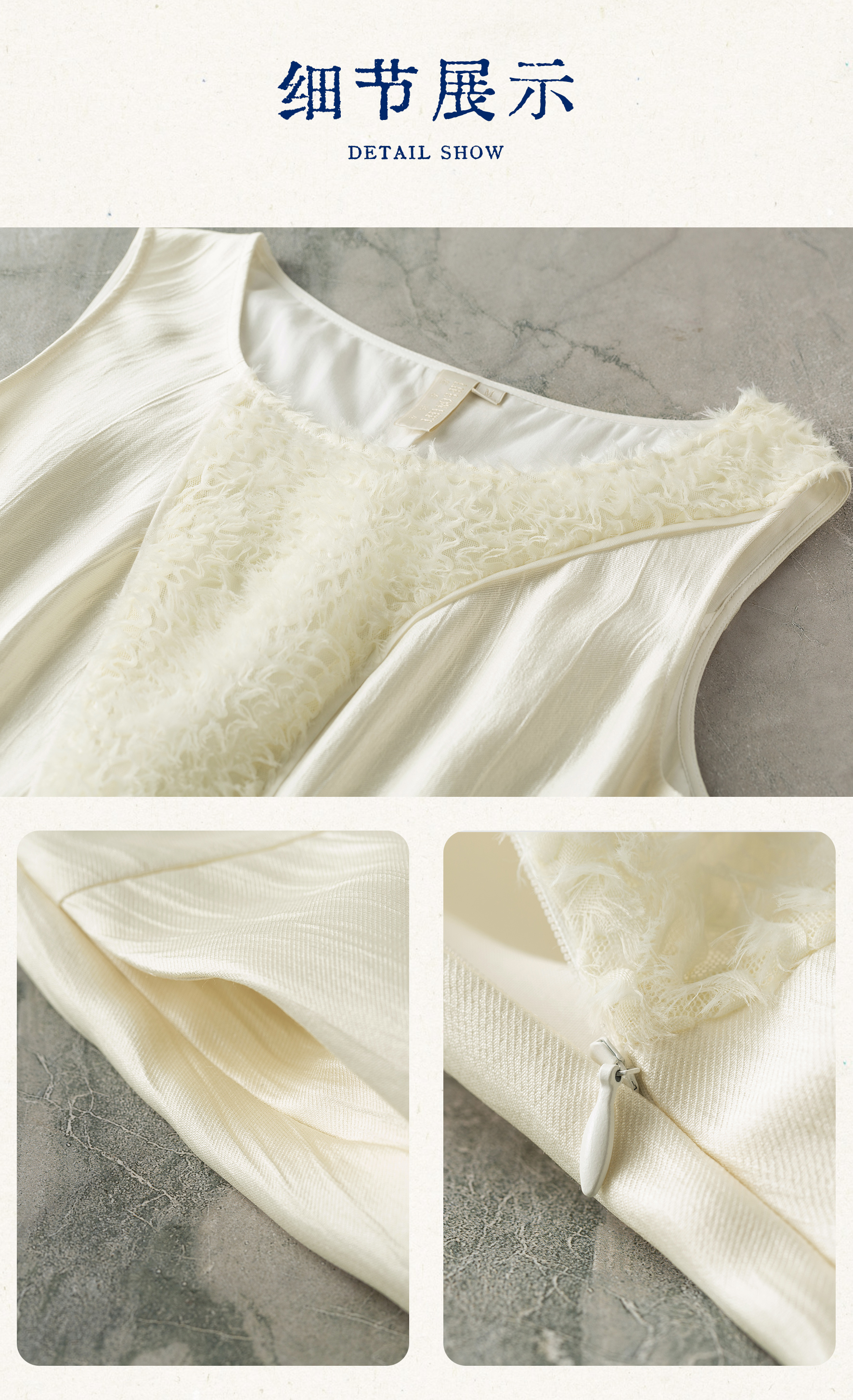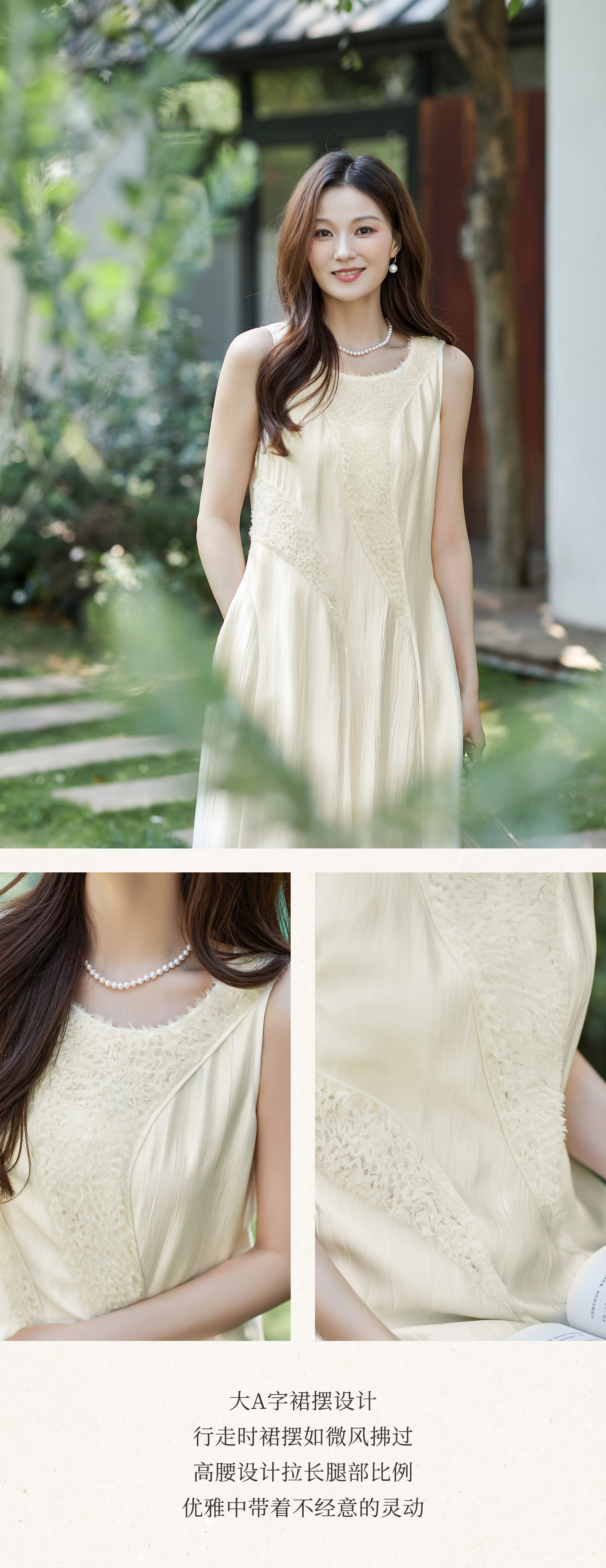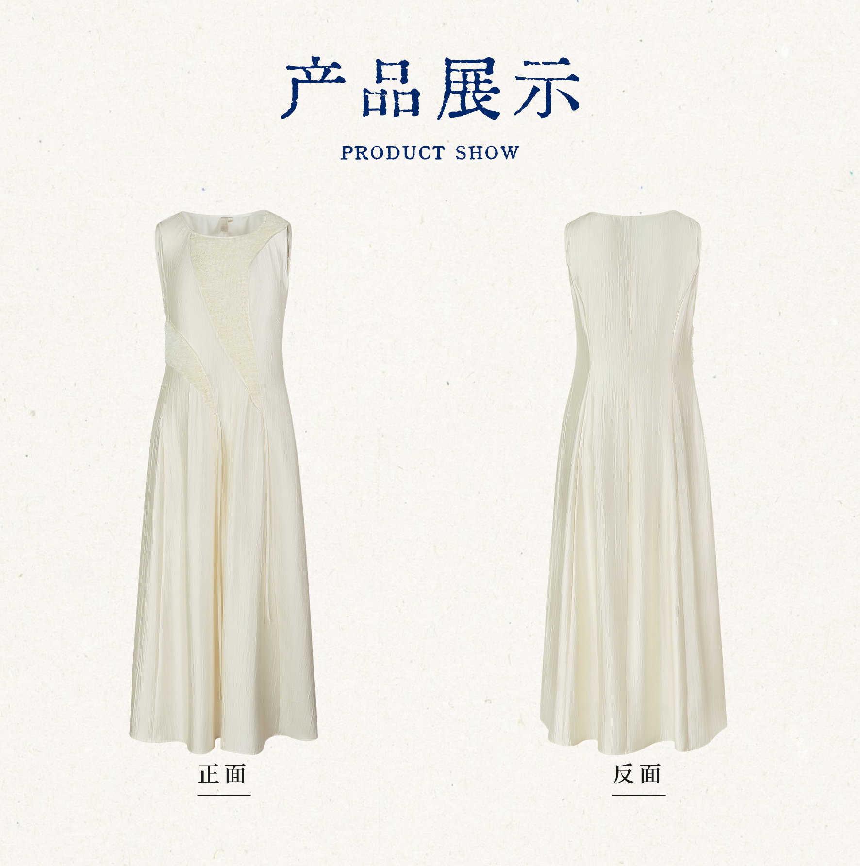 【林栖设计小店】【林栖推荐】新品夏法式复古蕾丝拼接缎面无袖连衣裙N1962236