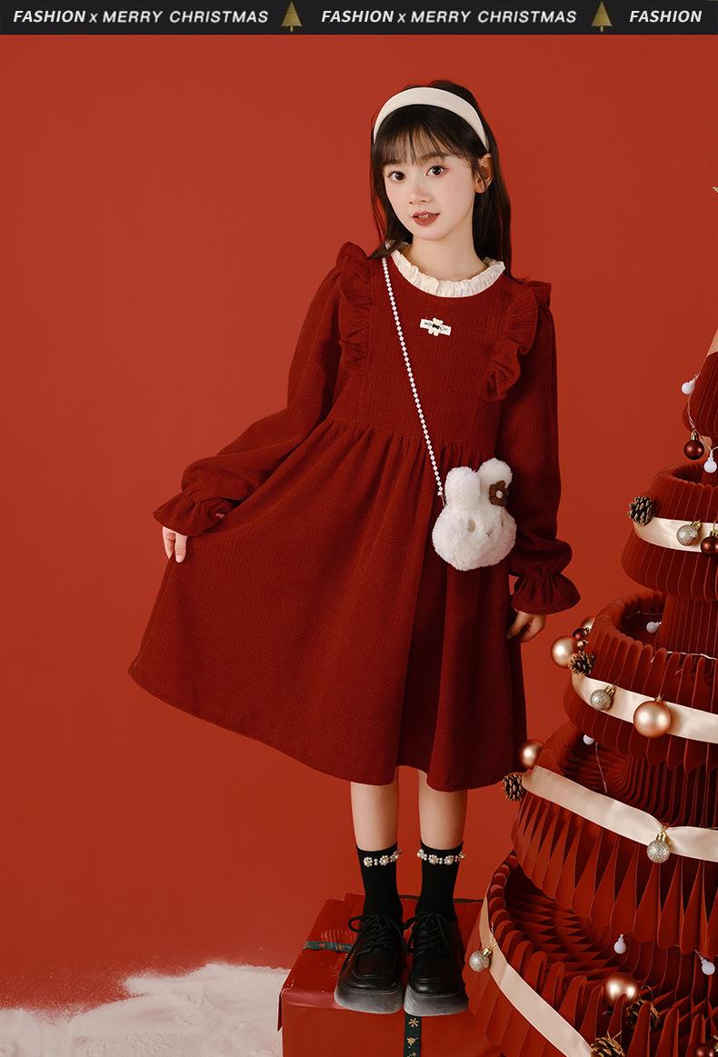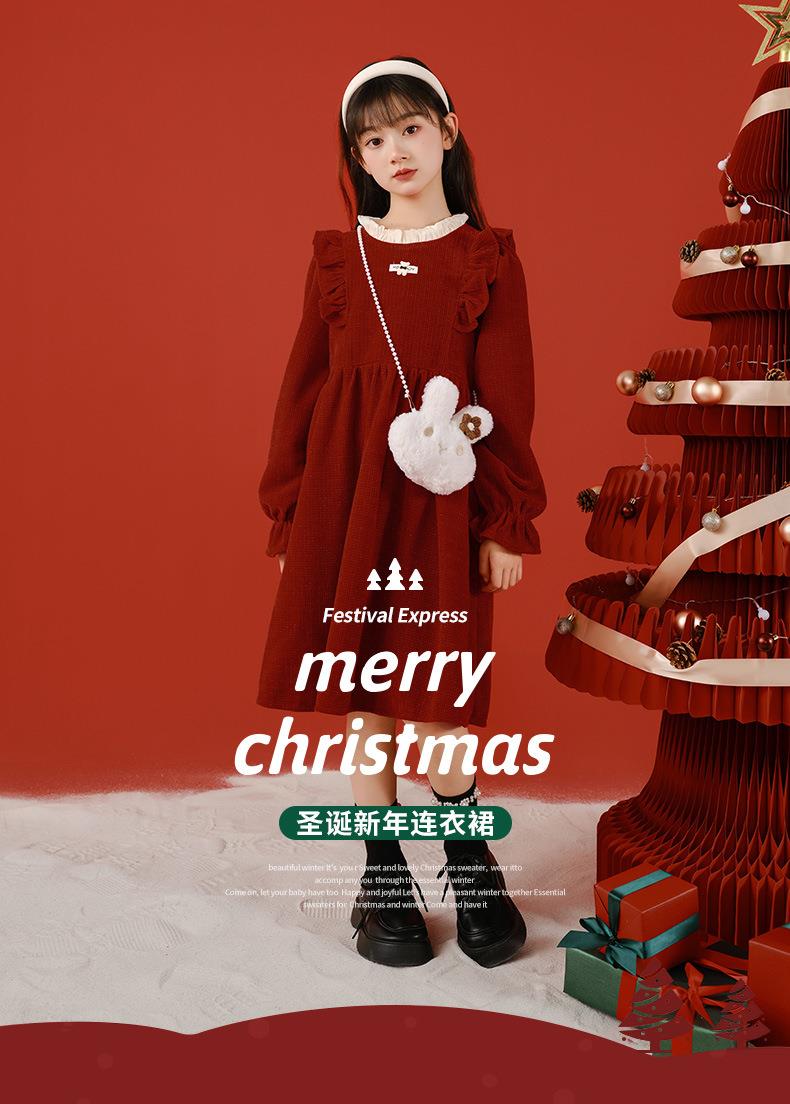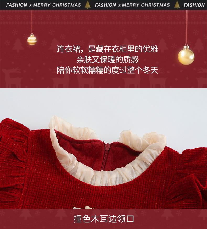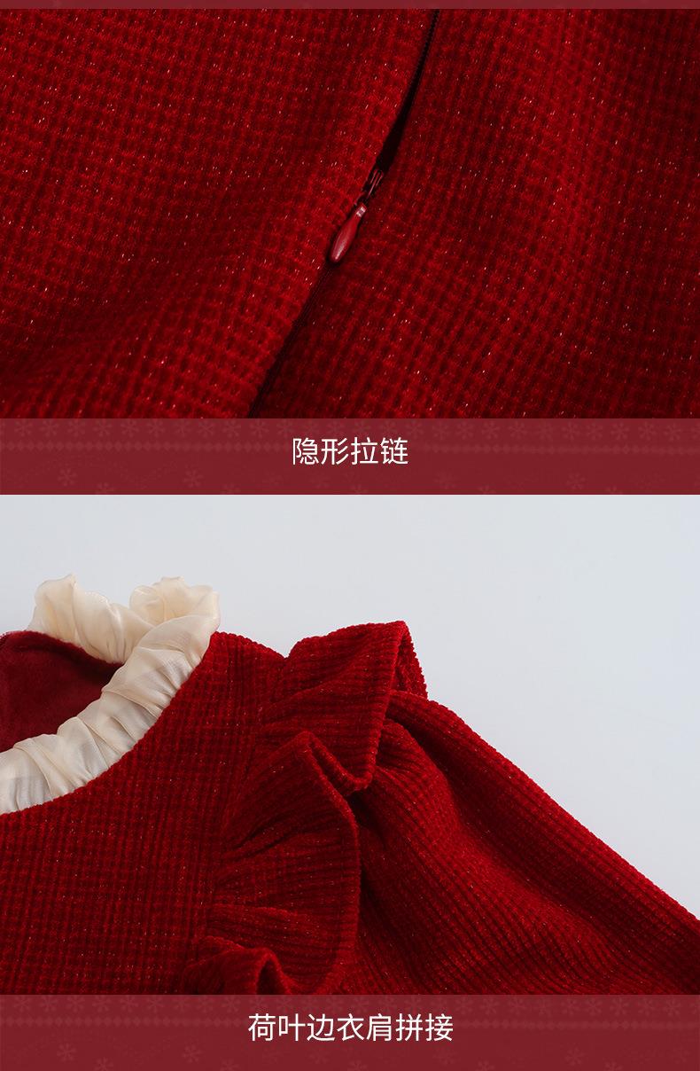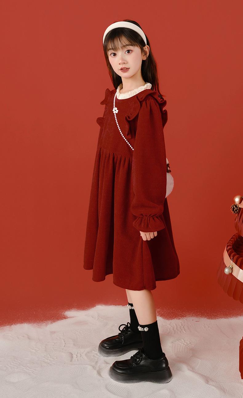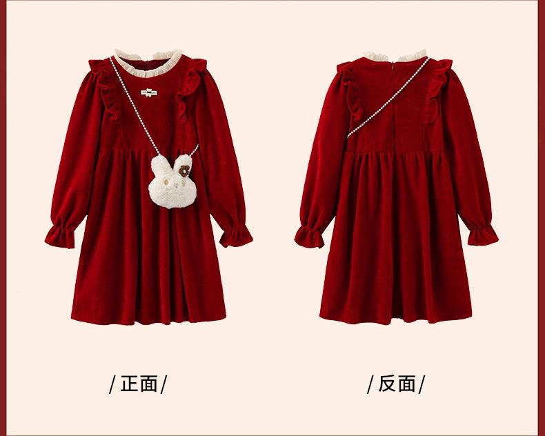 大女童连衣裙加绒童装红色秋冬新款一件代发新年2025洋气公主裙