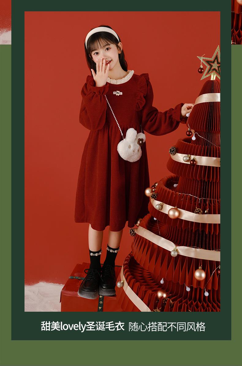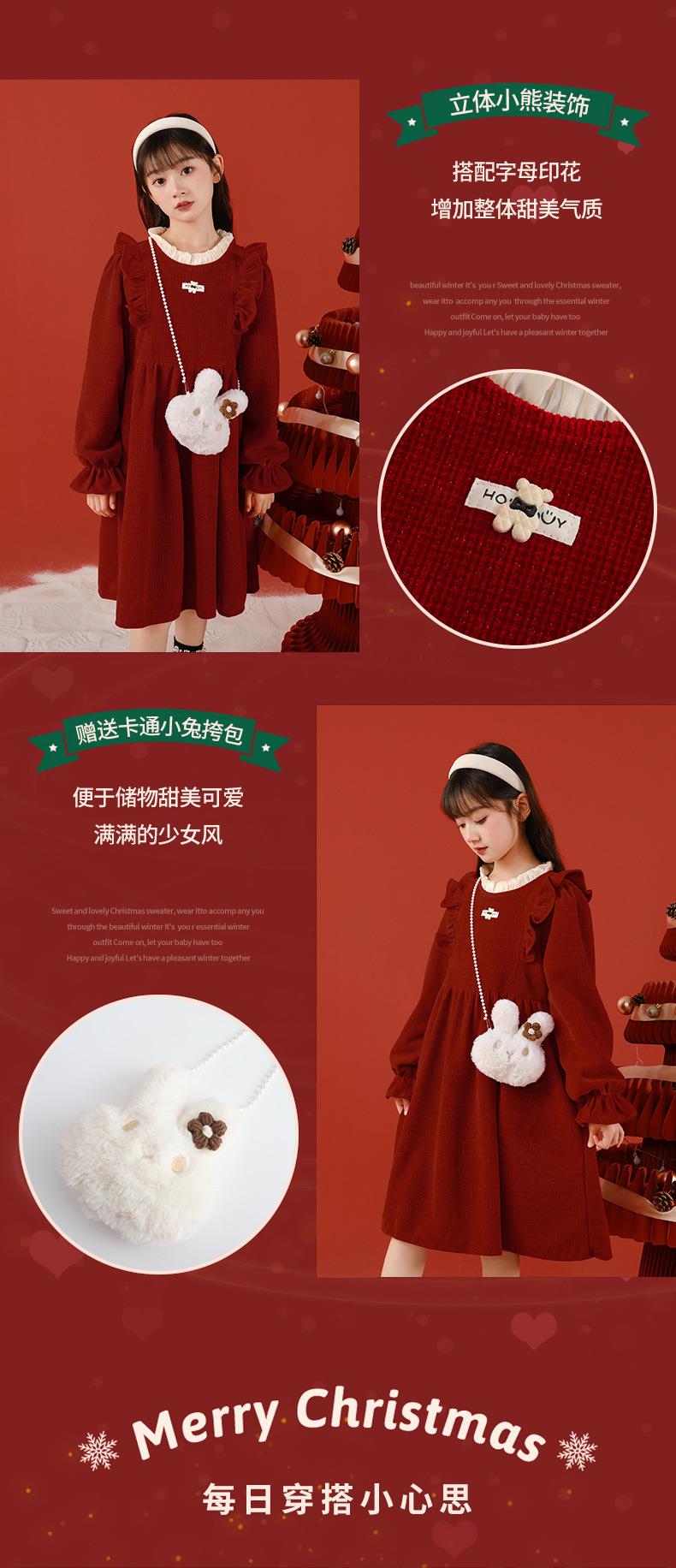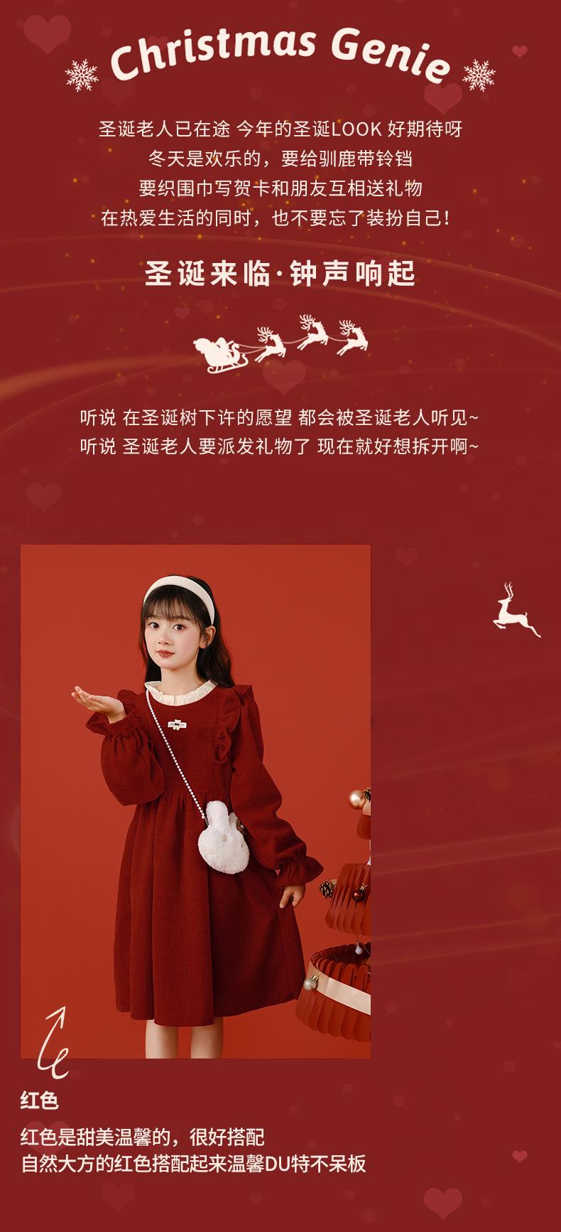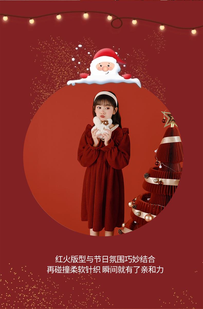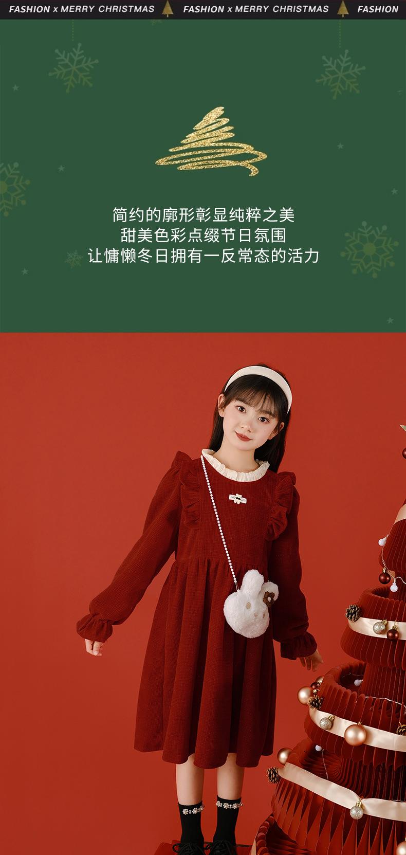 大女童连衣裙加绒童装红色秋冬新款一件代发新年2025洋气公主裙