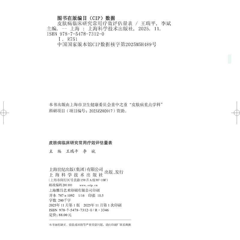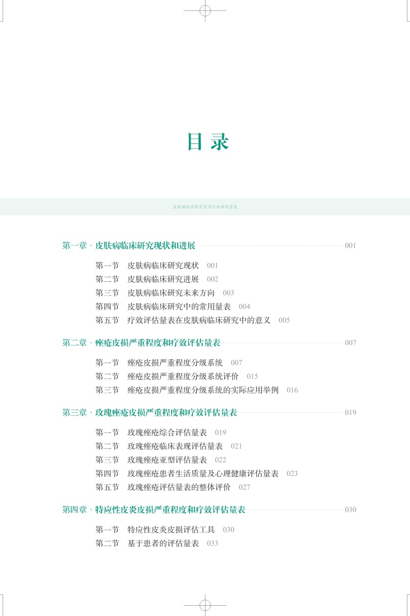 皮肤病临床研究常用疗效评估量表 王瑞平 李斌 涵盖了14种临床常见皮肤病(包括痤疮 银屑病 特应性皮炎等)上海科学技术出版社