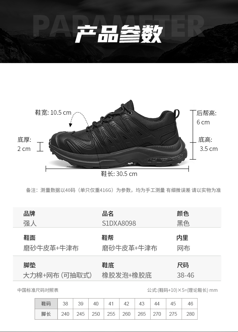3515强人休闲跑步小黑鞋男舒适透气战术作训鞋户外轻便运动男鞋 TJ-ZZ09X