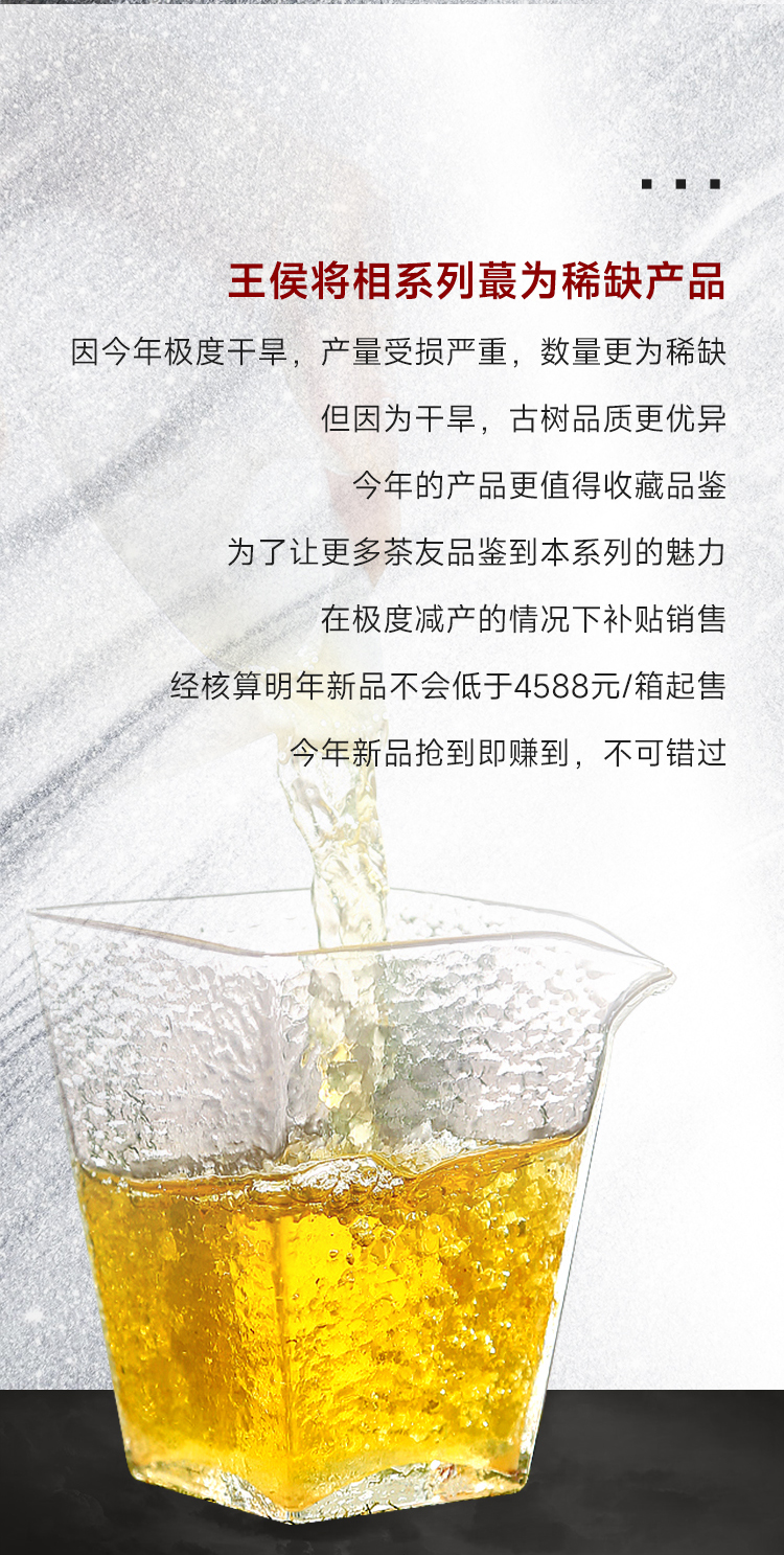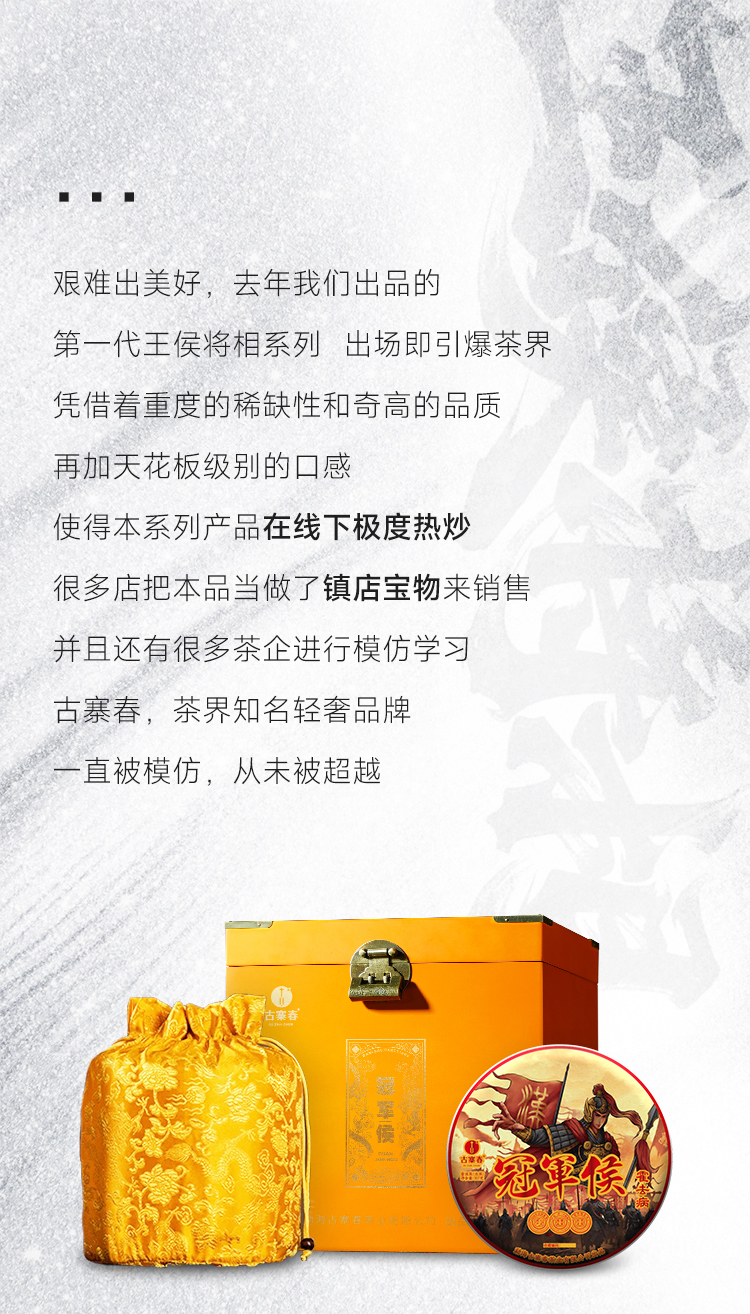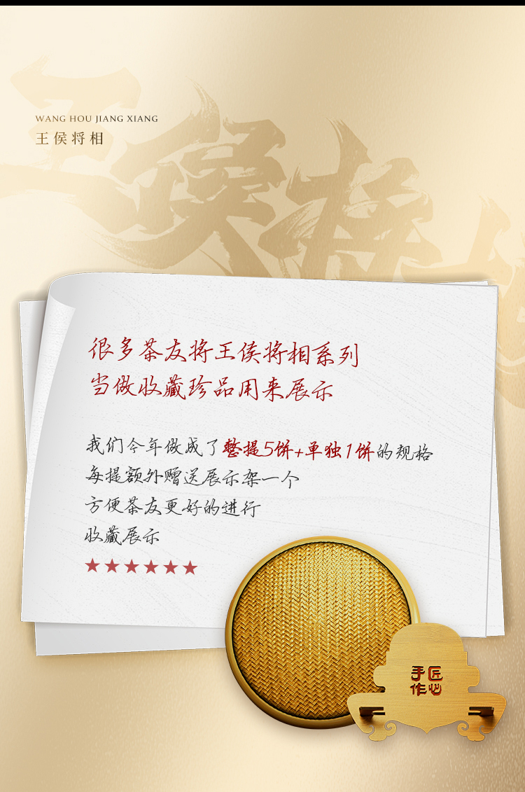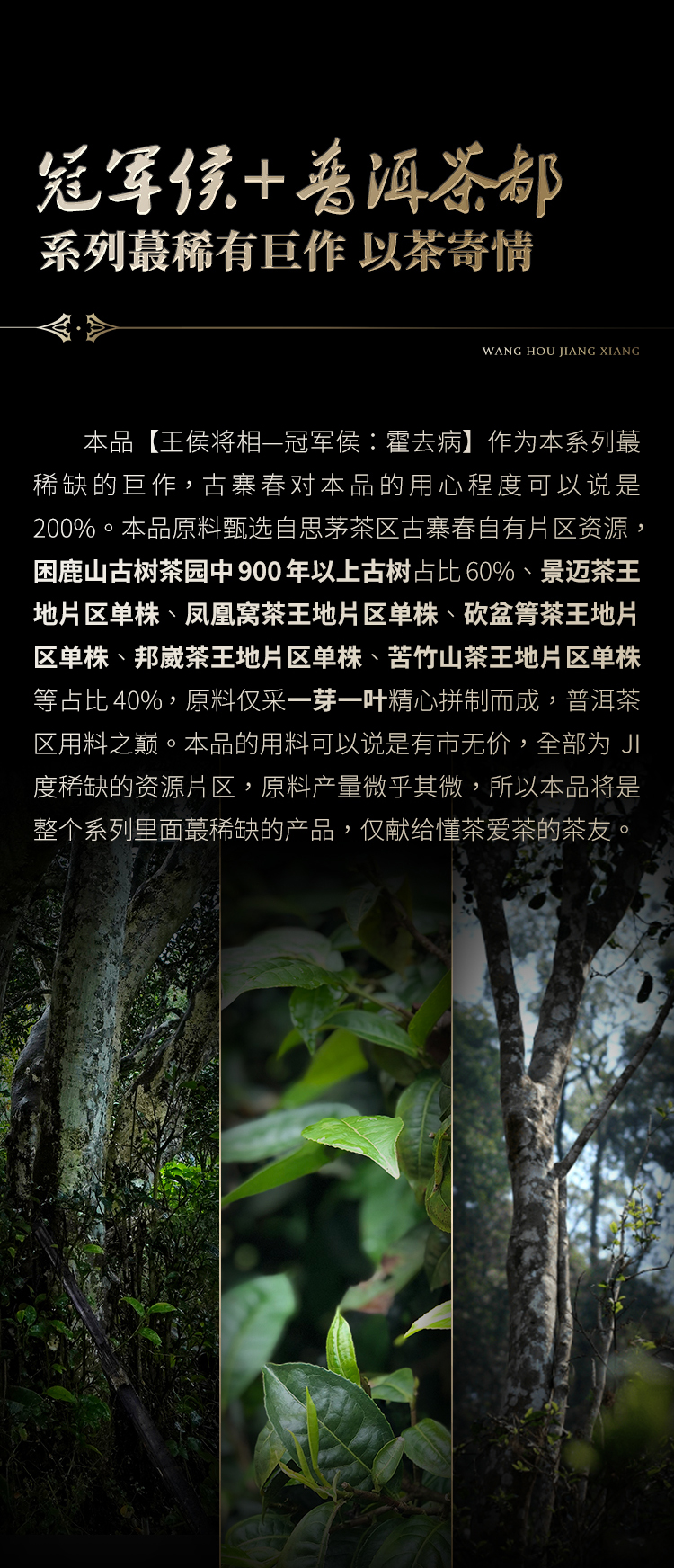 【王侯将相—冠军侯:霍去病】约8900一芽一叶成就一片茶饼 比茶王地单株更奢侈豪华!357克/饼茶,一箱内含6饼茶 拍5箱发6箱