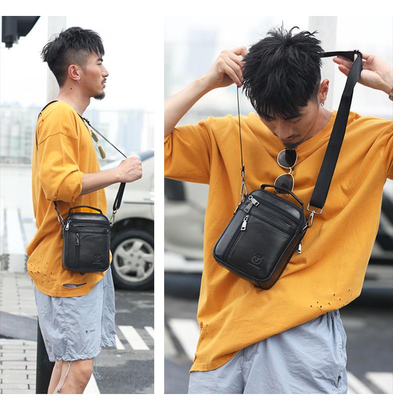 牛船长皮具男士真皮商务休闲单肩斜挎包多功能竖款韩版手提小挎包