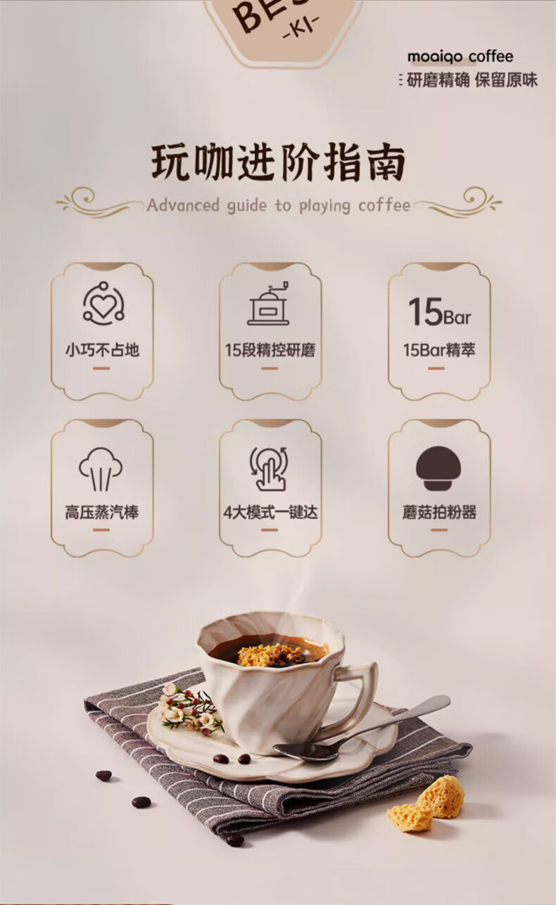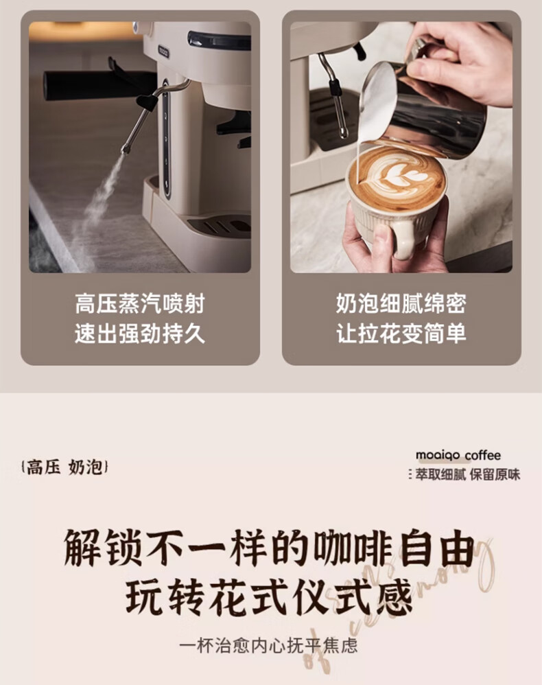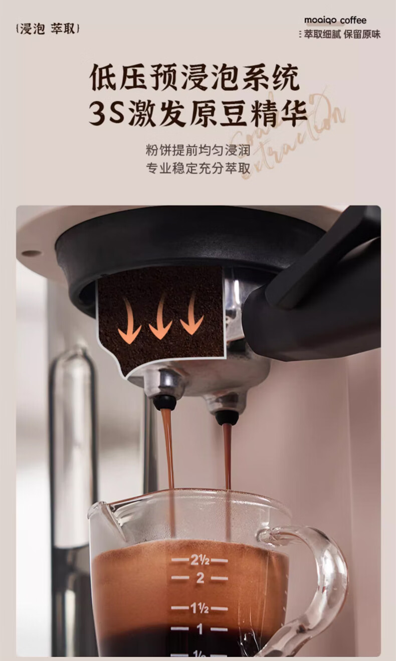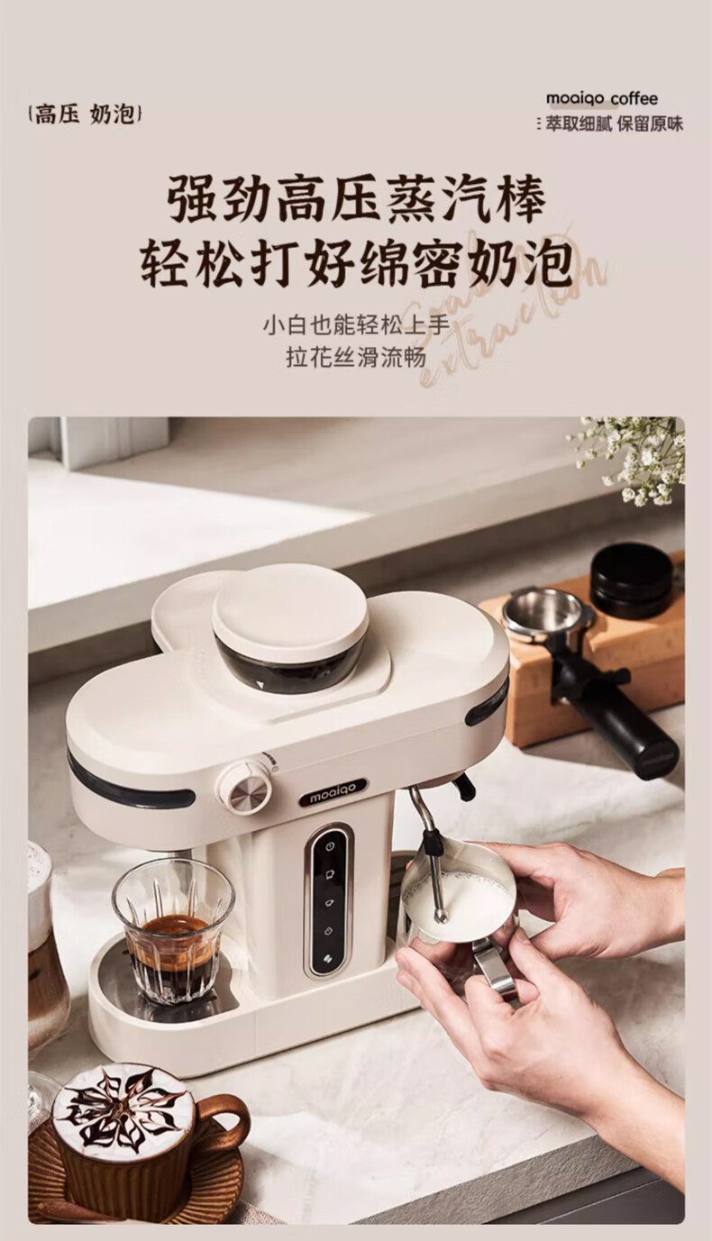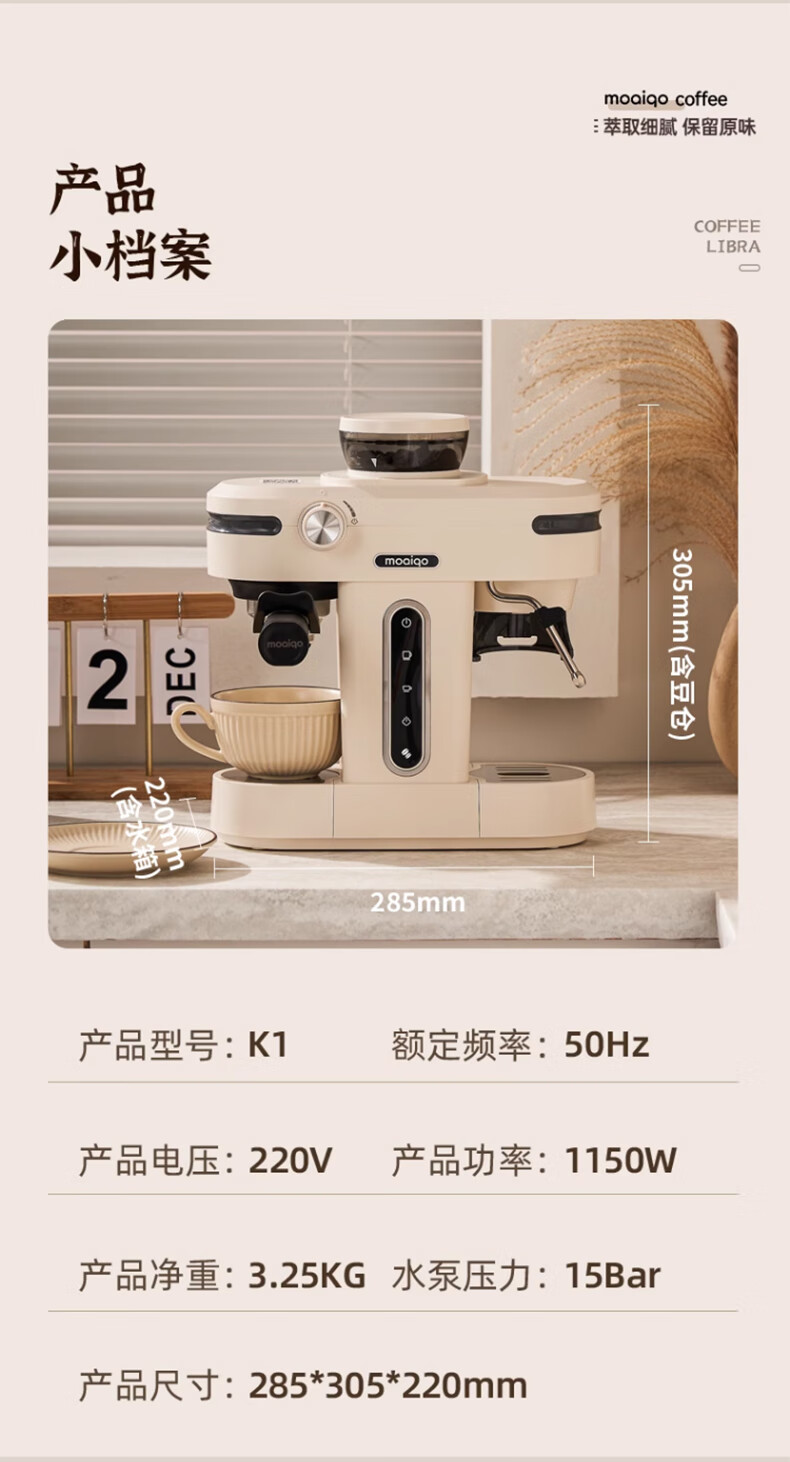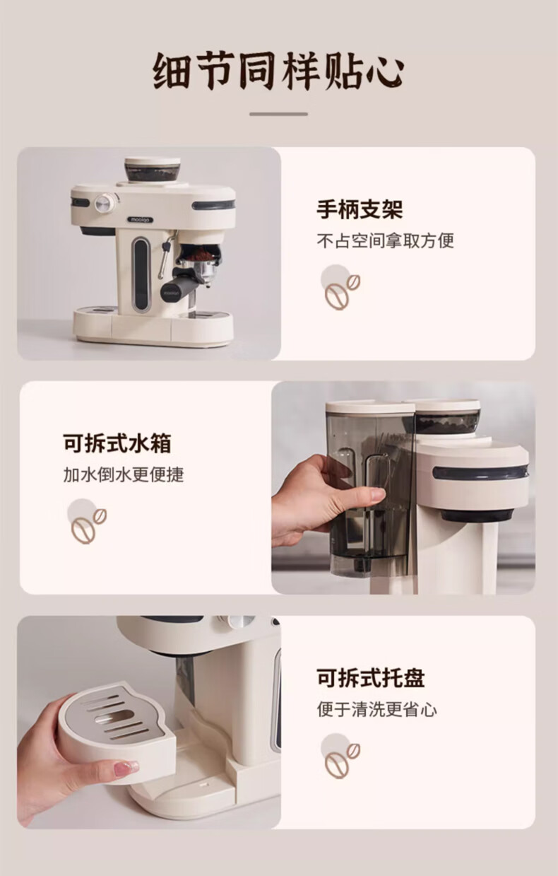 摩巧K1小天秤半自动意式咖啡机小型浓缩奶泡美式家用研磨一体机