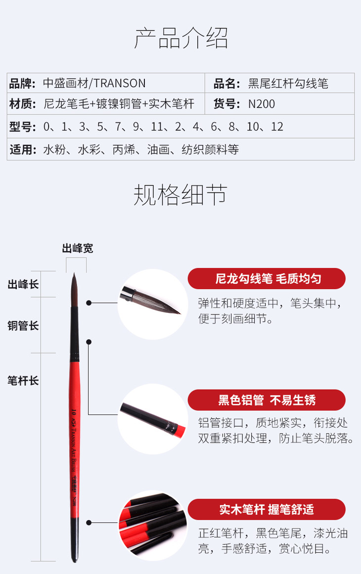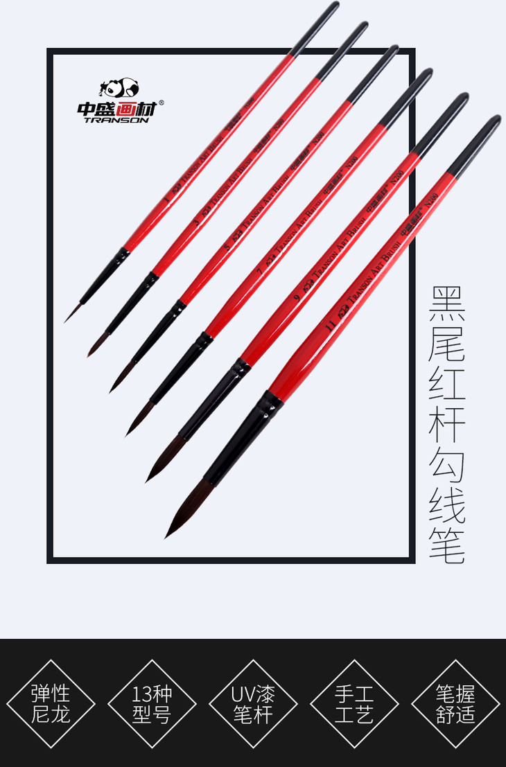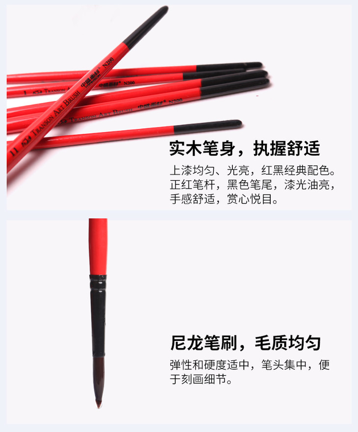 清仓-243号 中盛画材 N200红杆黑尾勾边笔 描边/钩边笔 水粉笔/水彩笔