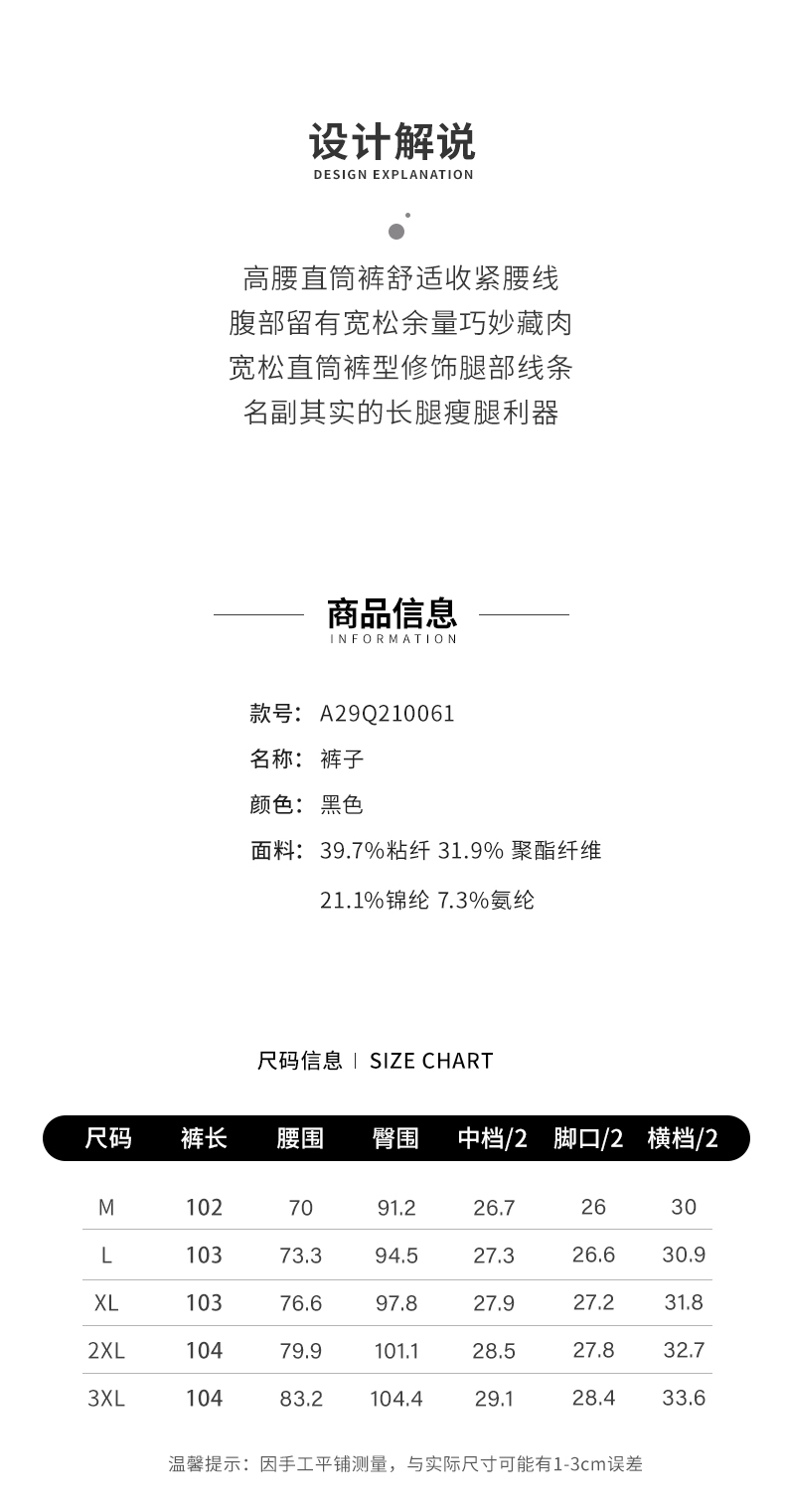 【商场同款】阿菁娜2024秋季新款高腰宽松显瘦直筒裤A29Q210061