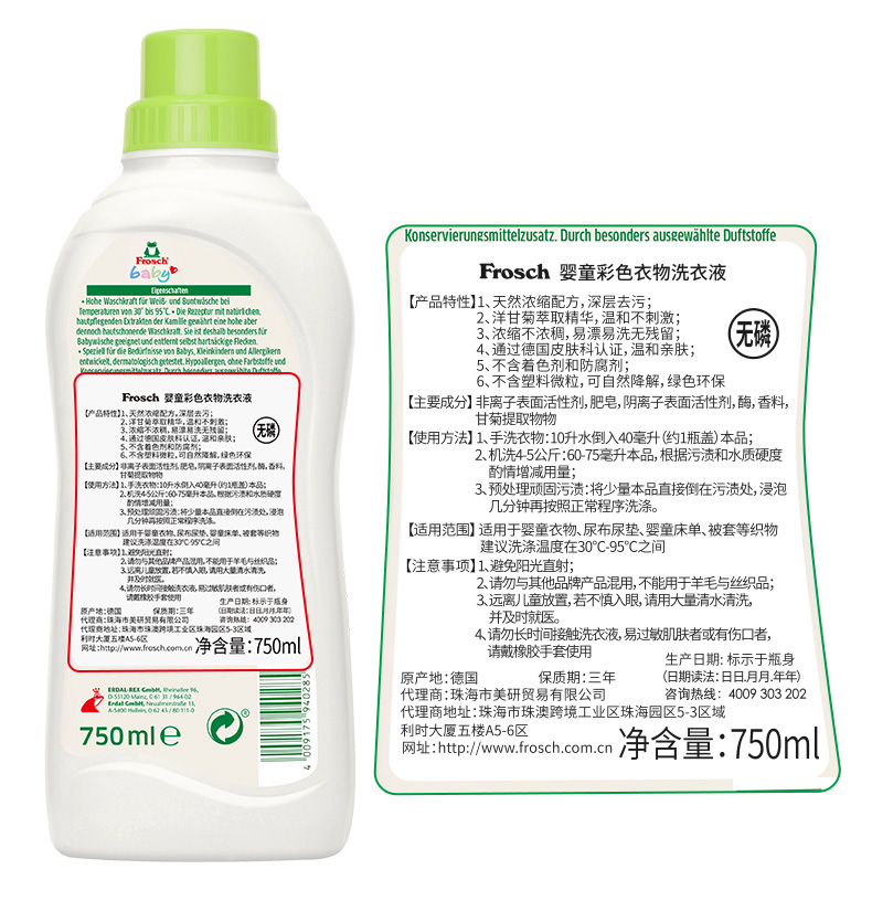 Frosch 婴童洗衣液 750ml+餐具洗洁液 500ml【伊藤优选302209】