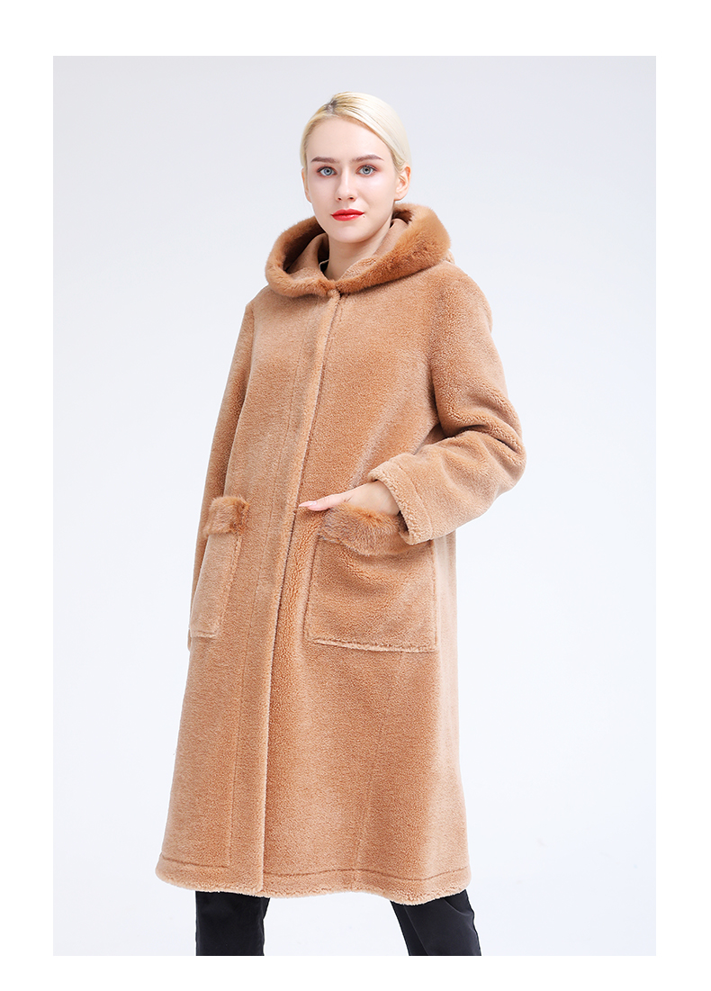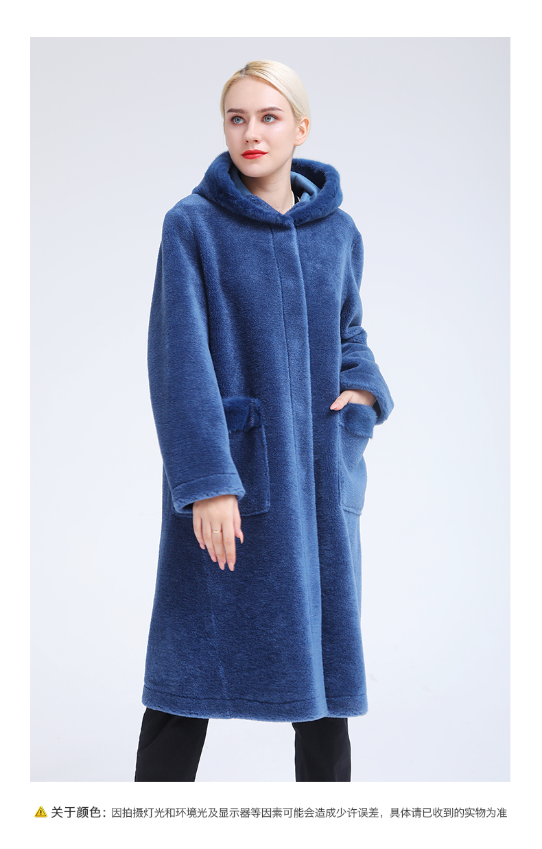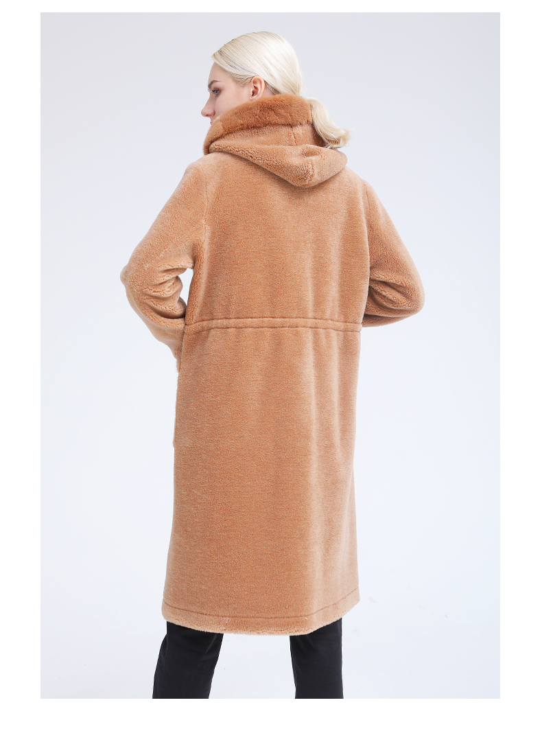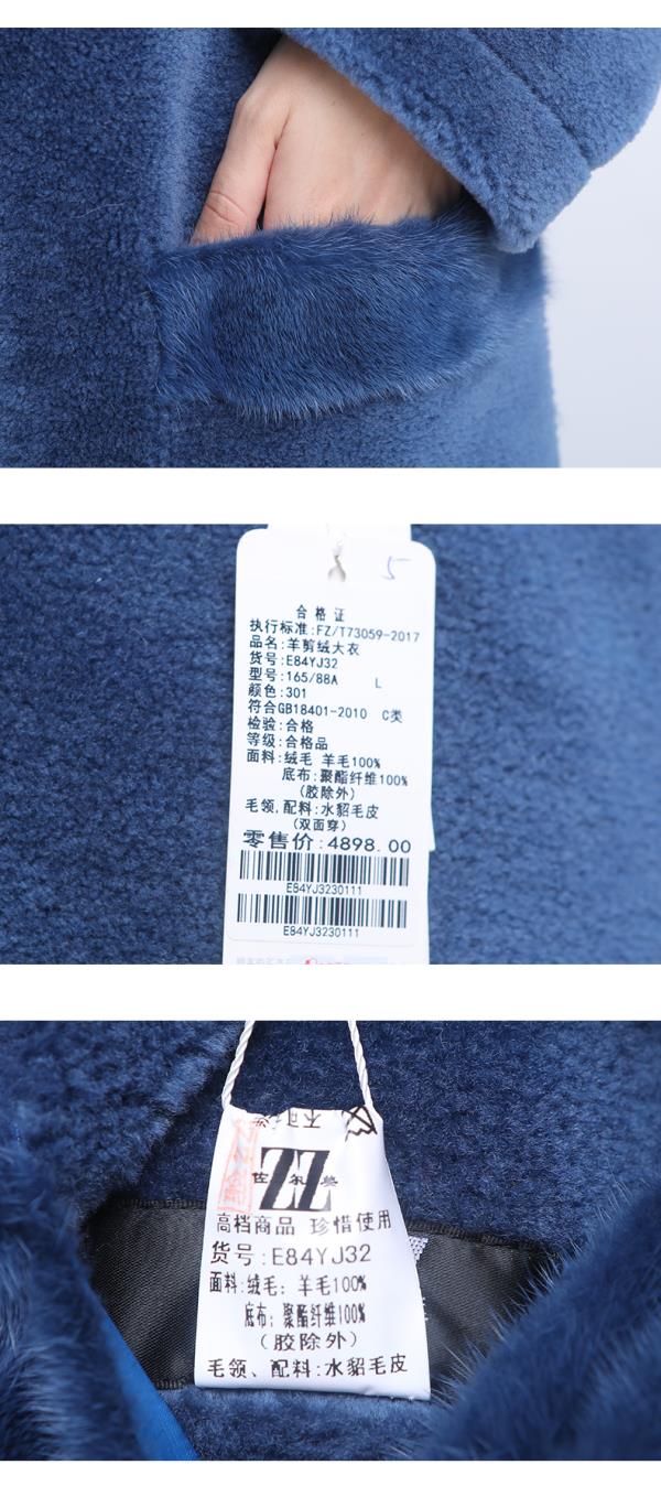 佐尔美冬季新款气质简约潮流纯色连帽羊剪绒大衣E84YJ32
