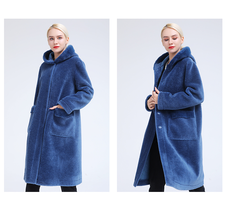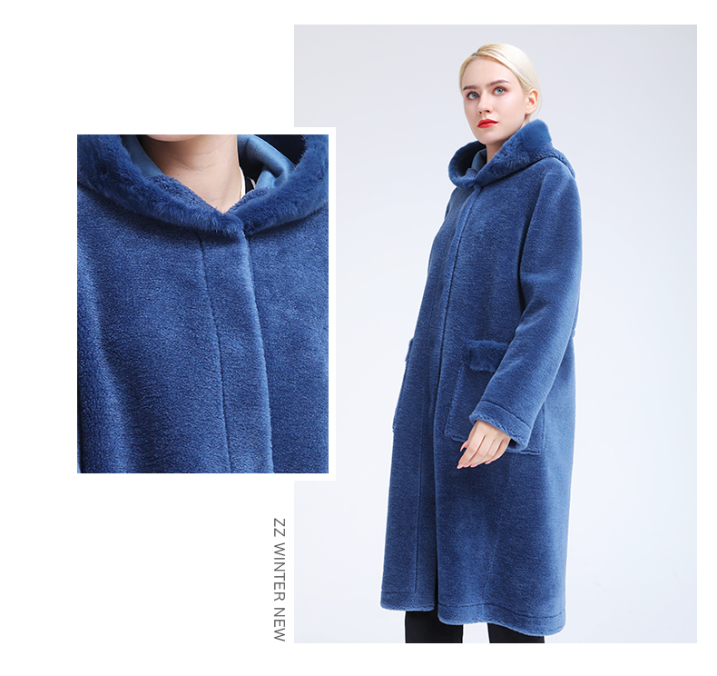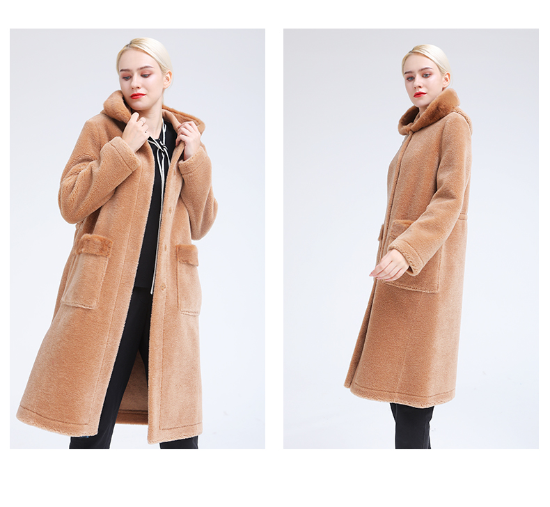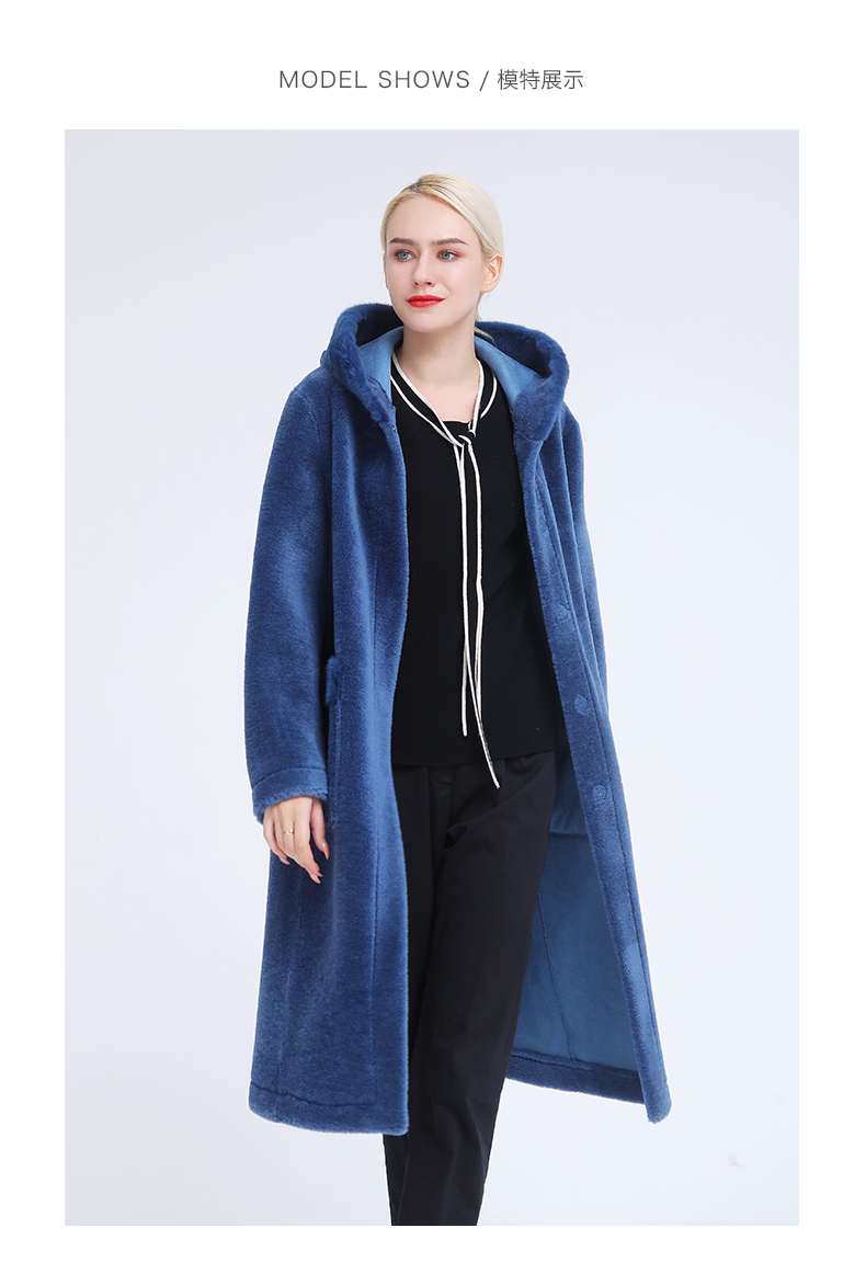 佐尔美冬季新款气质简约潮流纯色连帽羊剪绒大衣E84YJ32