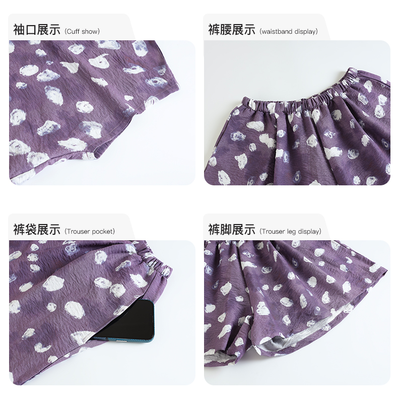 可人儿夏季花朵睡衣女夏天冰丝短袖可外穿仿真丝薄款家居服三件套