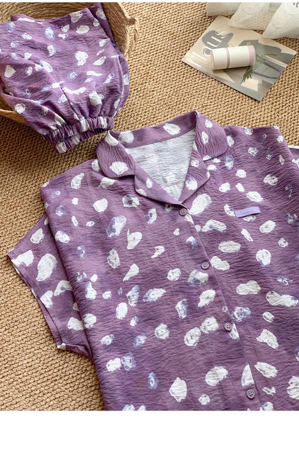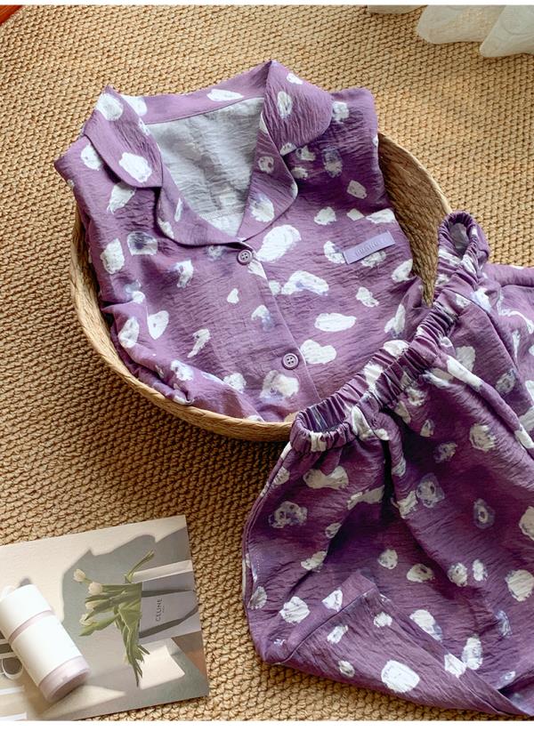可人儿小众设计师新款泡泡绵女士睡衣夏季短袖可外出家居服三件套