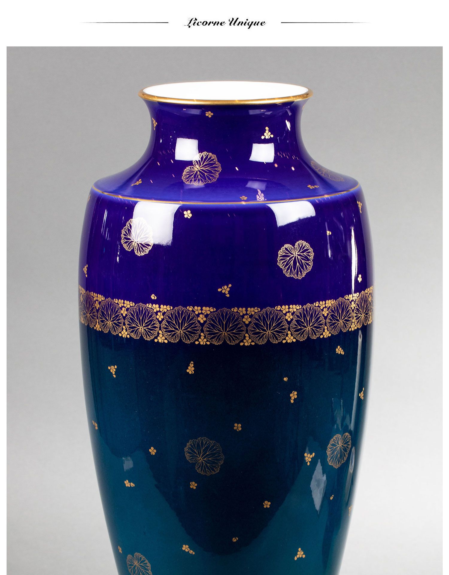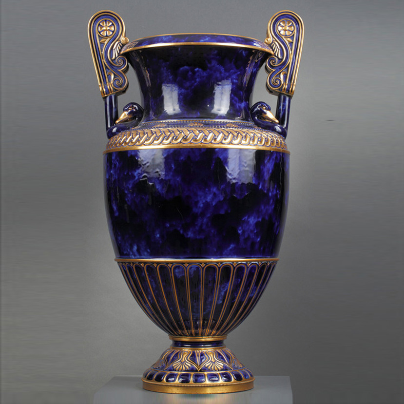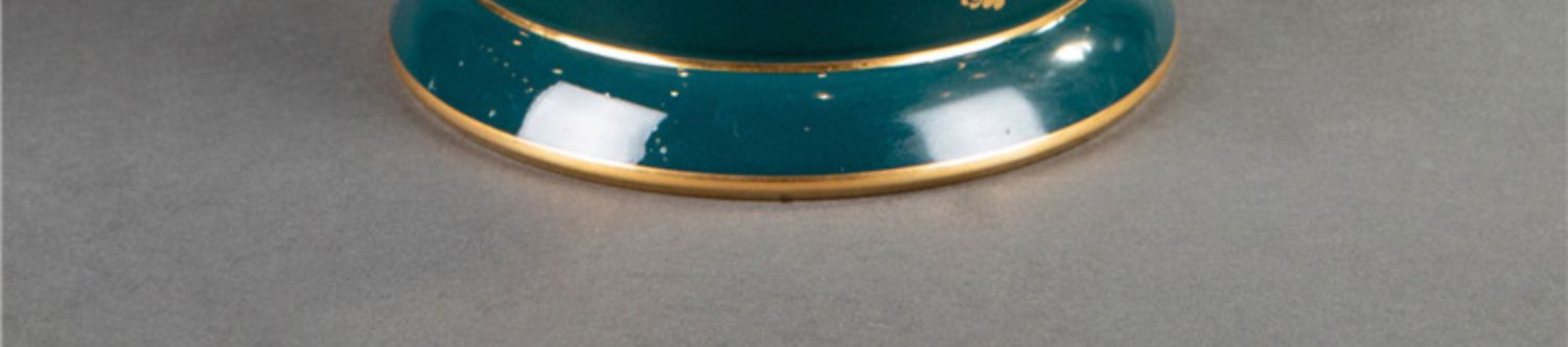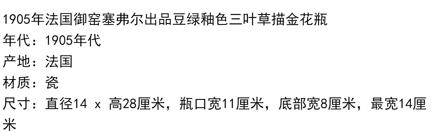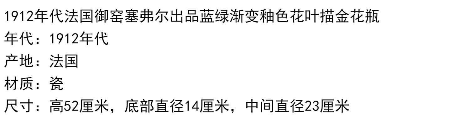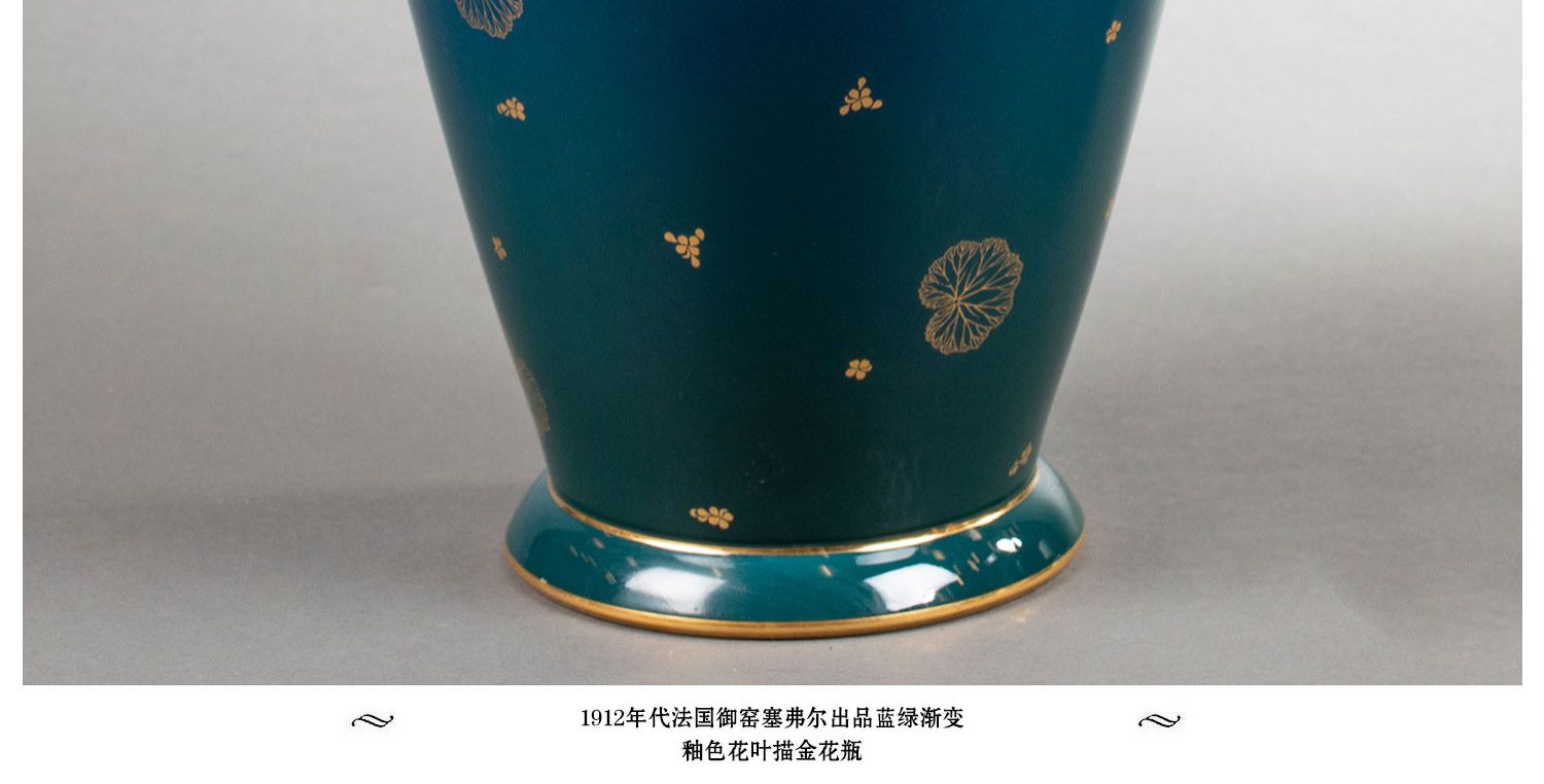 独角鹿西洋古董法国塞弗尔瓷器蓝绿渐变釉色花叶描金花瓶瓷瓶