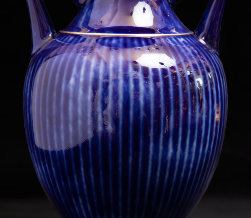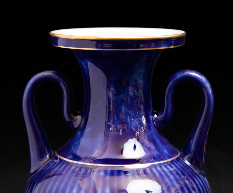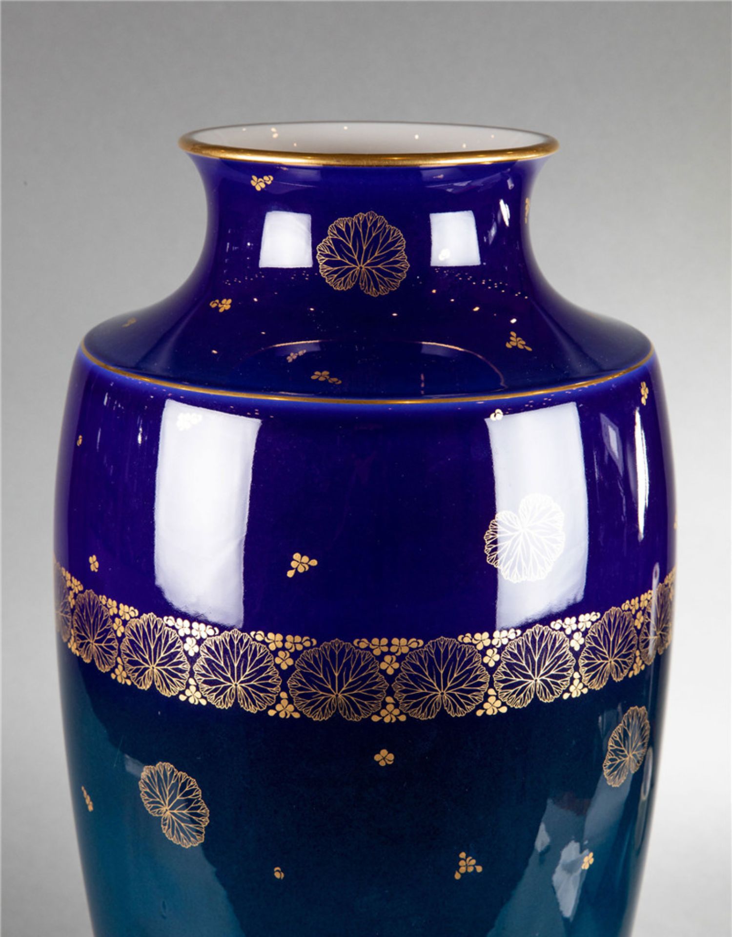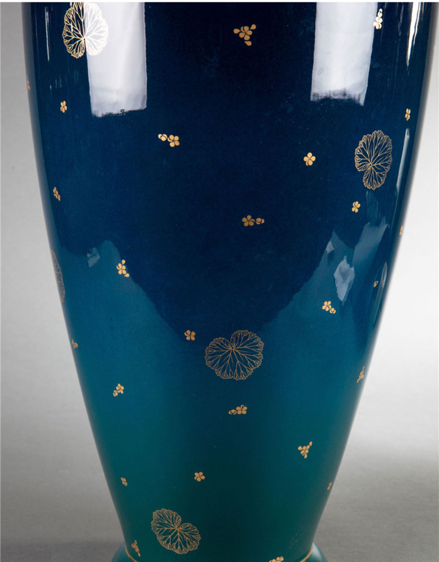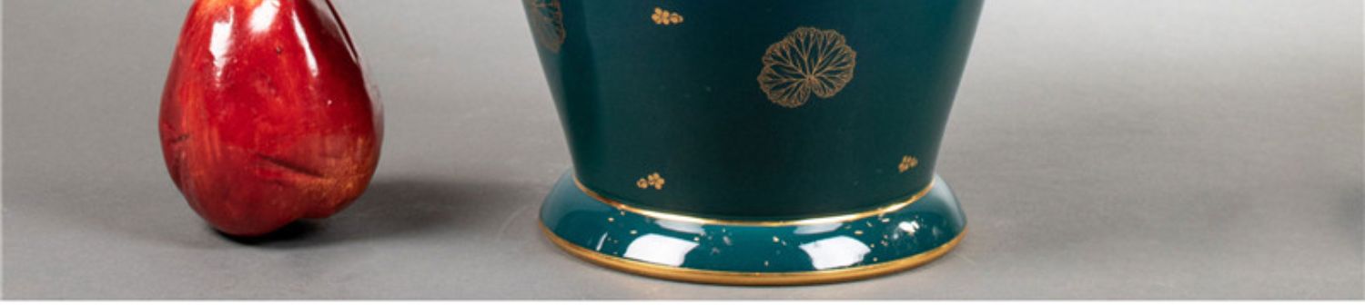 独角鹿西洋古董法国塞弗尔瓷器蓝绿渐变釉色花叶描金花瓶瓷瓶