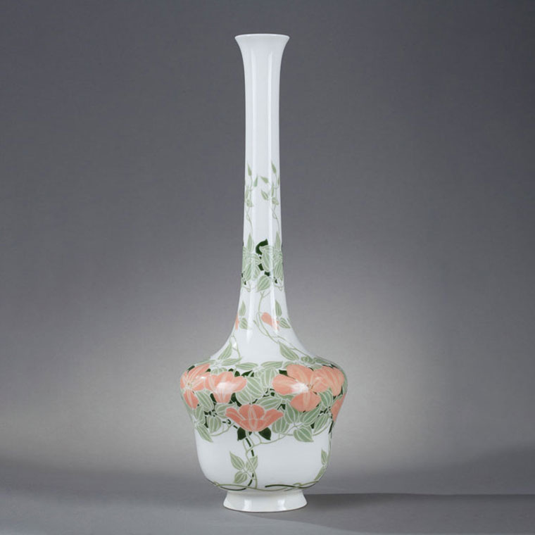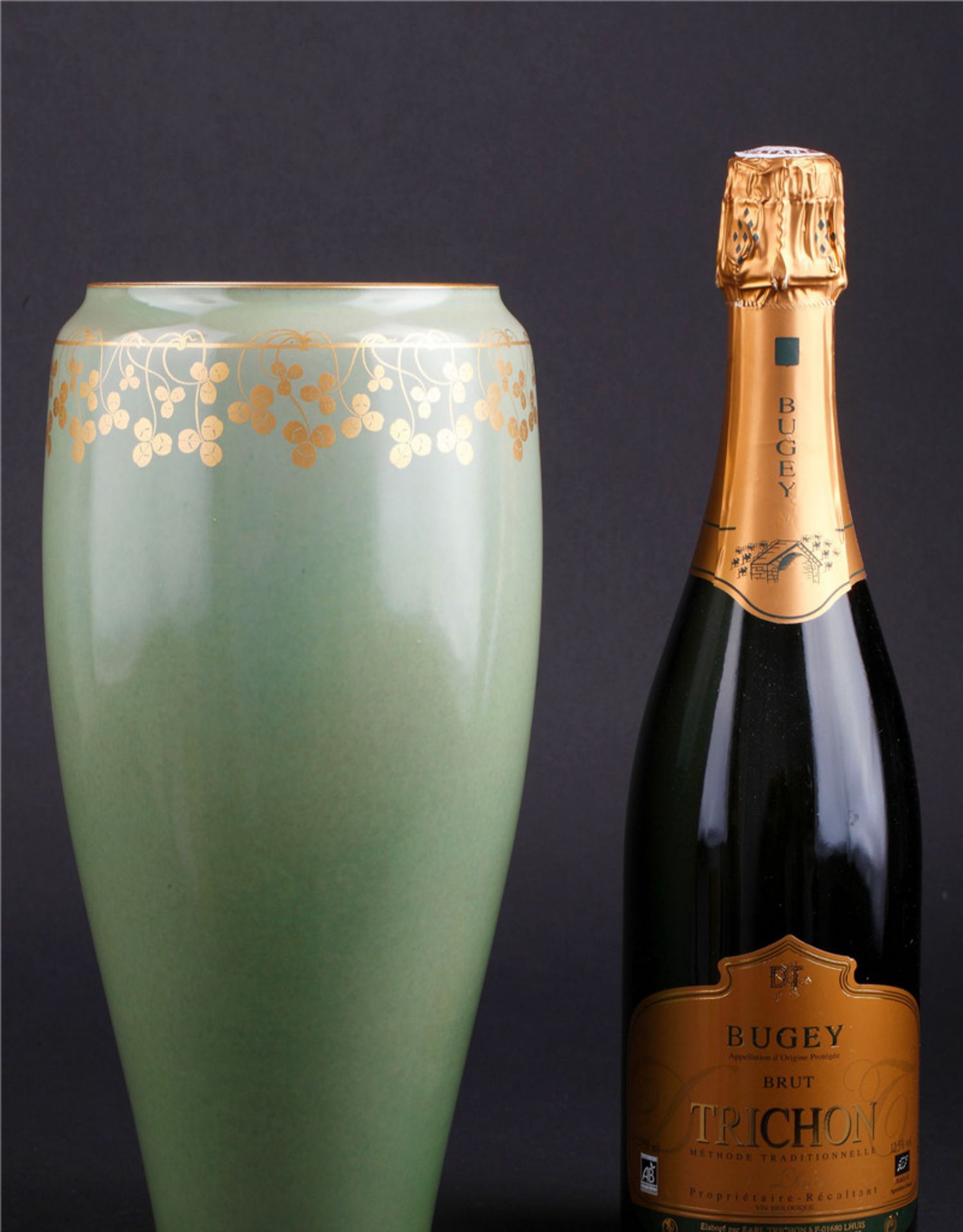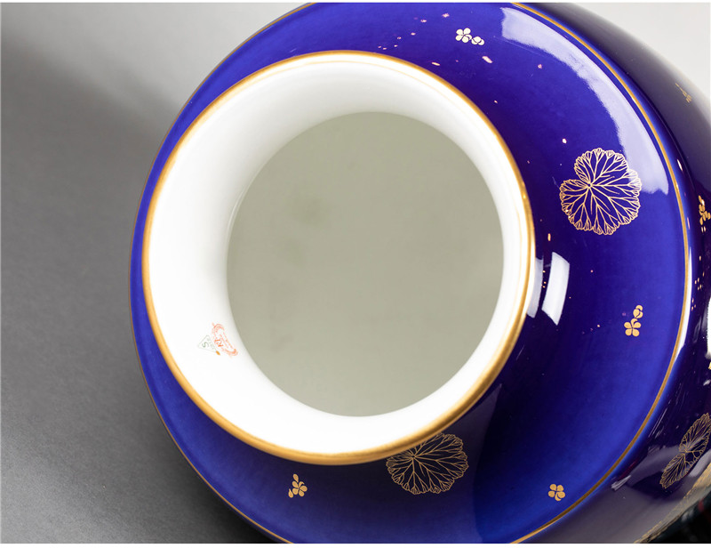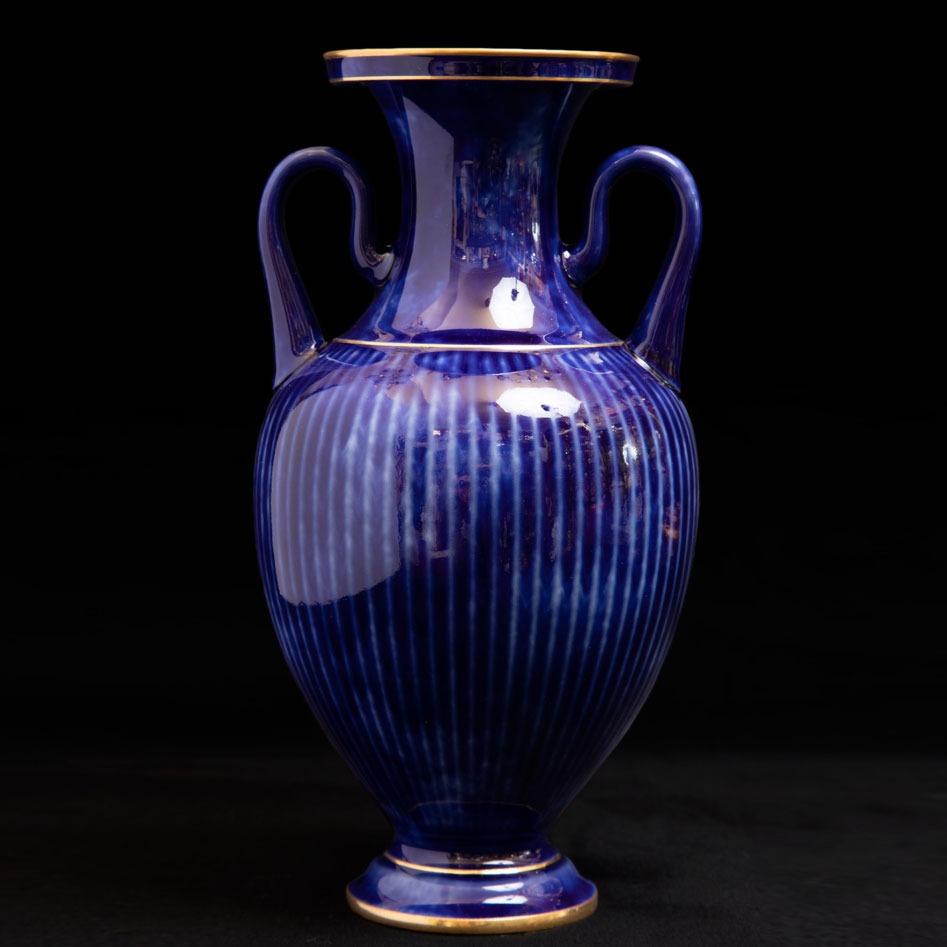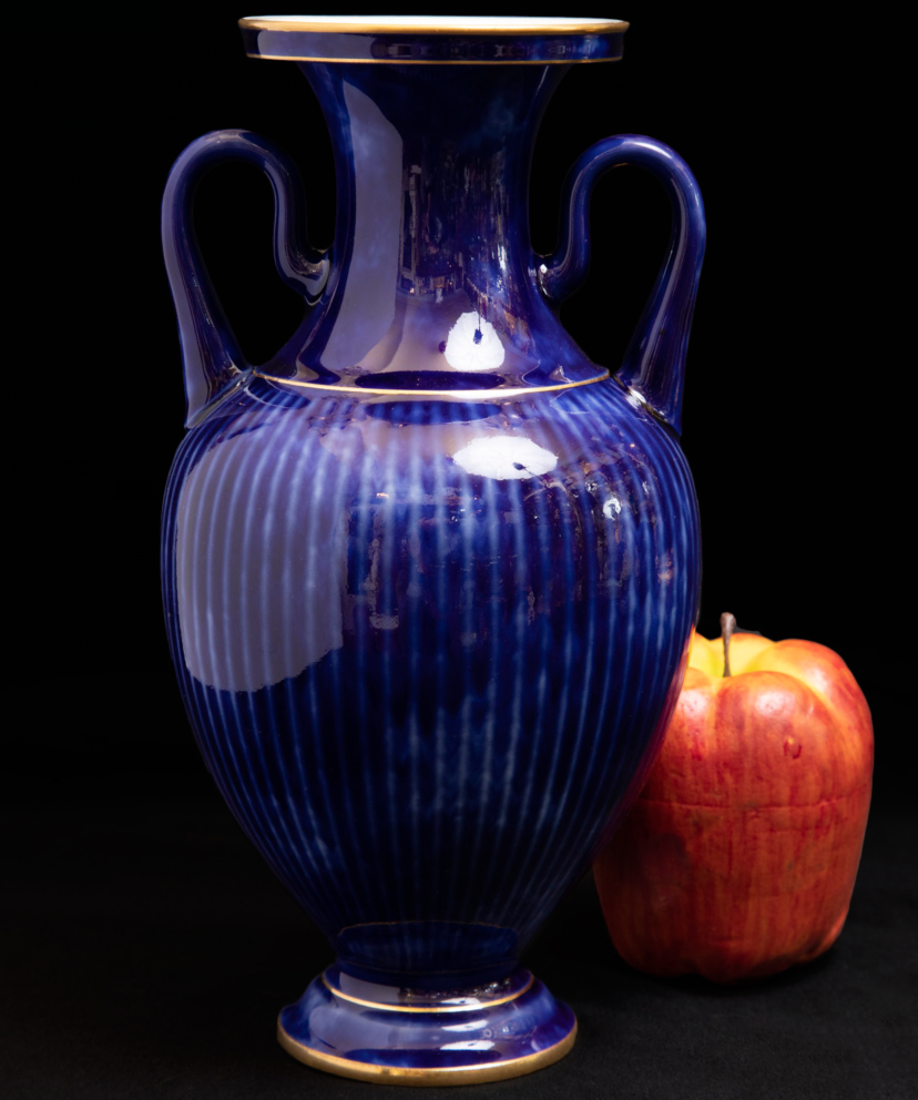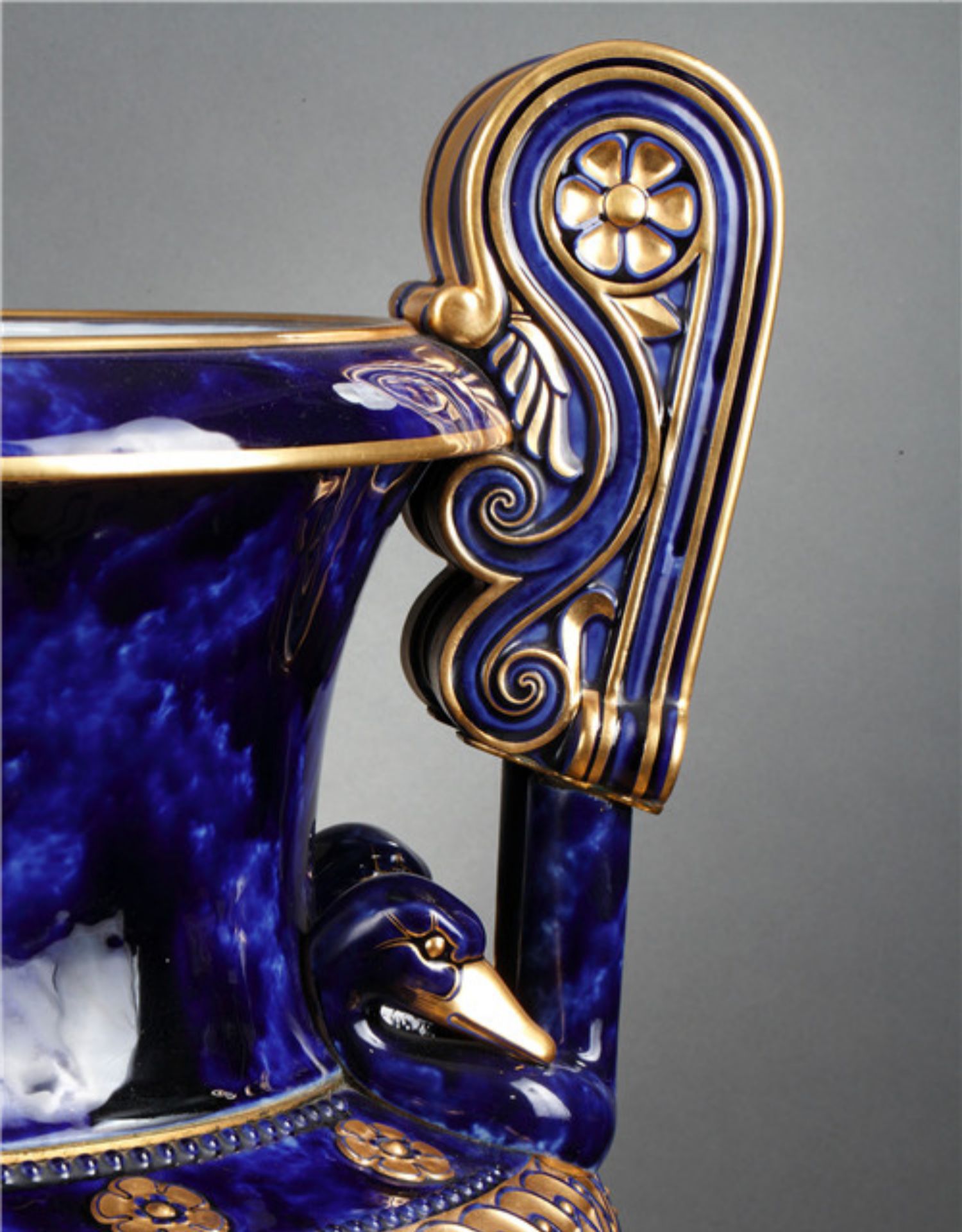 独角鹿西洋古董法国塞弗尔瓷器蓝绿渐变釉色花叶描金花瓶瓷瓶
