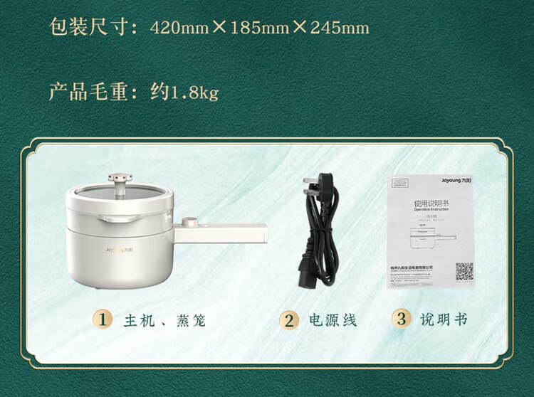 九阳 电火锅HG15-G622(带蒸笼)1.5L
