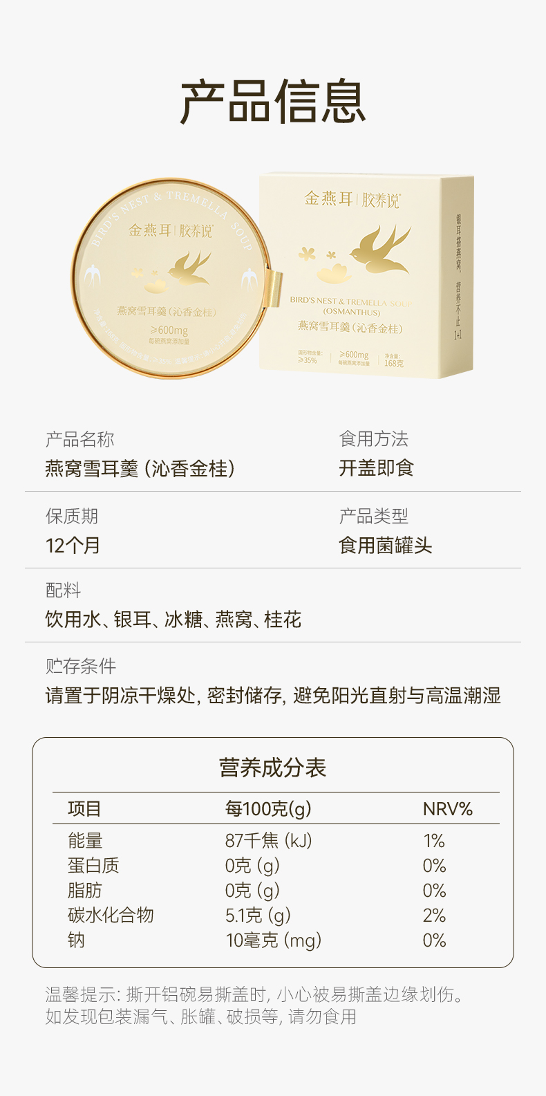 金燕耳 燕窝银耳羹(沁香金桂)168g/碗