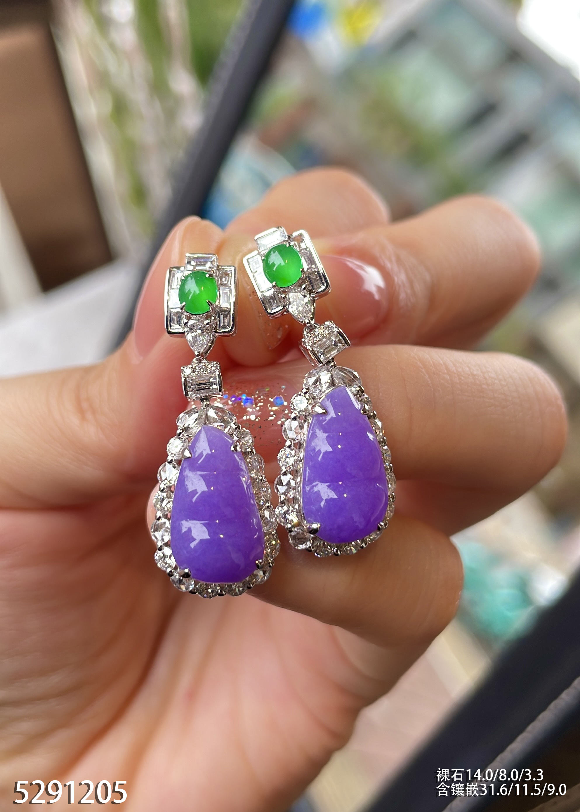 高冰种艳绿蛋面耳钉【6310503】具体价格微信咨询