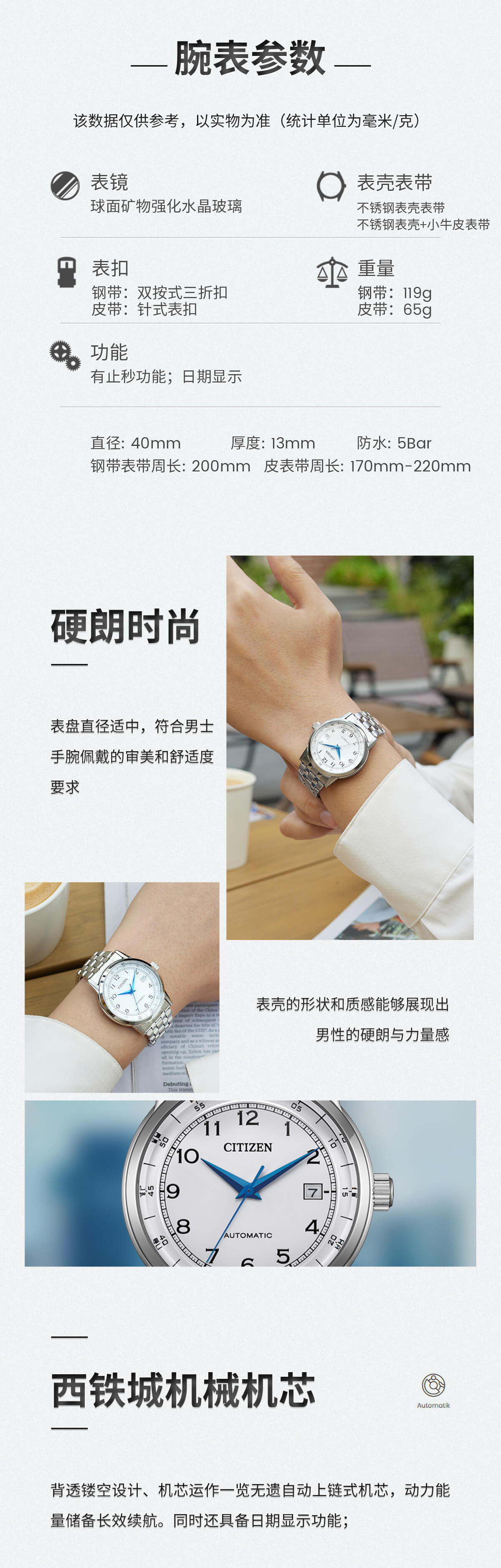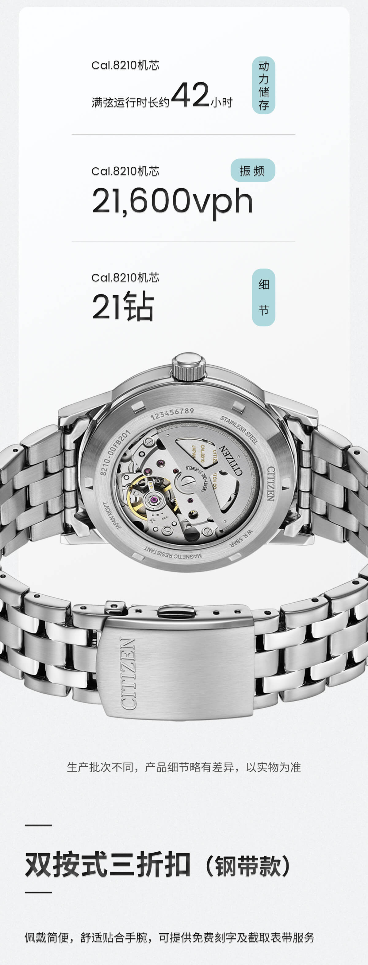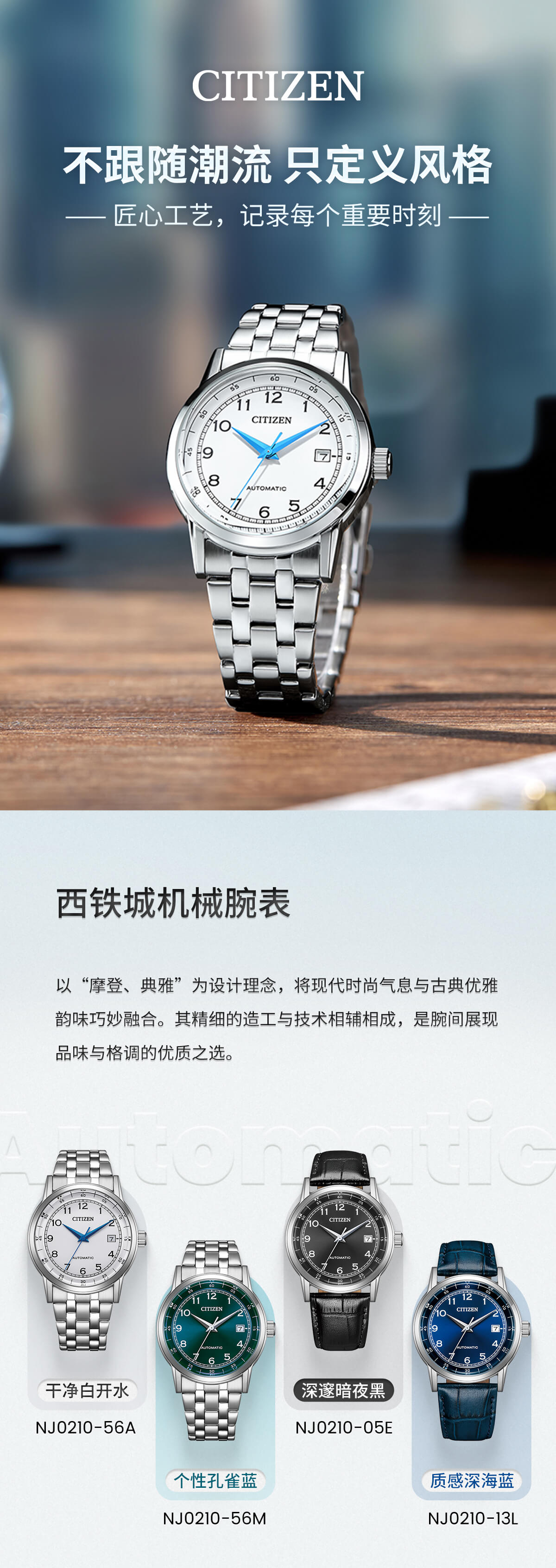 西铁城/CITIZEN机械机芯日历防水商务时尚男表NJ0210-13L