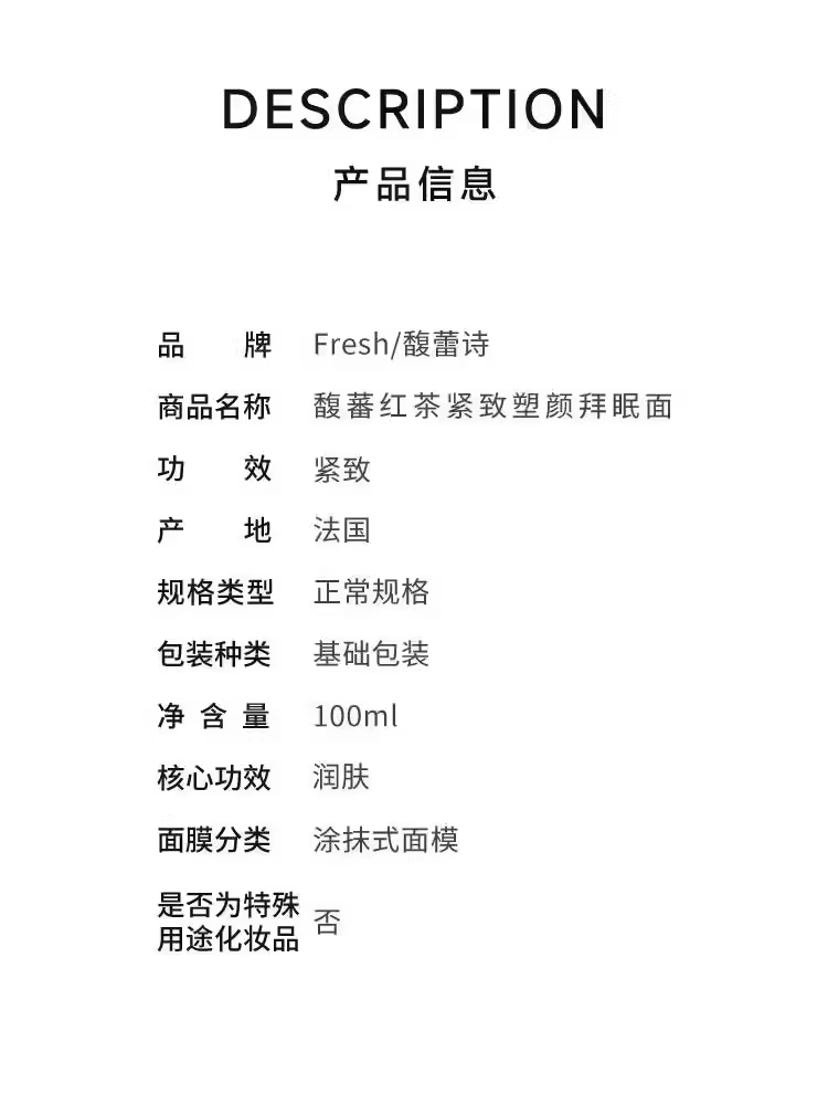 馥蕾诗红茶塑颜紧致修护睡眠面膜100ml