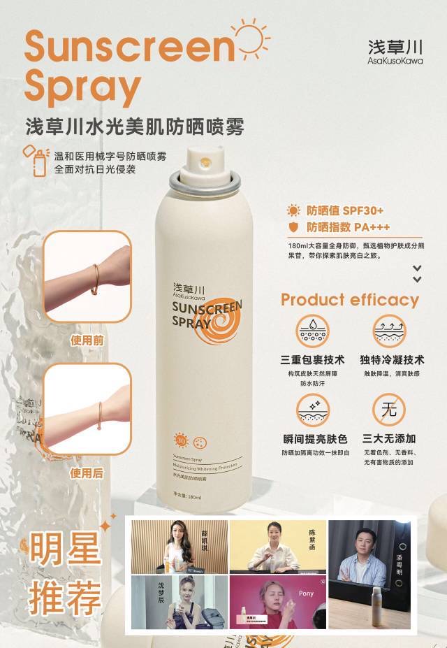【品牌直发/2022升级版】浅草川防晒喷雾美白/水晶防晒隔离防紫外线防晒美白润肤三合一180ml
