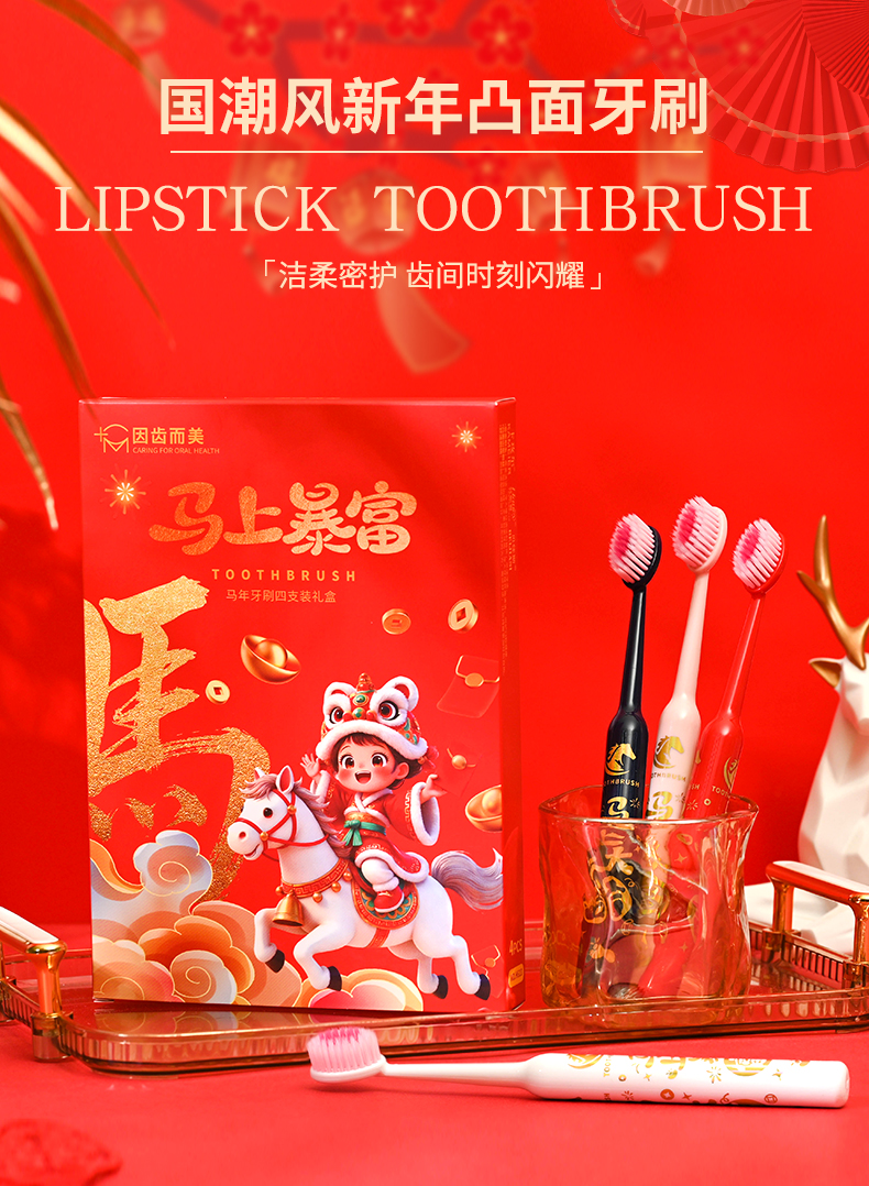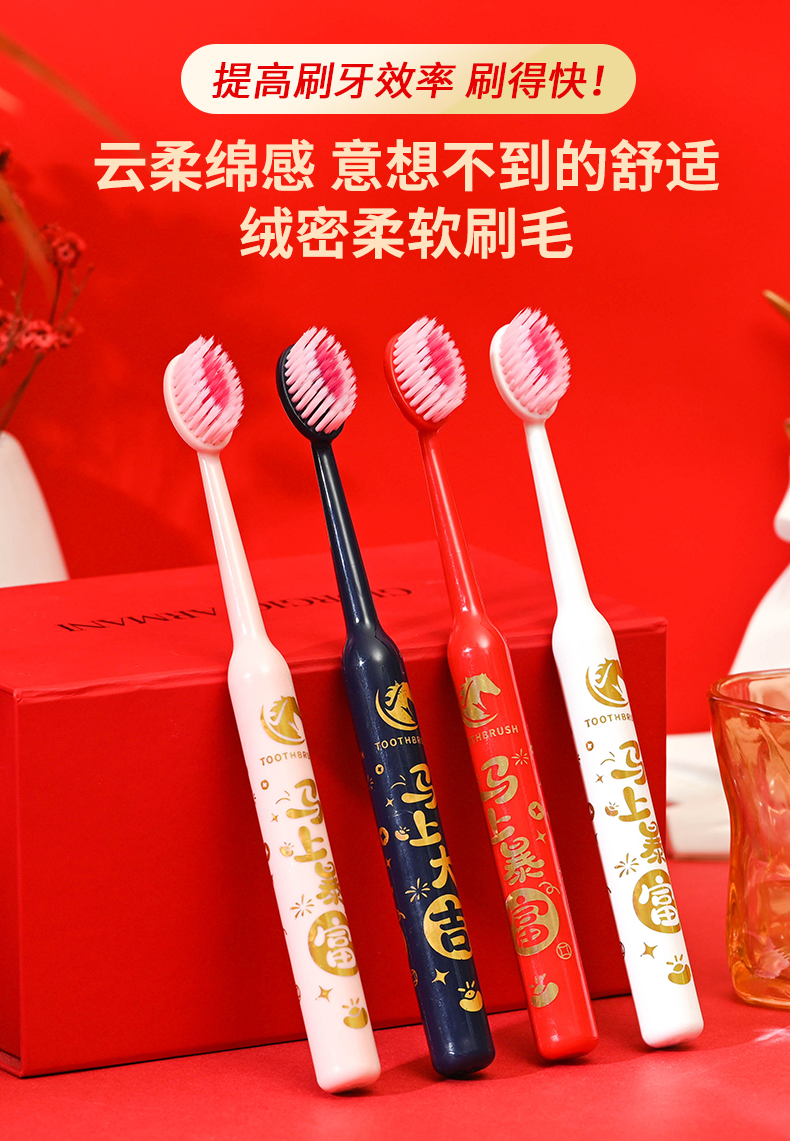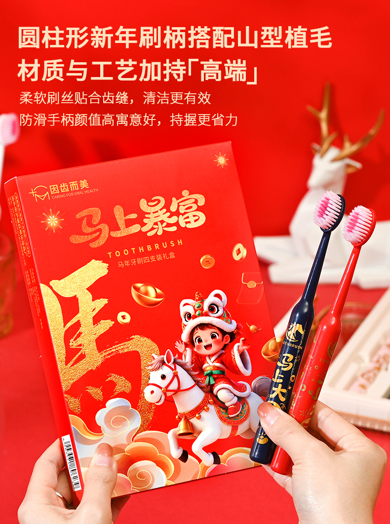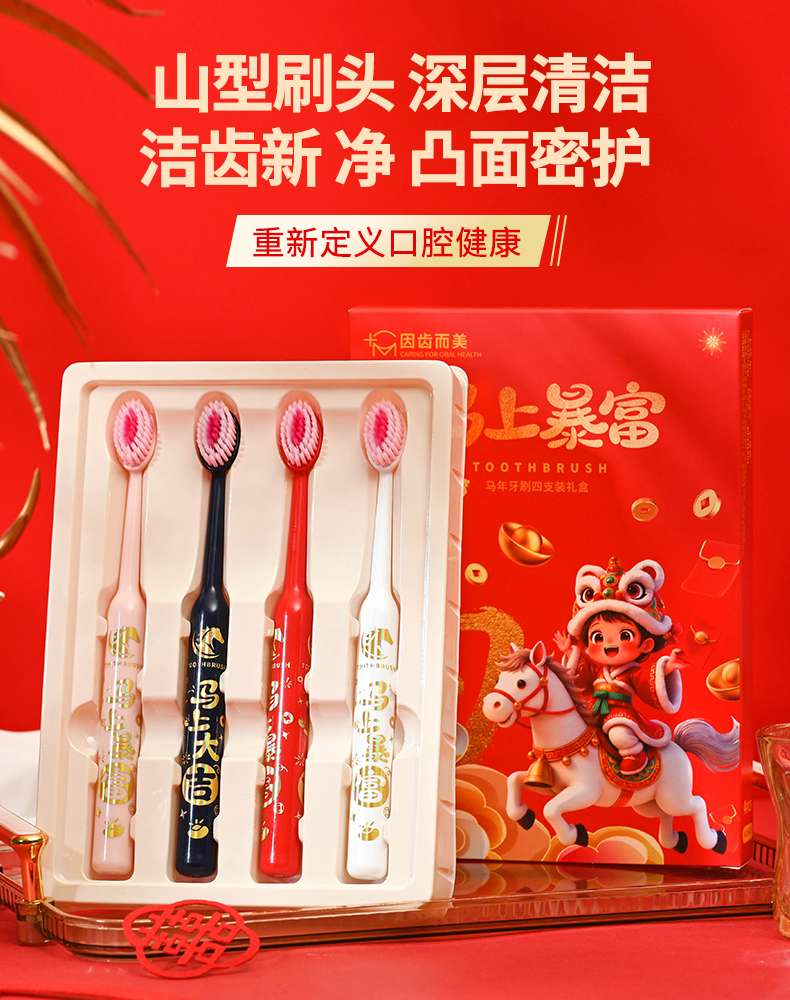 爆款!【小来】「9.9到手!马年限定礼盒」 新年款喜庆凸面软毛牙刷高效洁齿护龈成人家用口腔护理