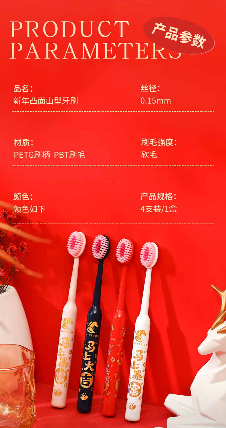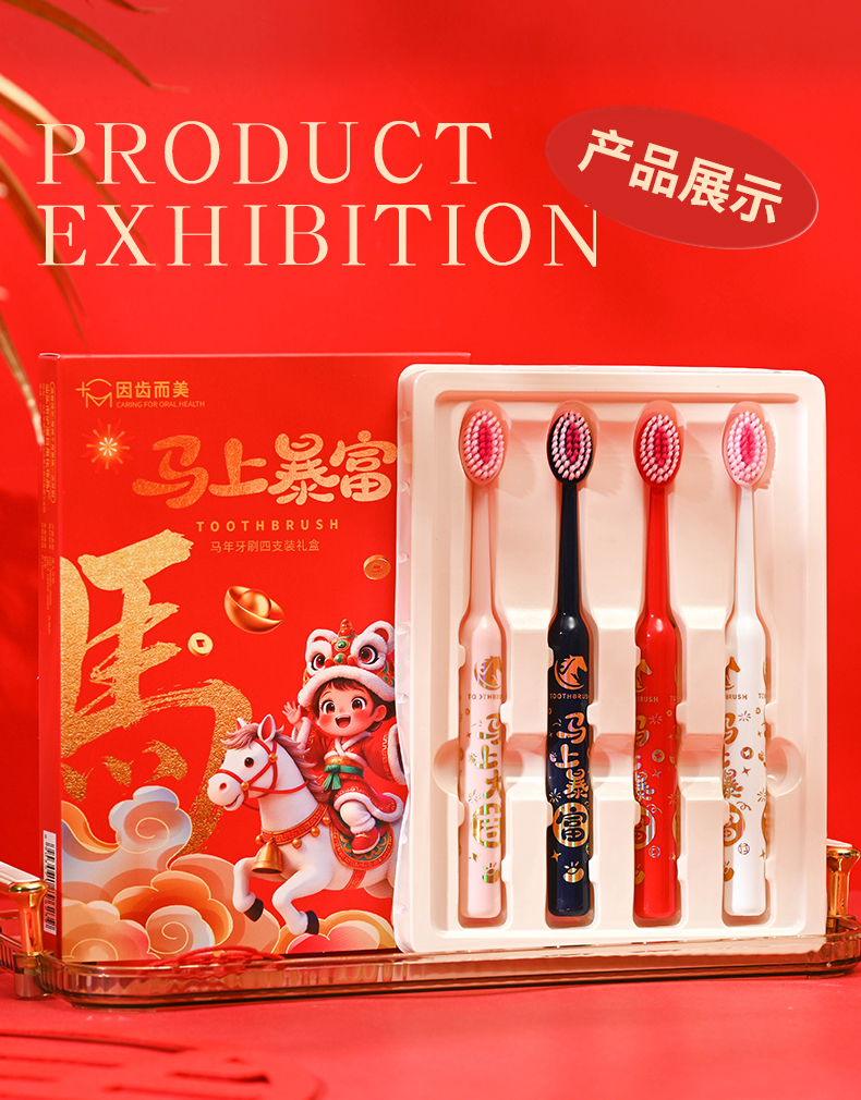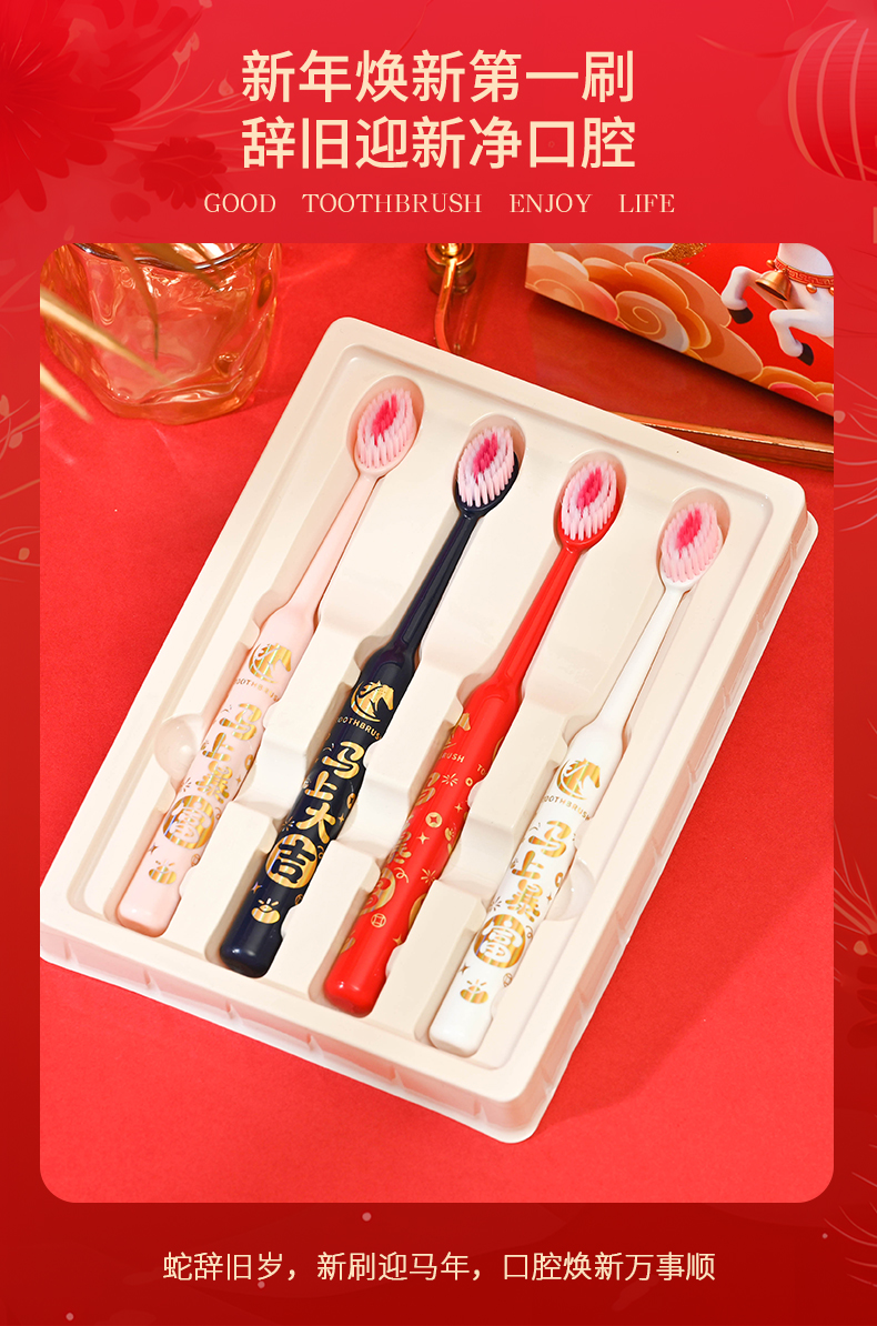 爆款!【小来】「9.9到手!马年限定礼盒」 新年款喜庆凸面软毛牙刷高效洁齿护龈成人家用口腔护理