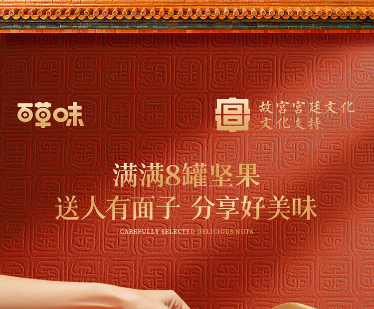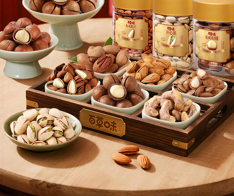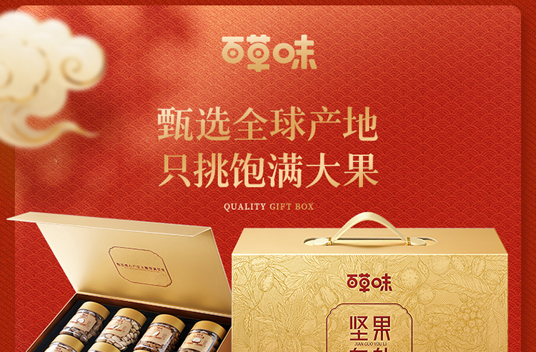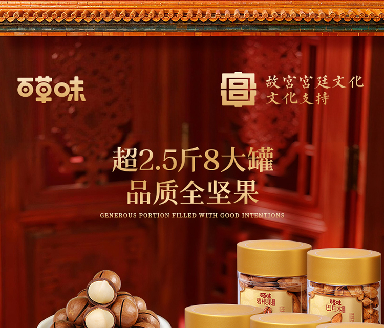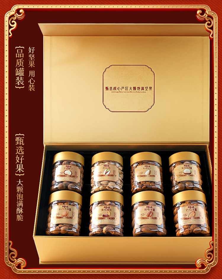 【百草味】罐装坚果零食礼盒E1-1390g(坚果有礼-精装罐装)鎏金礼