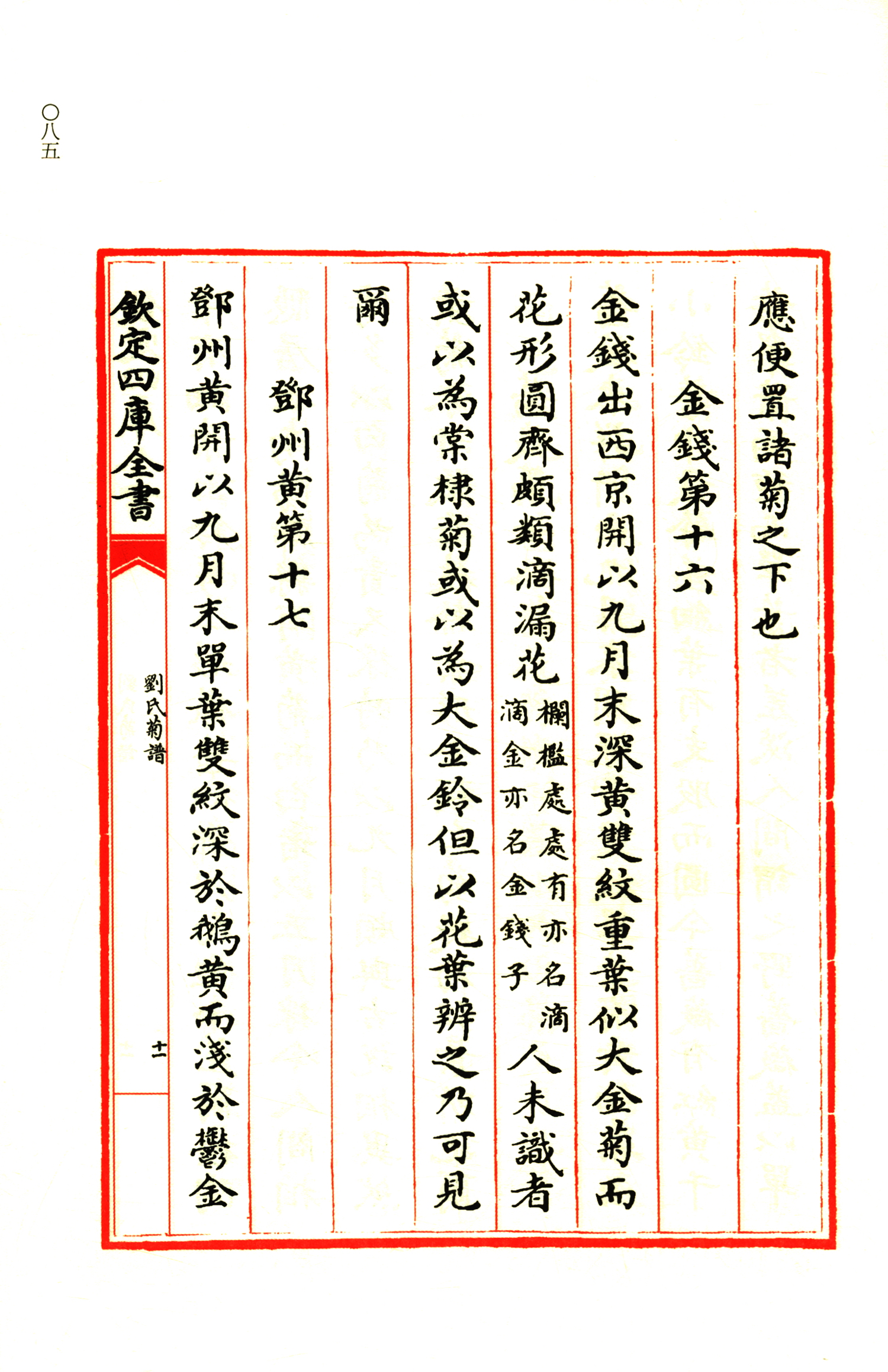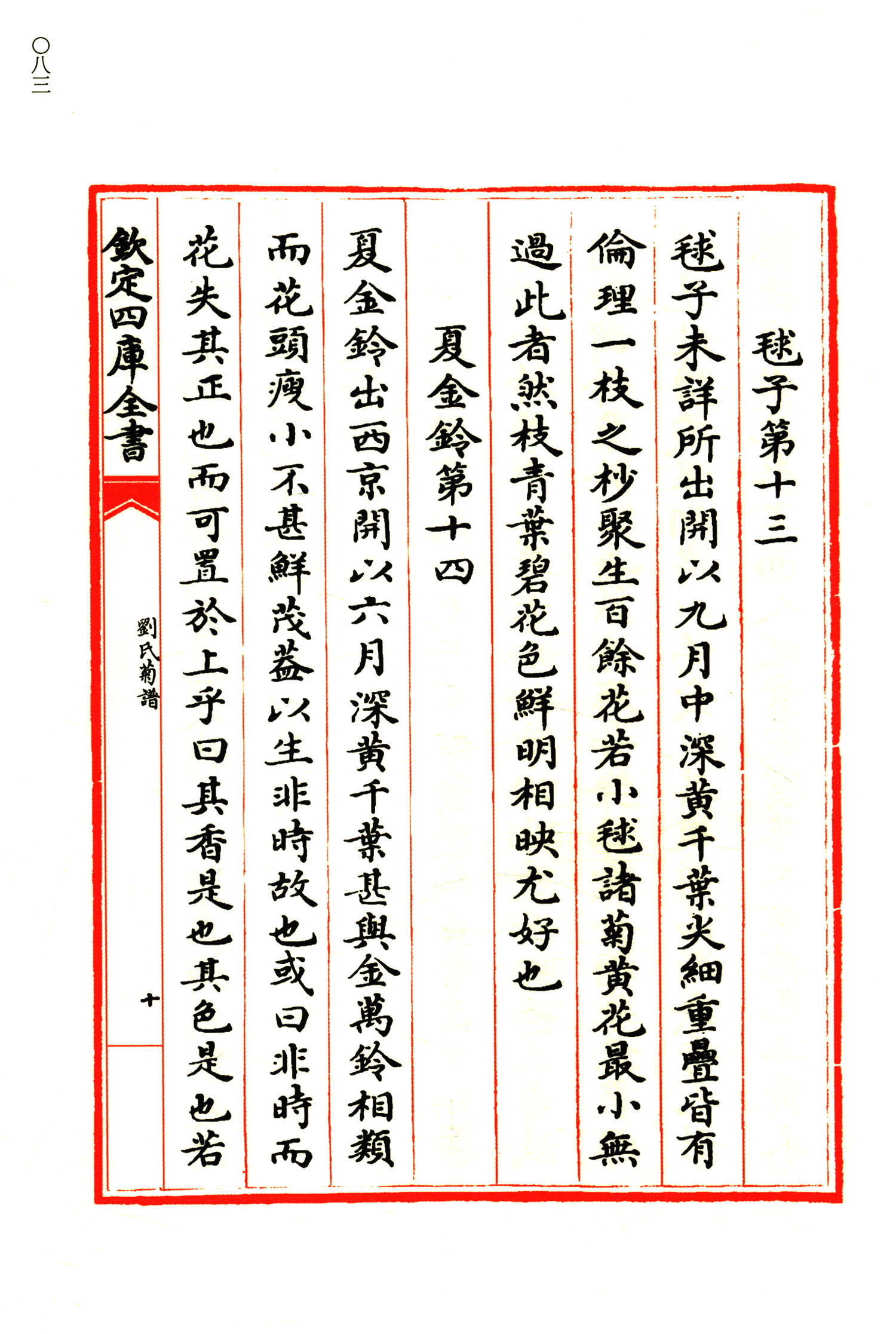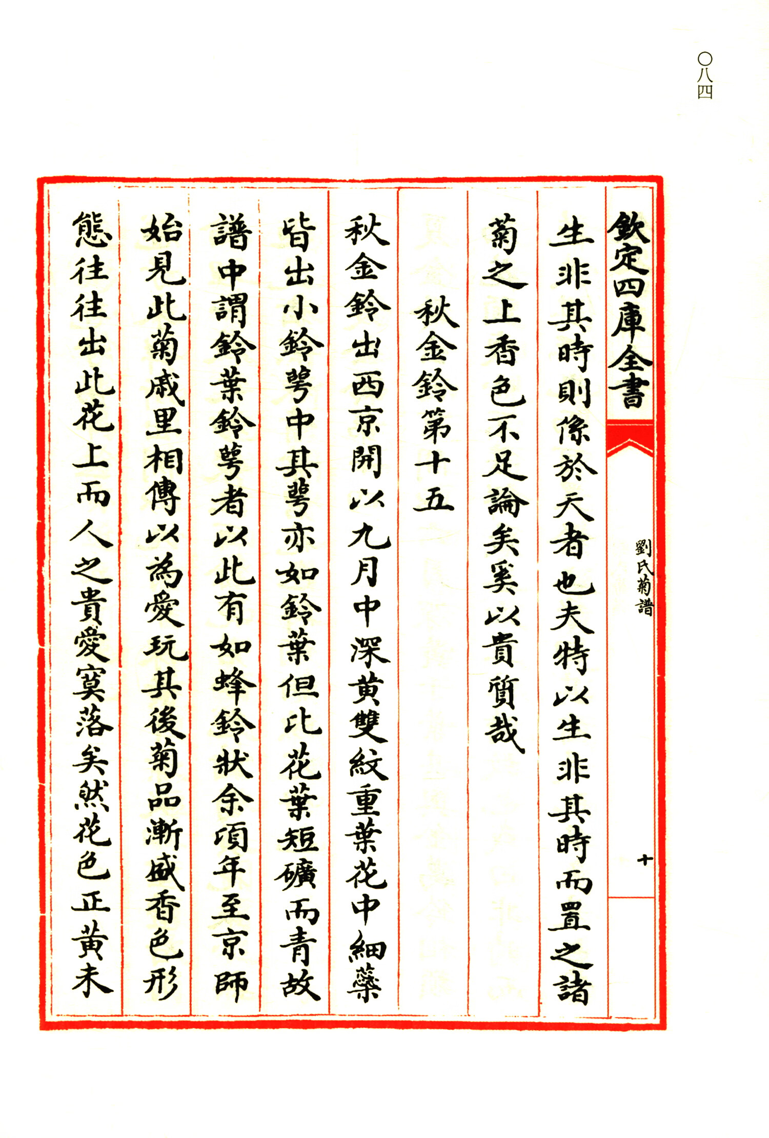 《刘氏菊谱》是我国一部菊谱,也是世界一部艺菊专著。该书依颜色将菊花分类,以黄为正,其次为白,再次为紫,而后为红。全书共记载菊花三十五个品种,另附闻而未见的四个品种以及两个野生品种。书中记菊,形色之外,兼载产地。