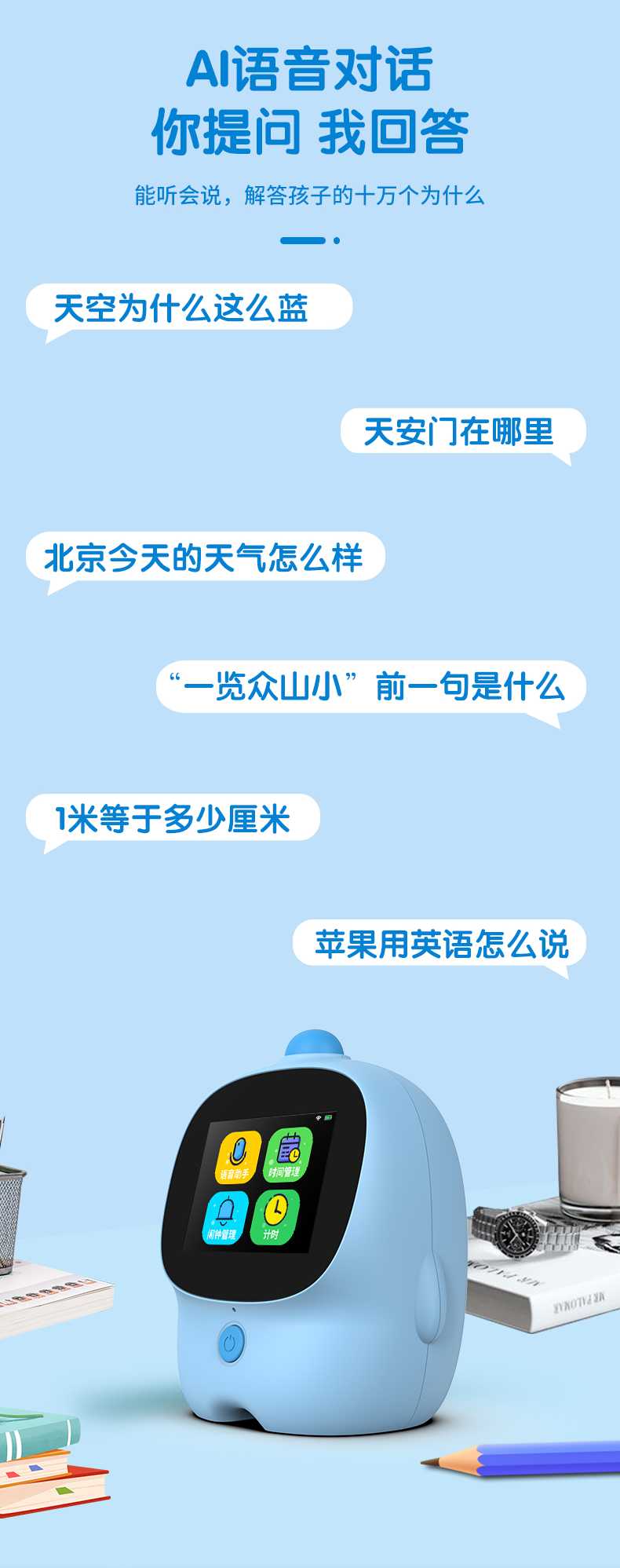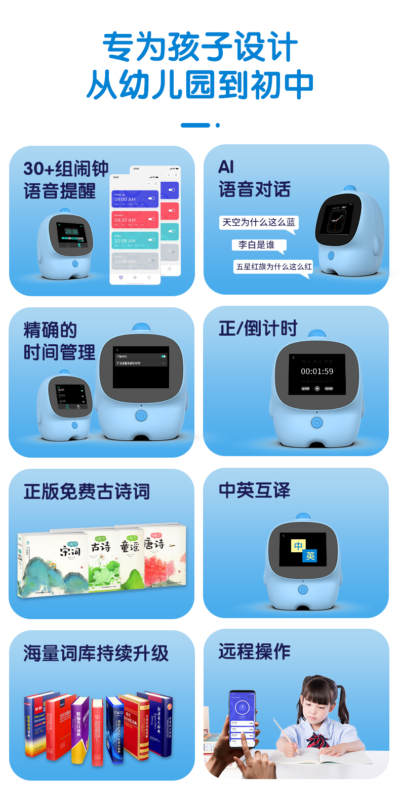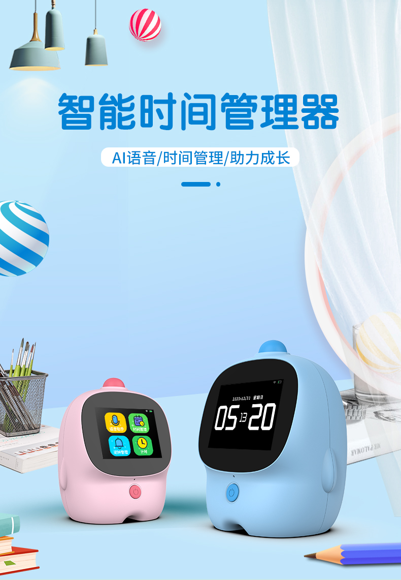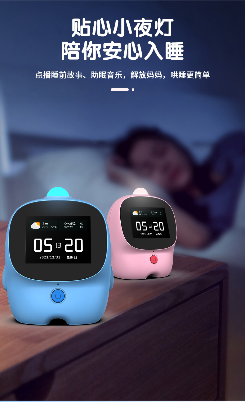 智能闹钟儿童多功能男孩女孩学生用叫醒语音控制卡通闹铃钟表时钟