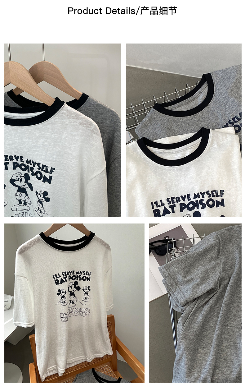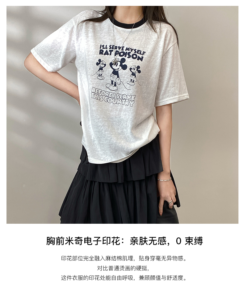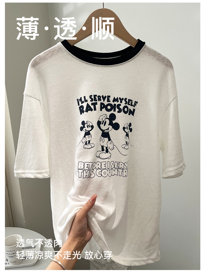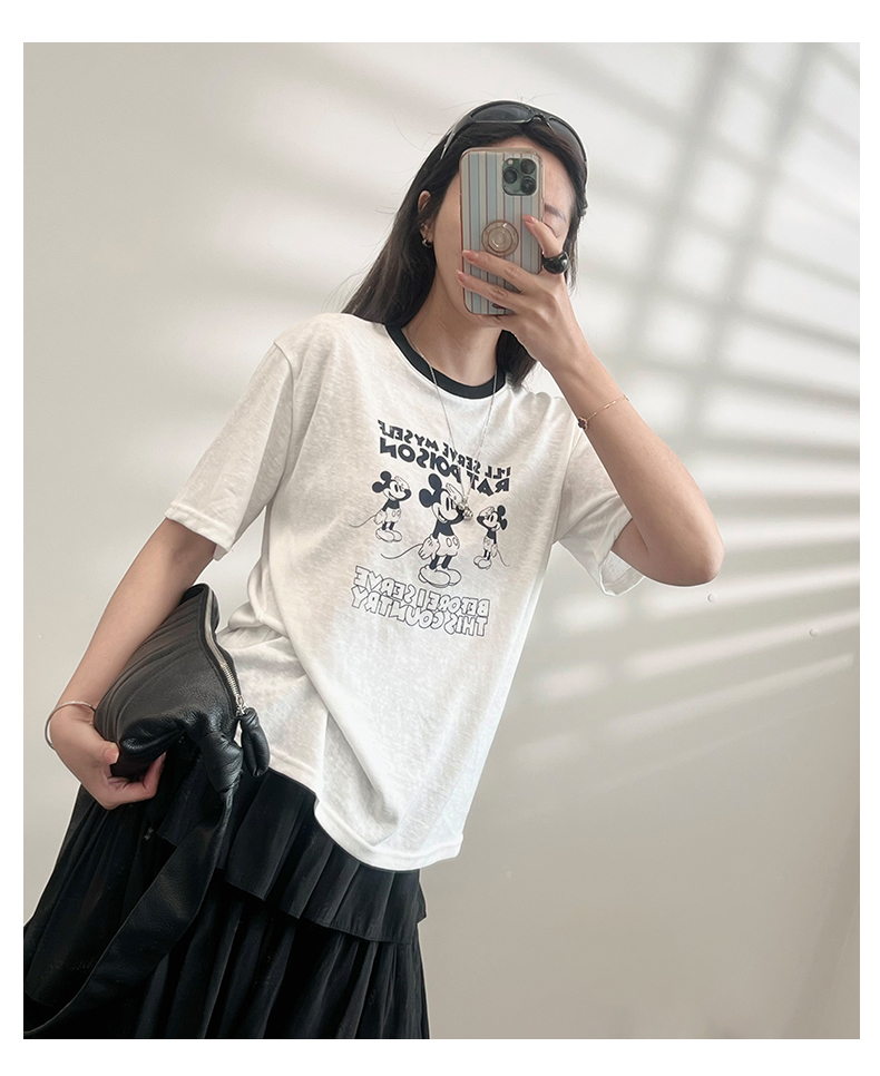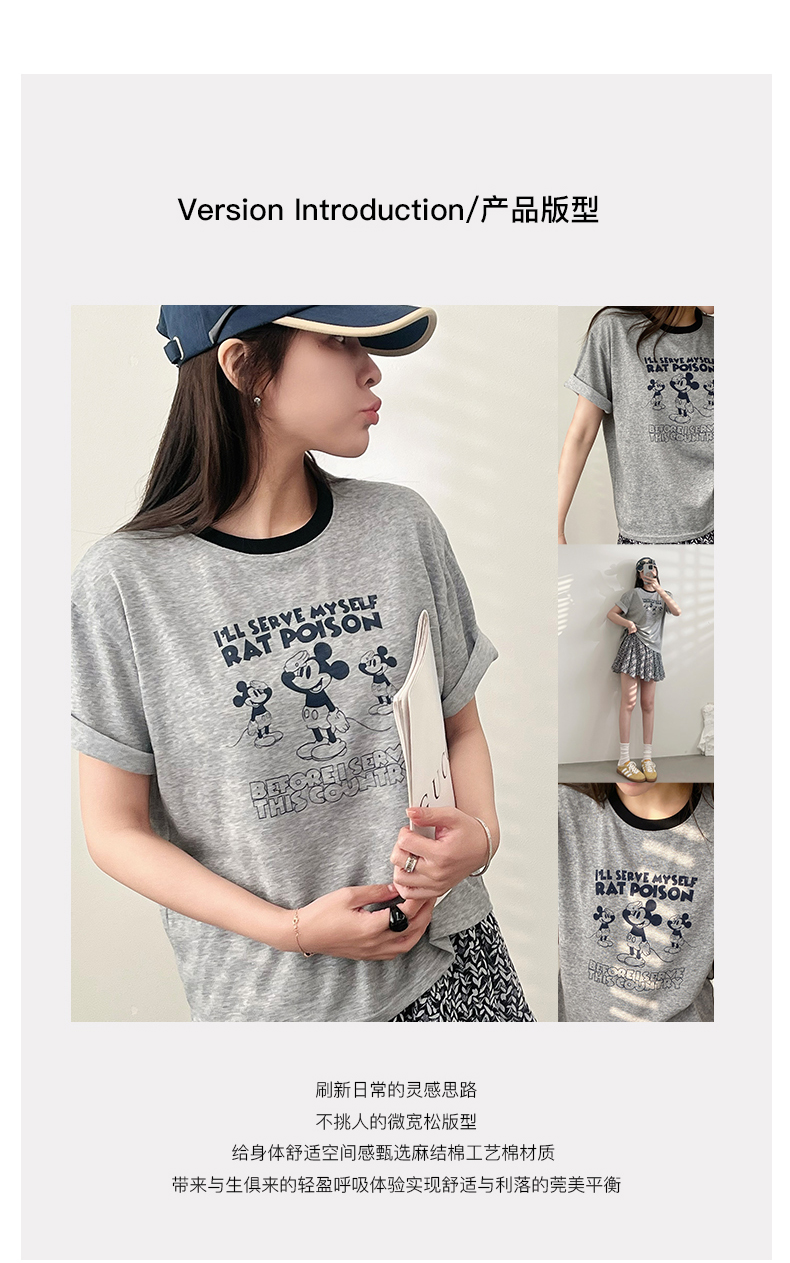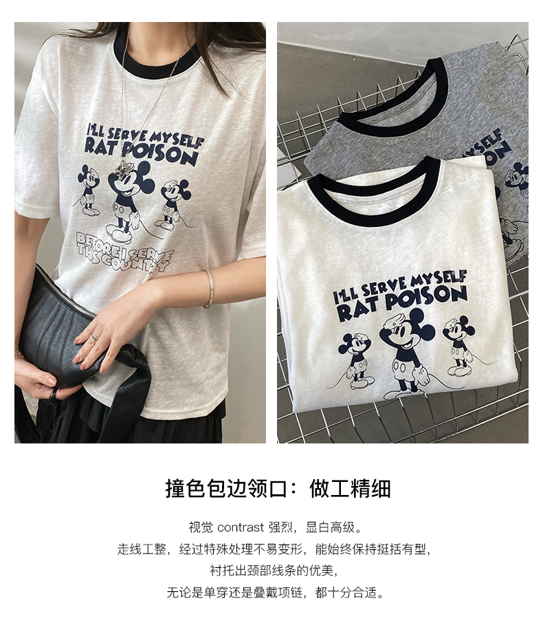 韩系撞色领口米奇T,又甜又酷🆒,穿出春夏慵懒,舒服。有棉麻的质感,透气亲肤