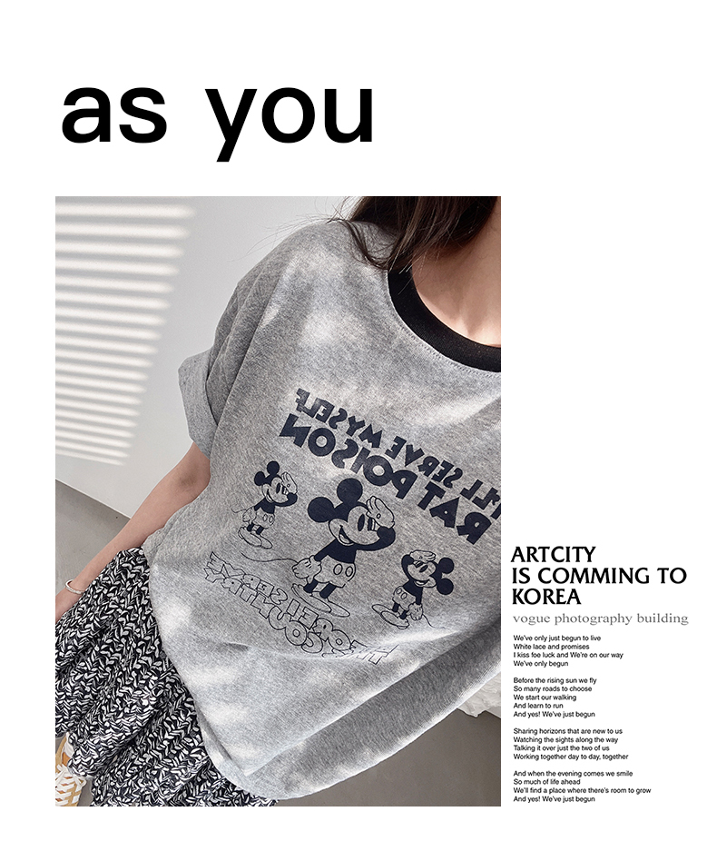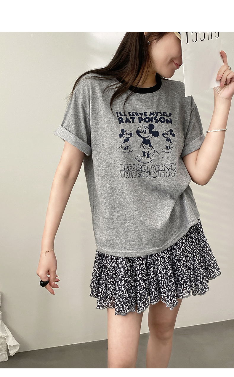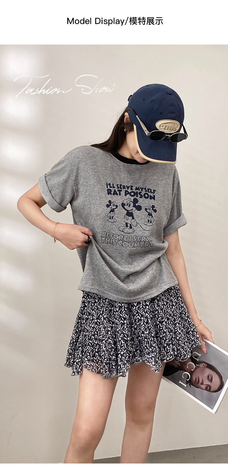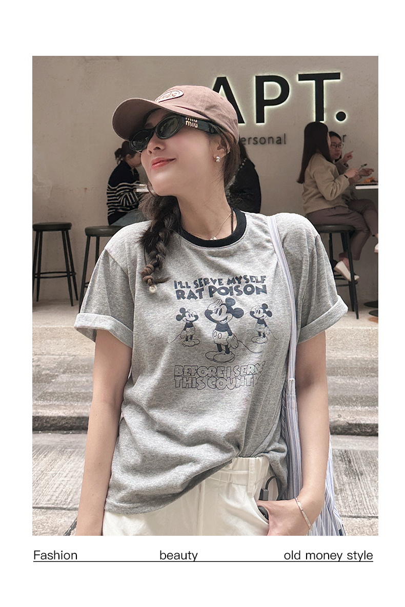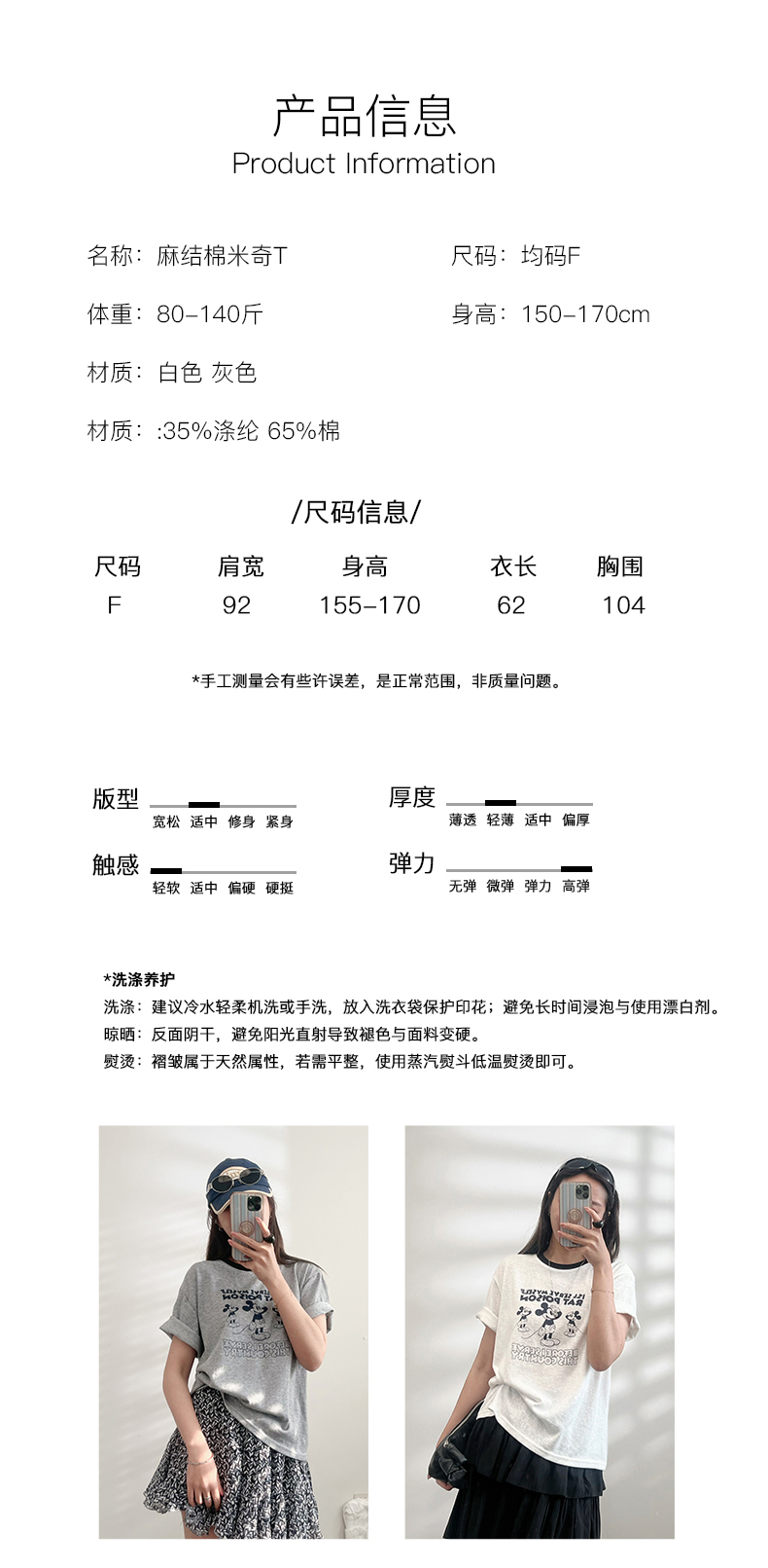 韩系撞色领口米奇T,又甜又酷🆒,穿出春夏慵懒,舒服。有棉麻的质感,透气亲肤