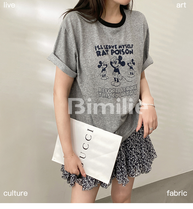 【7天左右发丨春夏百搭米奇T恤】韩系撞色领口,又甜又酷!慵懒舒服,柔软顺滑,亲肤无感0束缚!夏天百搭必备!【Bimilie-X】