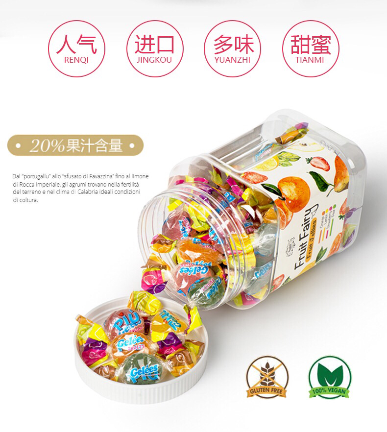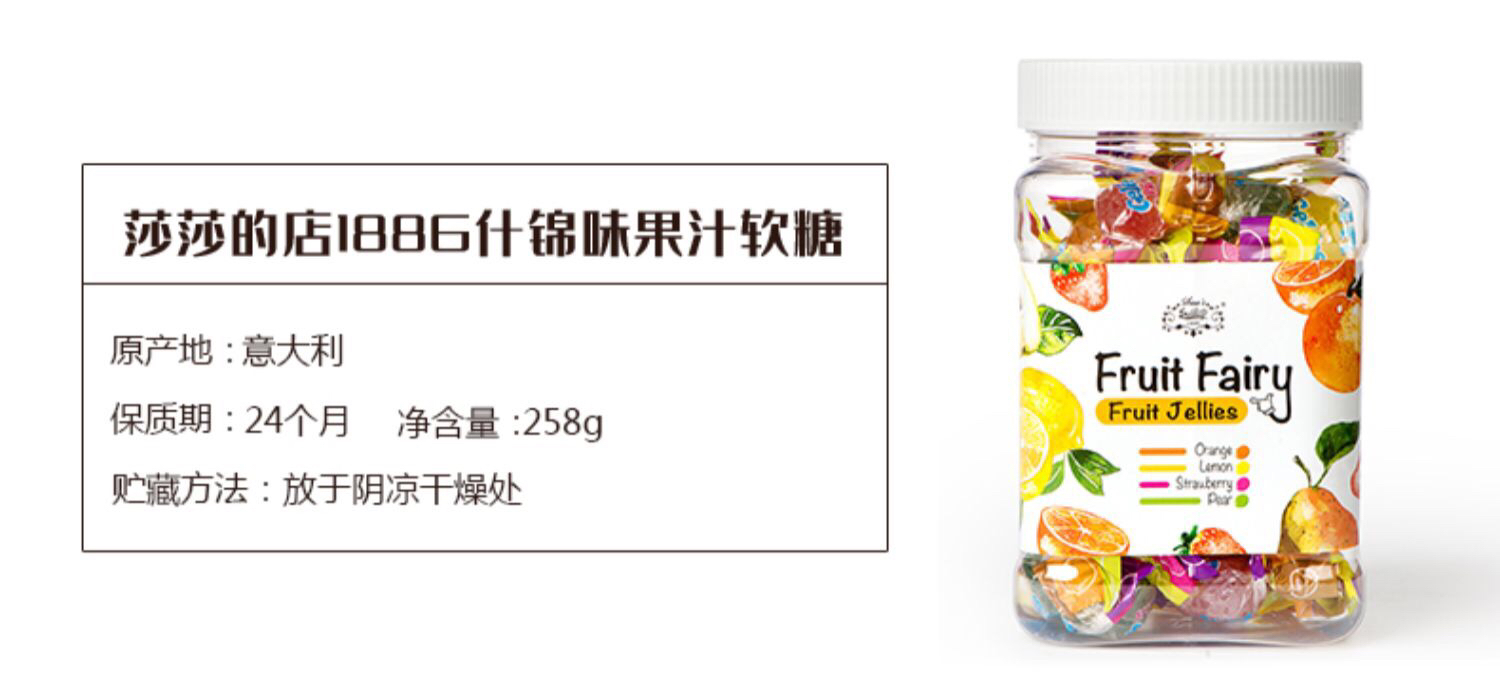 意大利原装进口-莎莎的店什锦味果汁软糖/糖果瓶装258g-会员6折-盒装165g无参考图片