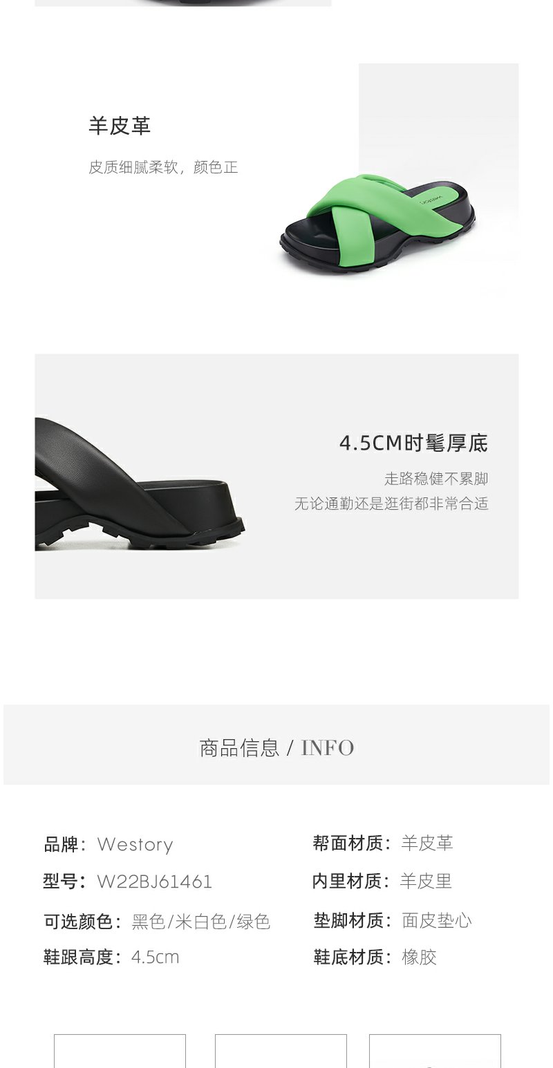 westory女鞋2022夏季新款休闲百搭软底松糕露脚舒适拖鞋W22BJ61461