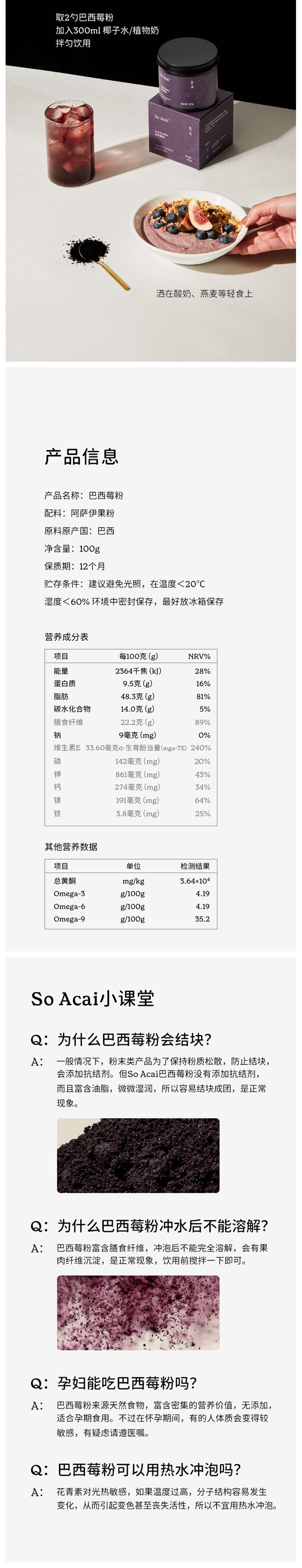 品牌直发 So Acai 巴西莓粉 100g/罐 1罐装/2罐装