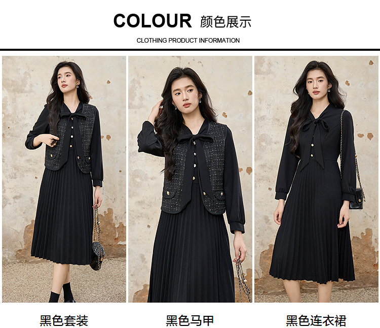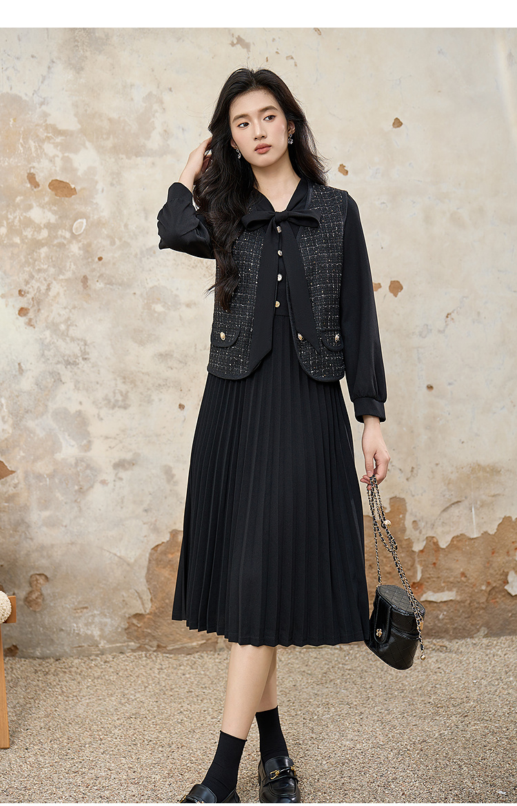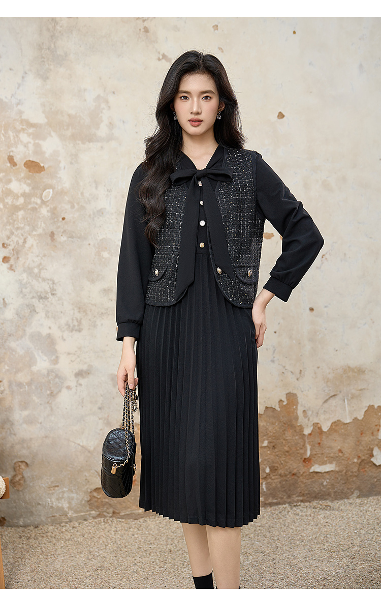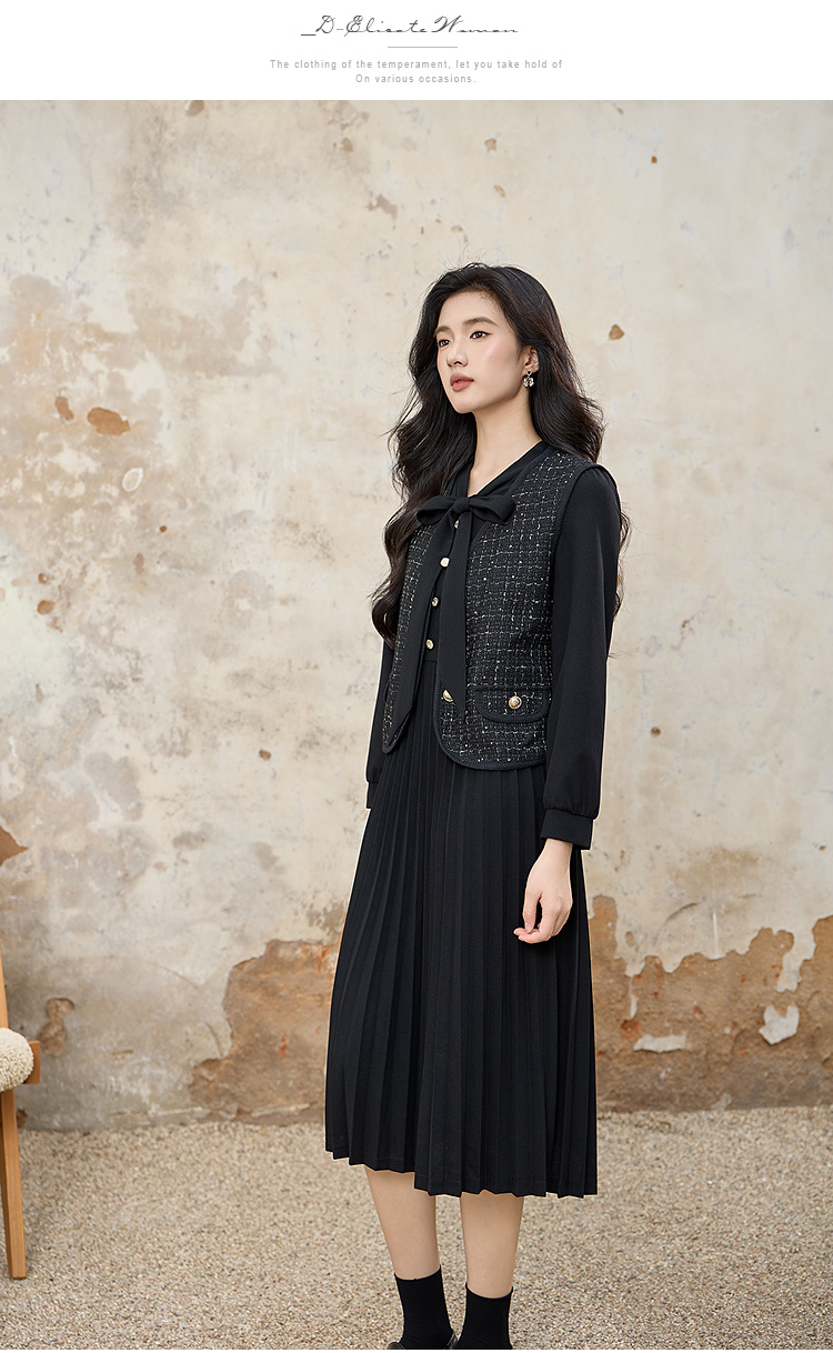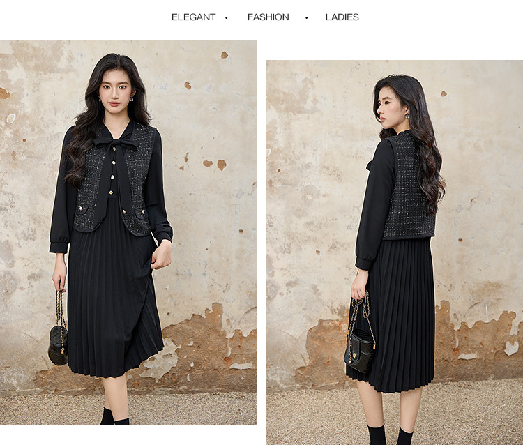 奢姿大码女装2025秋装新款胖妹妹轻奢休闲马甲百褶连衣裙套装9953994202AB